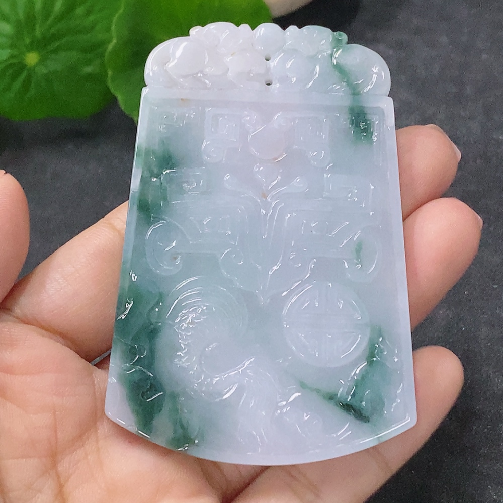 Jadeite Pendant Antique-style Plaque Total Weight Approx. 39.33g