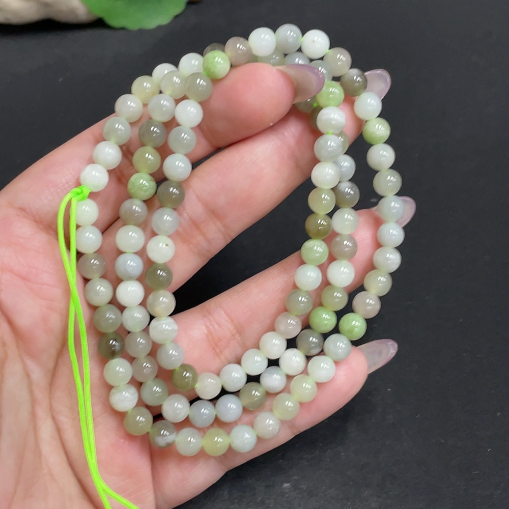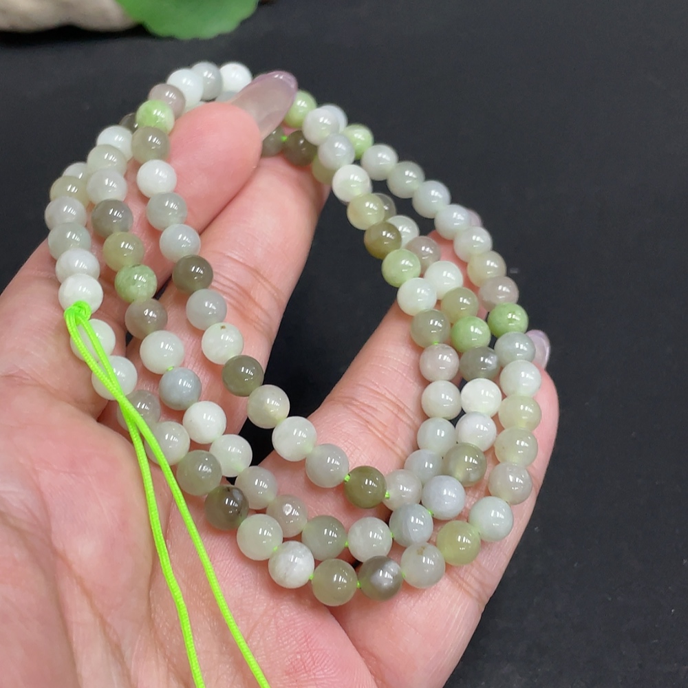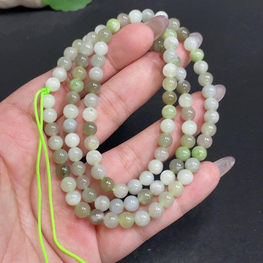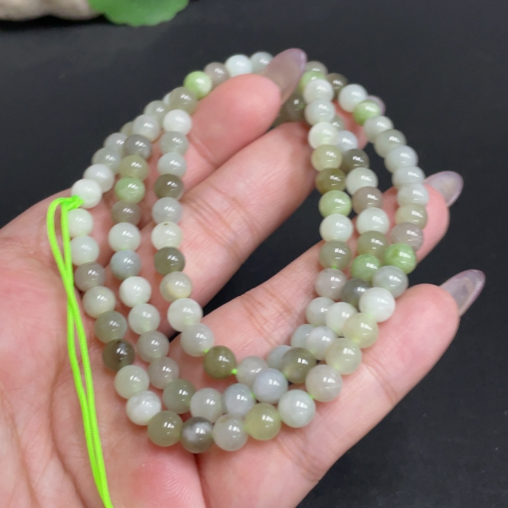 Hetian Jade Bead Necklace, Approx. 5.7 mm, Total Weight Approx. 34.6g, Contains Other Mineral Components