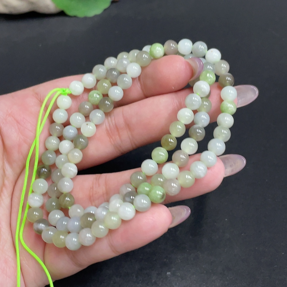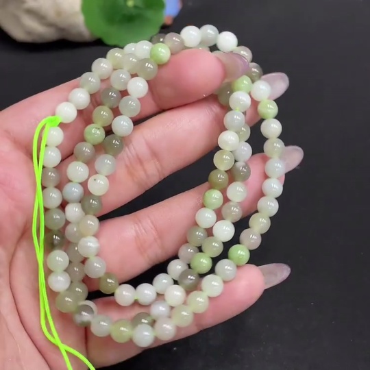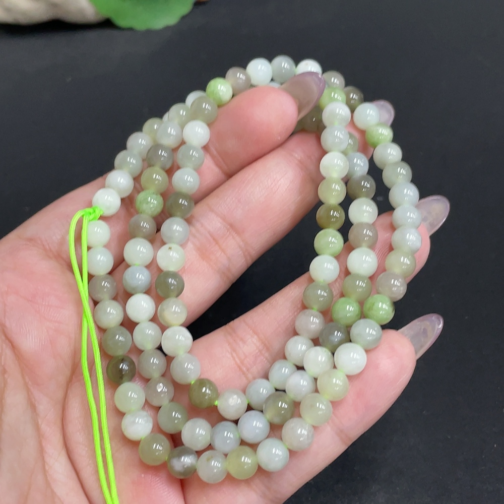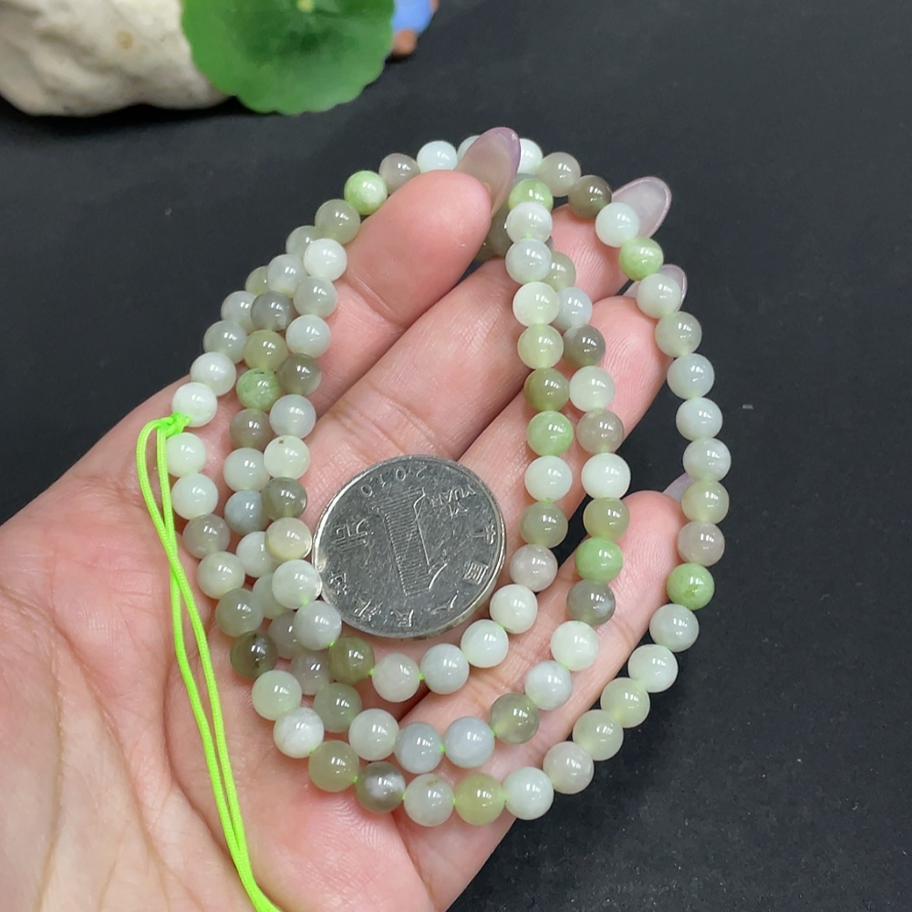 Hetian Jade Bead Necklace, Approx. 5.7 mm, Total Weight Approx. 34.6g, Contains Other Mineral Components