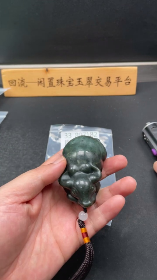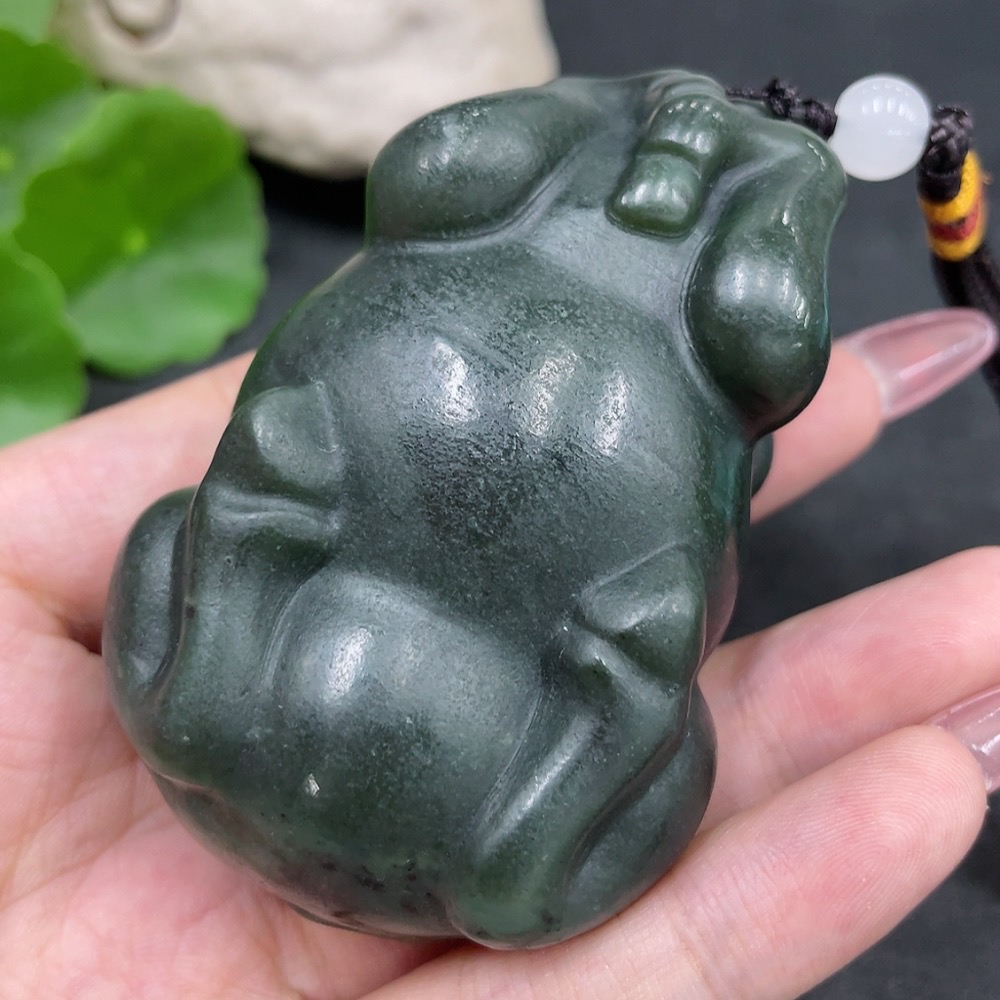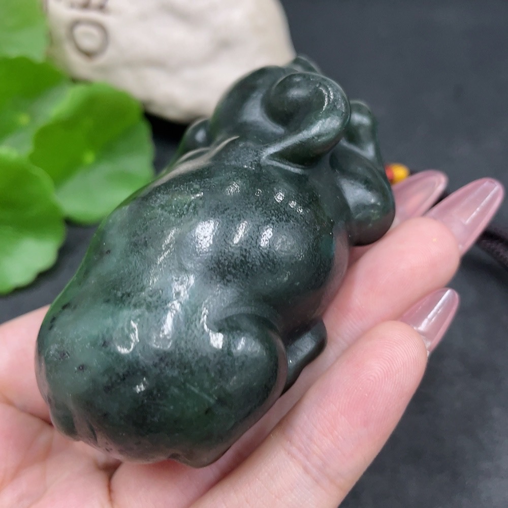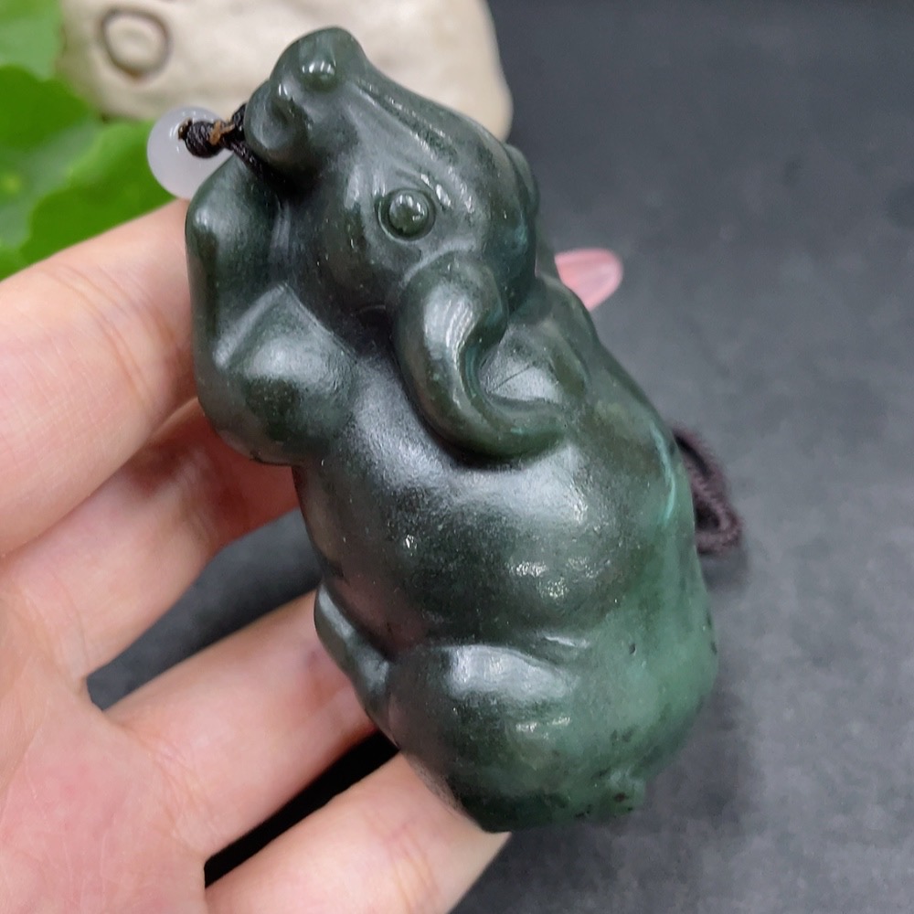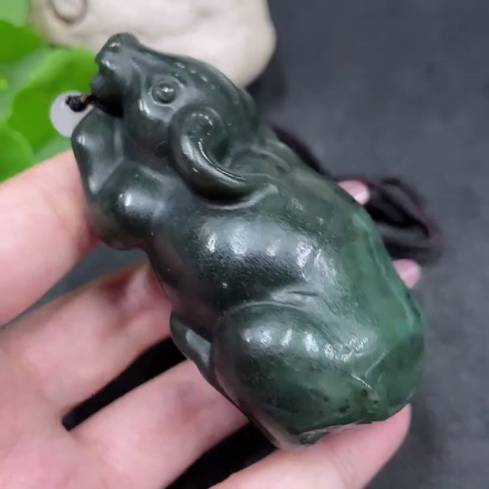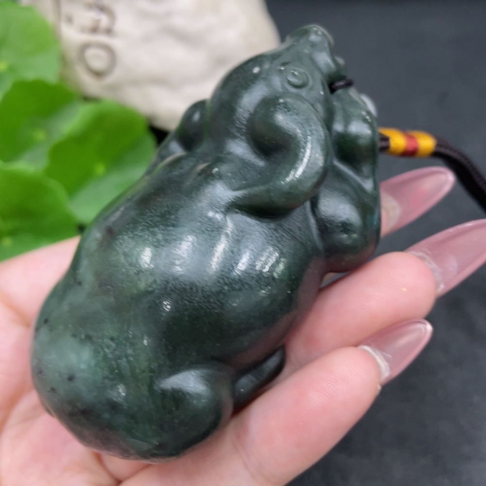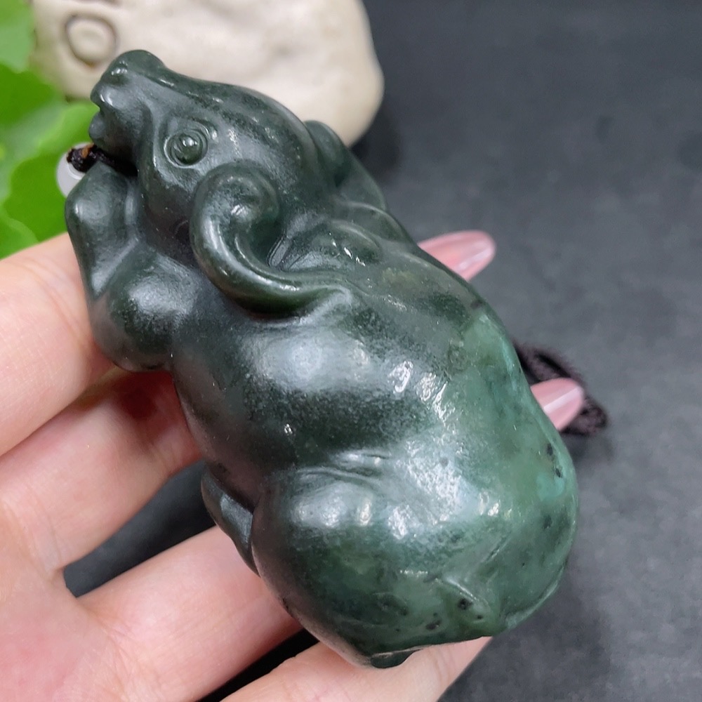 Hetian Jade Handheld Ornament - Ox, Total Weight (with rope): Approx. 182.2g