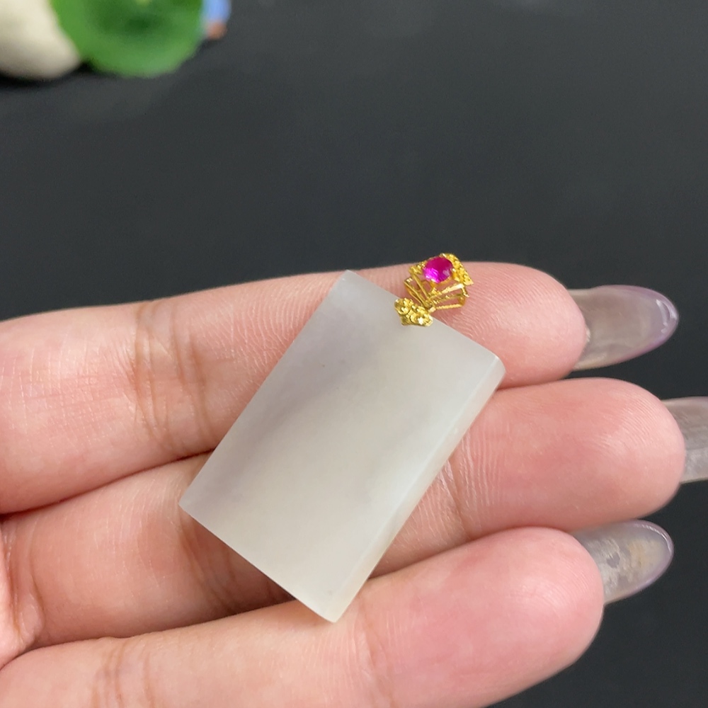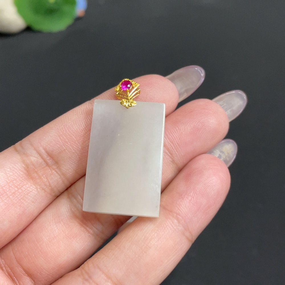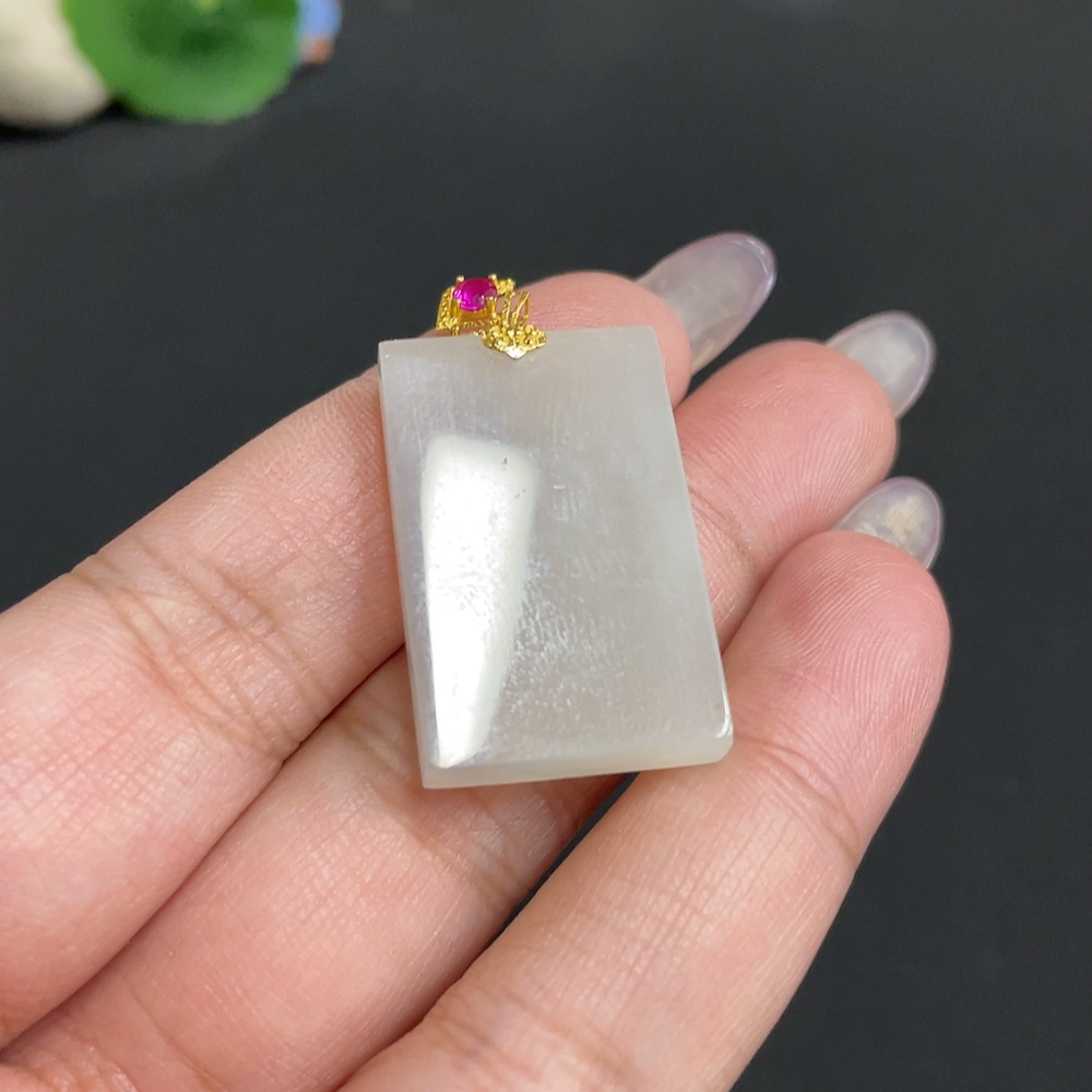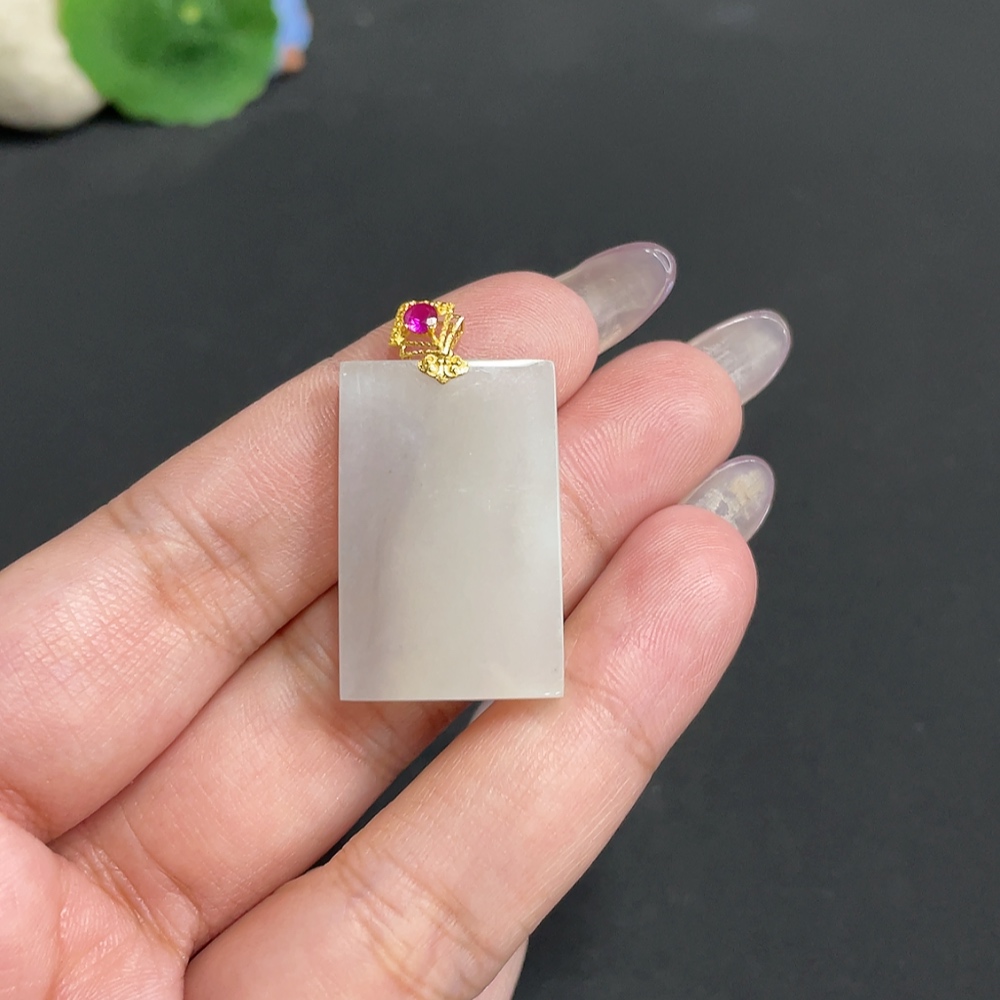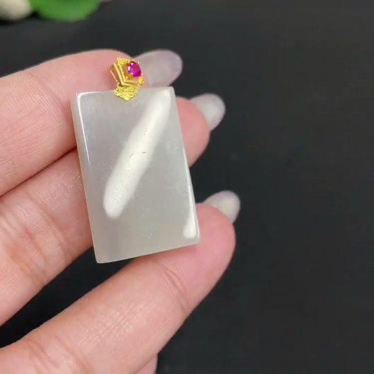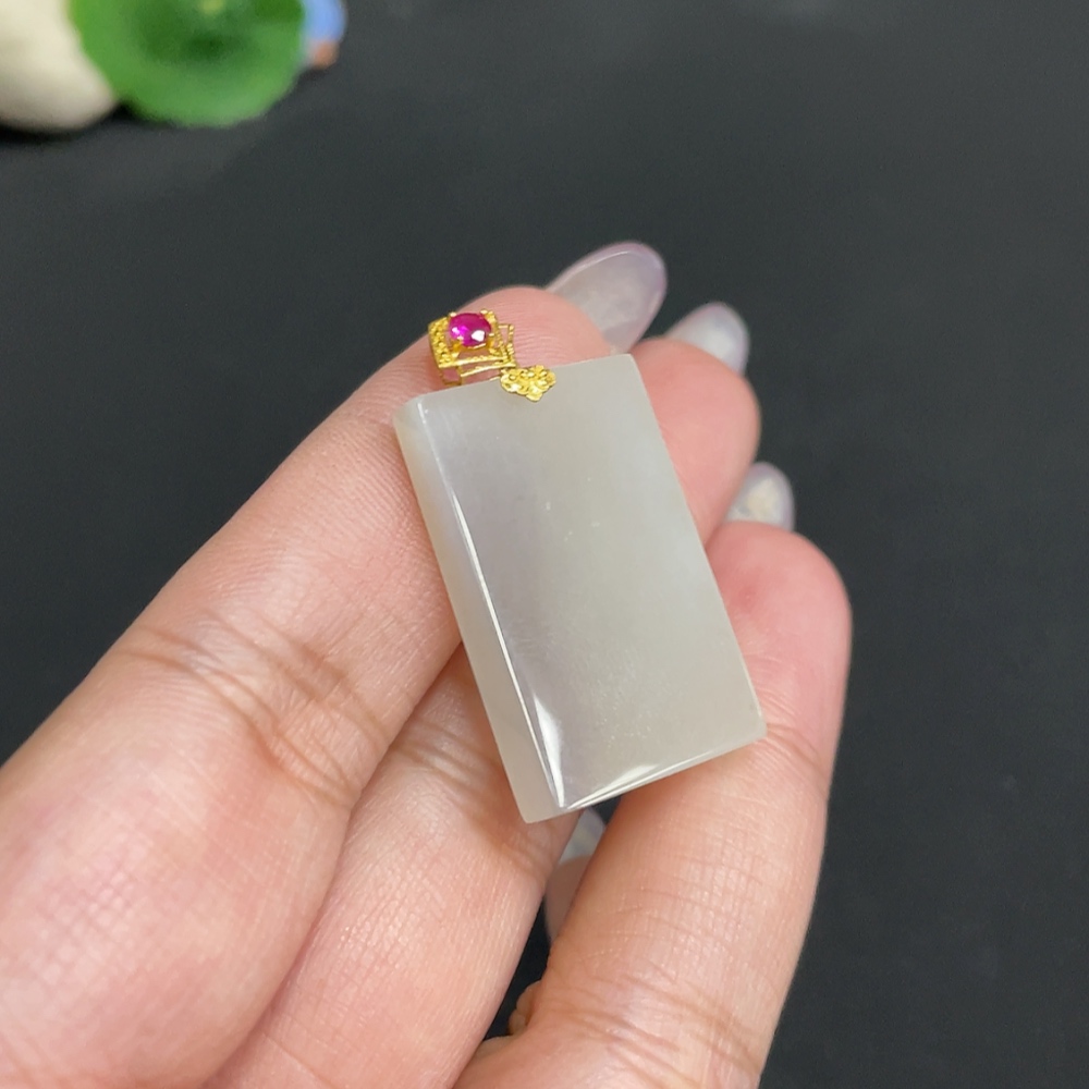 Hetian Jade Inlaid Pendant, Plain Pendant, Total Weight Approx.8g, 18k