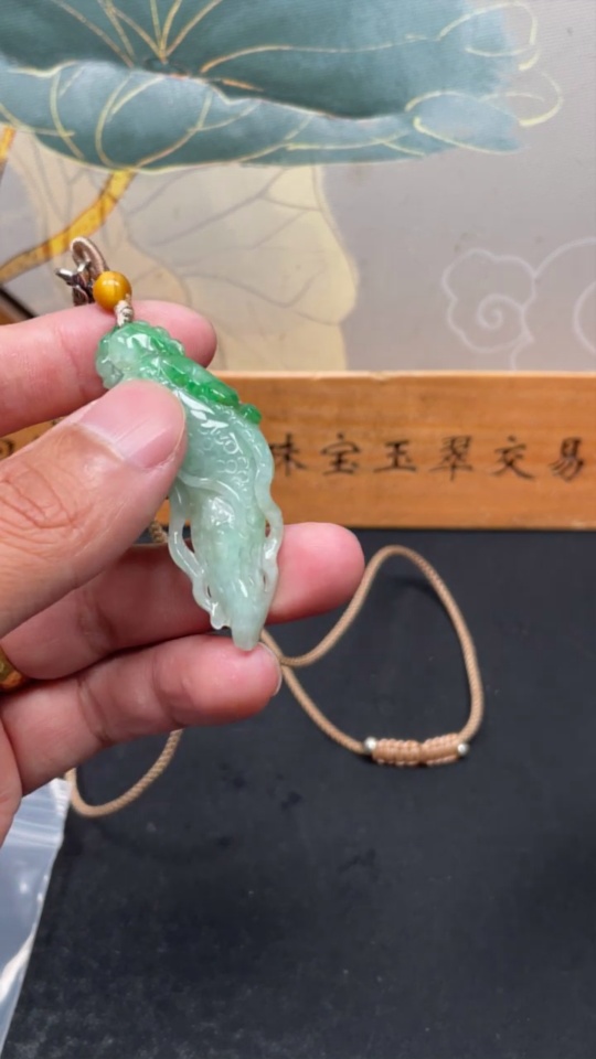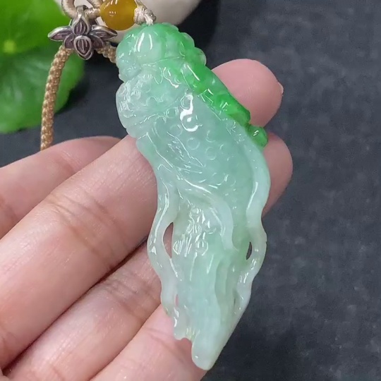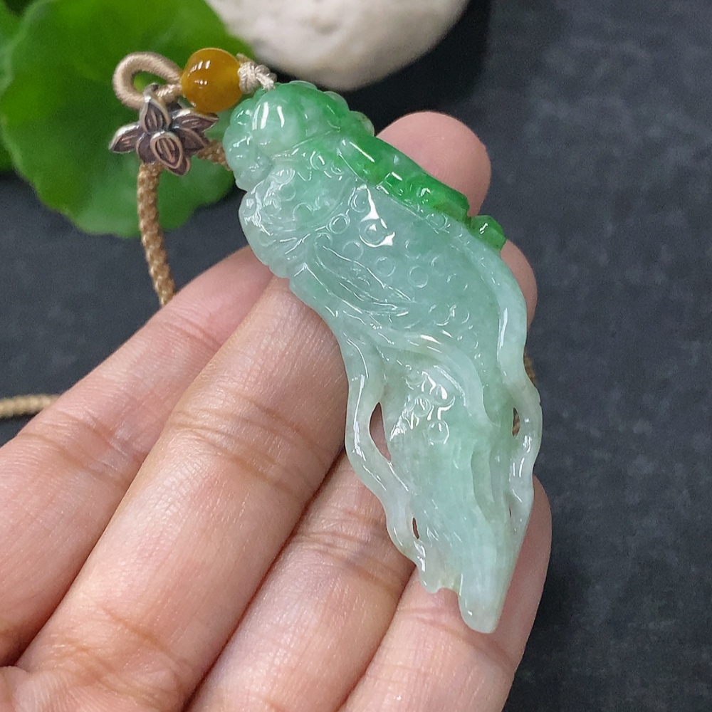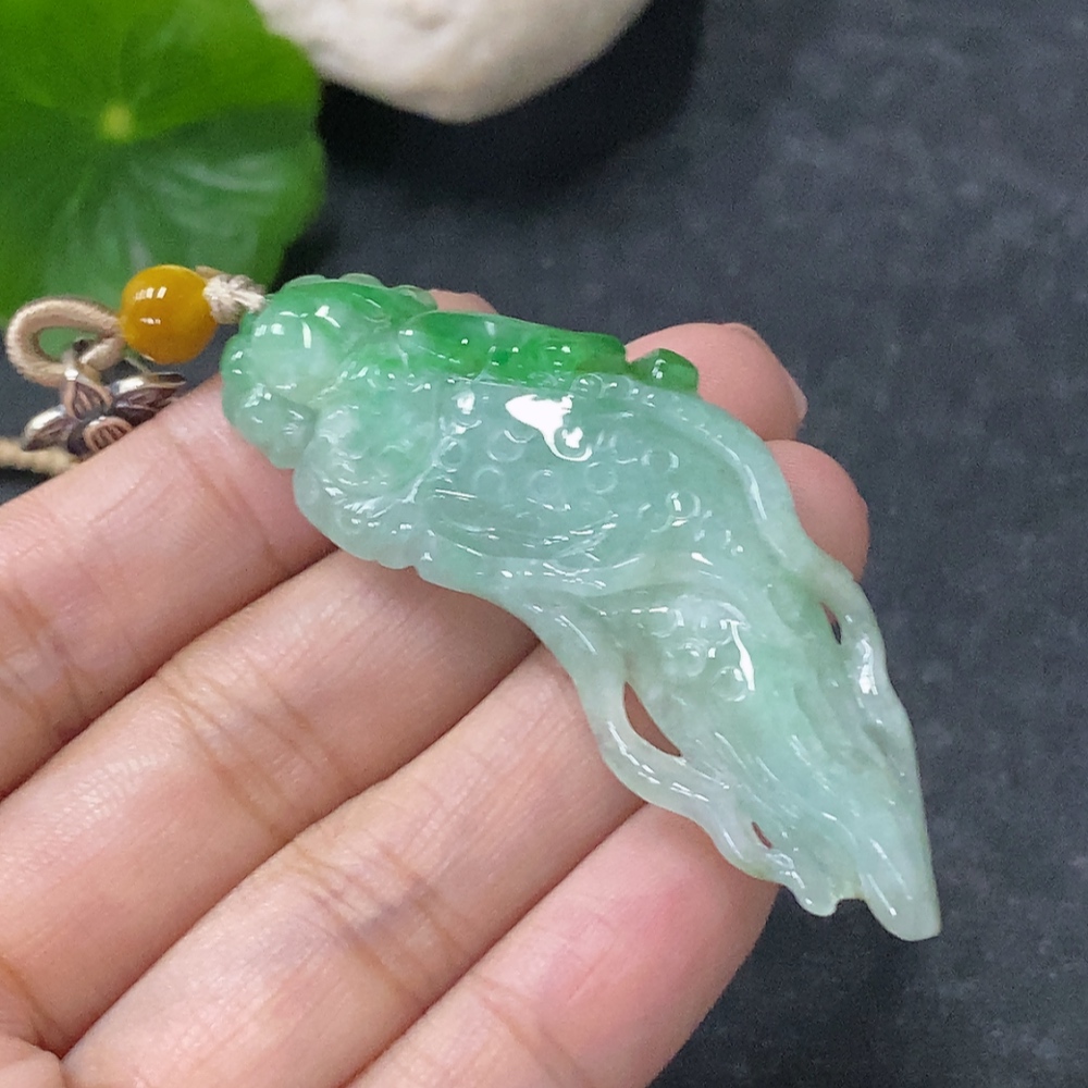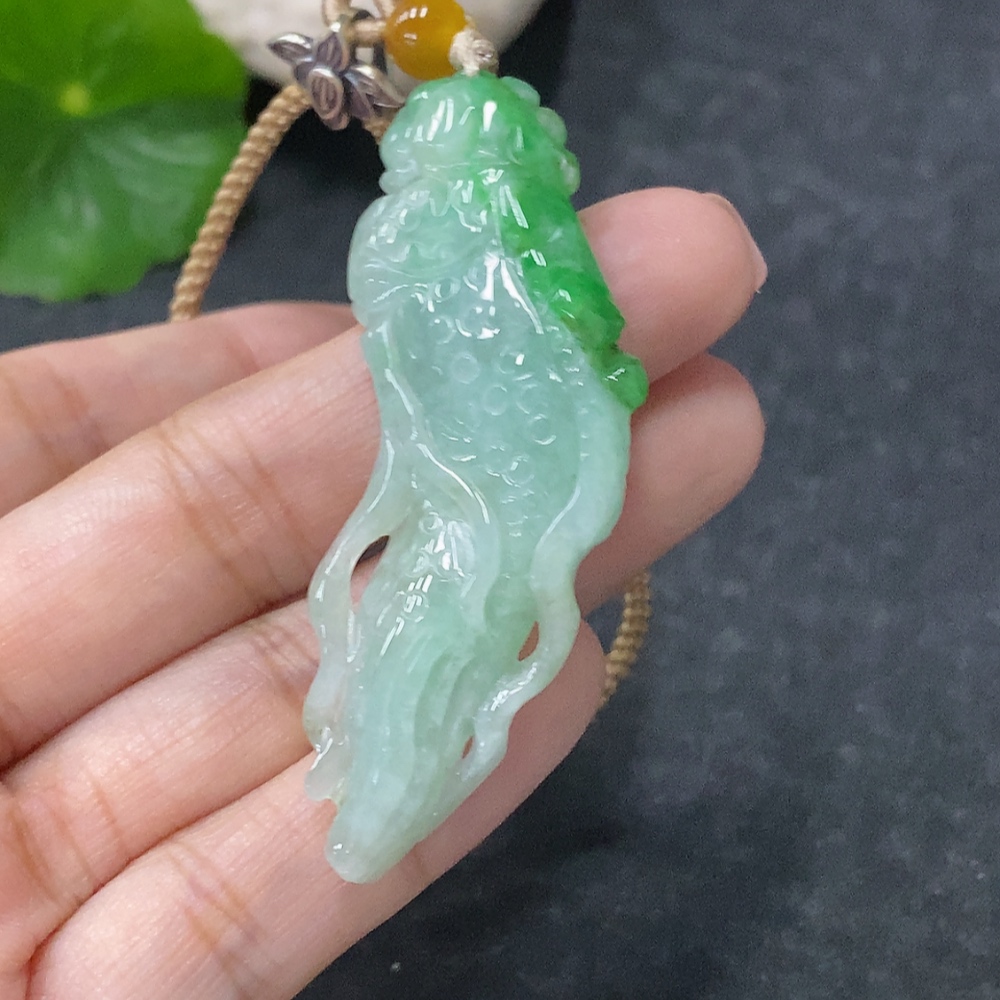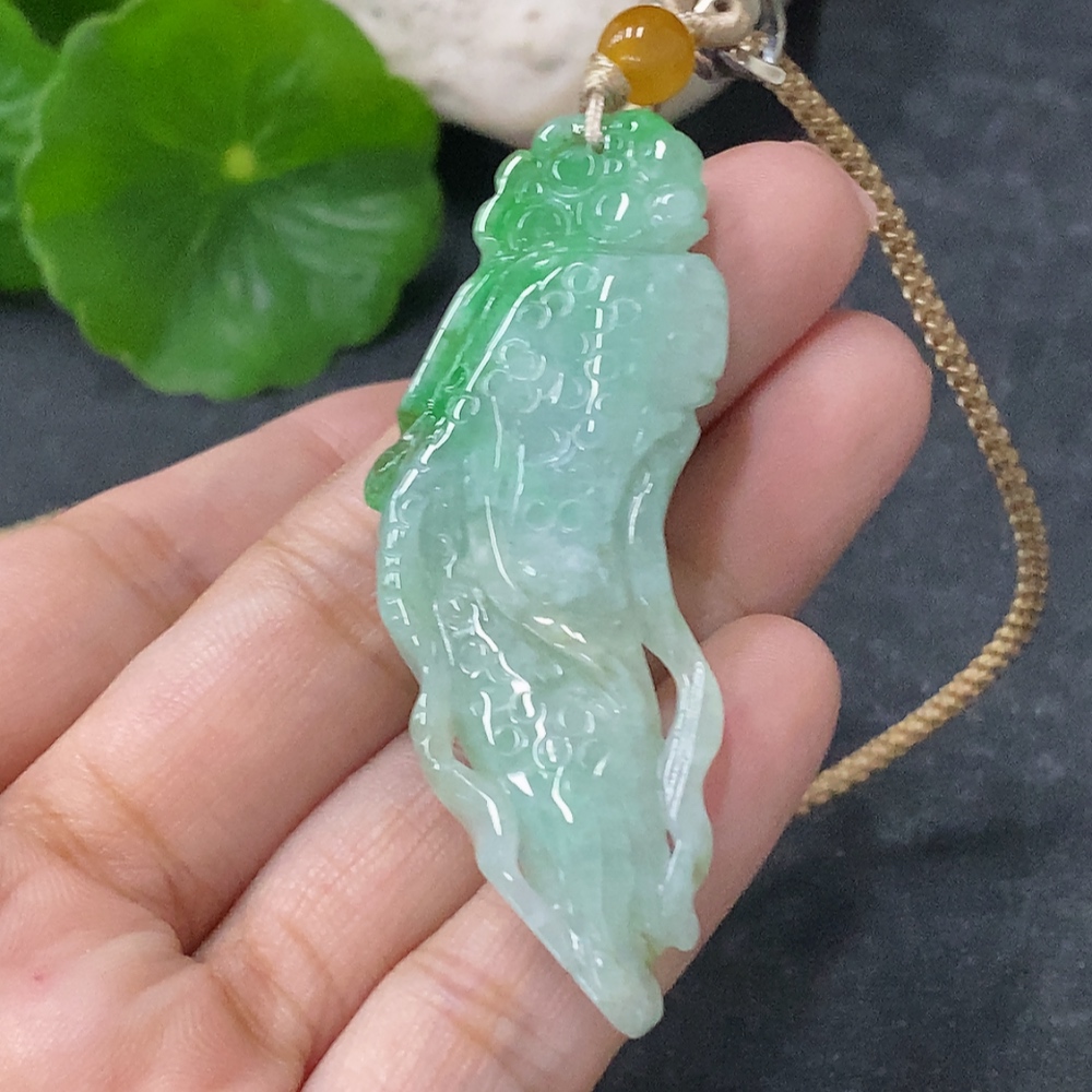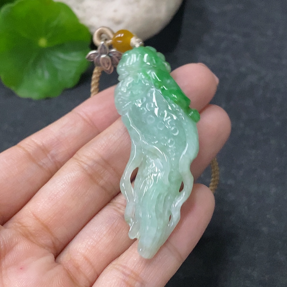 Jadeite Pendant Ginseng Total Weight Approx. 15.56g Including Rope, Beads Not Grade A