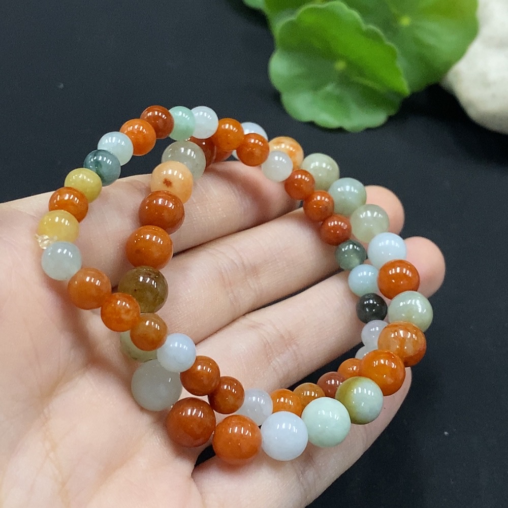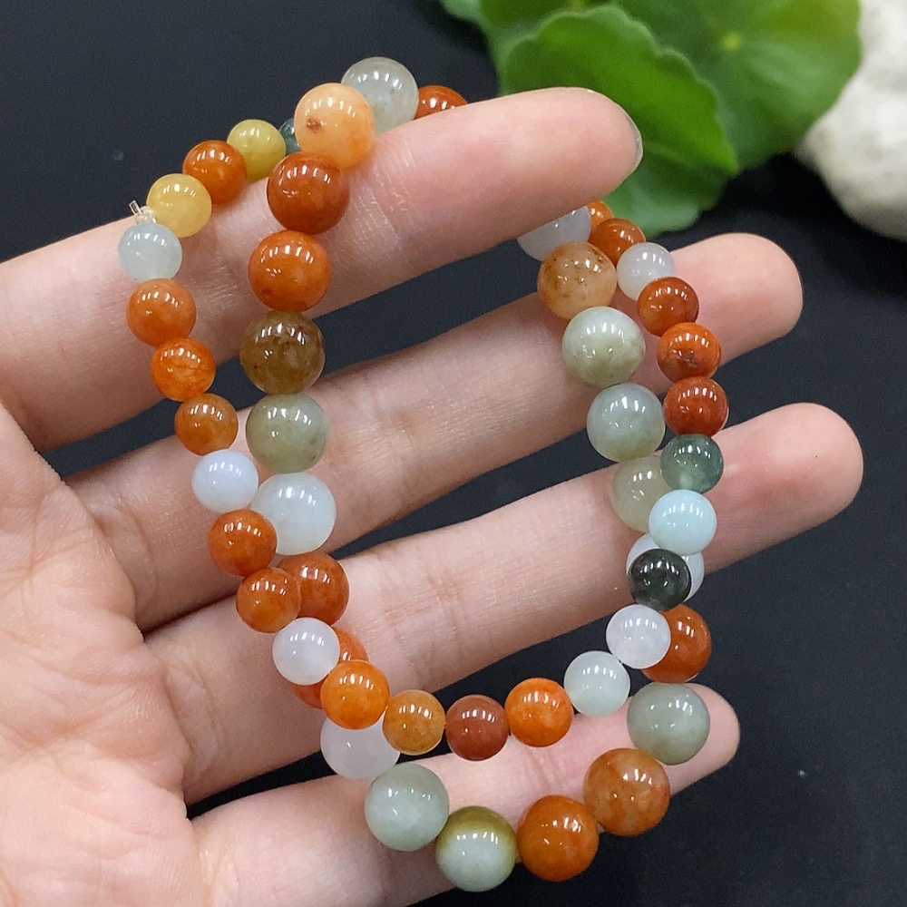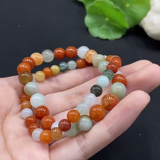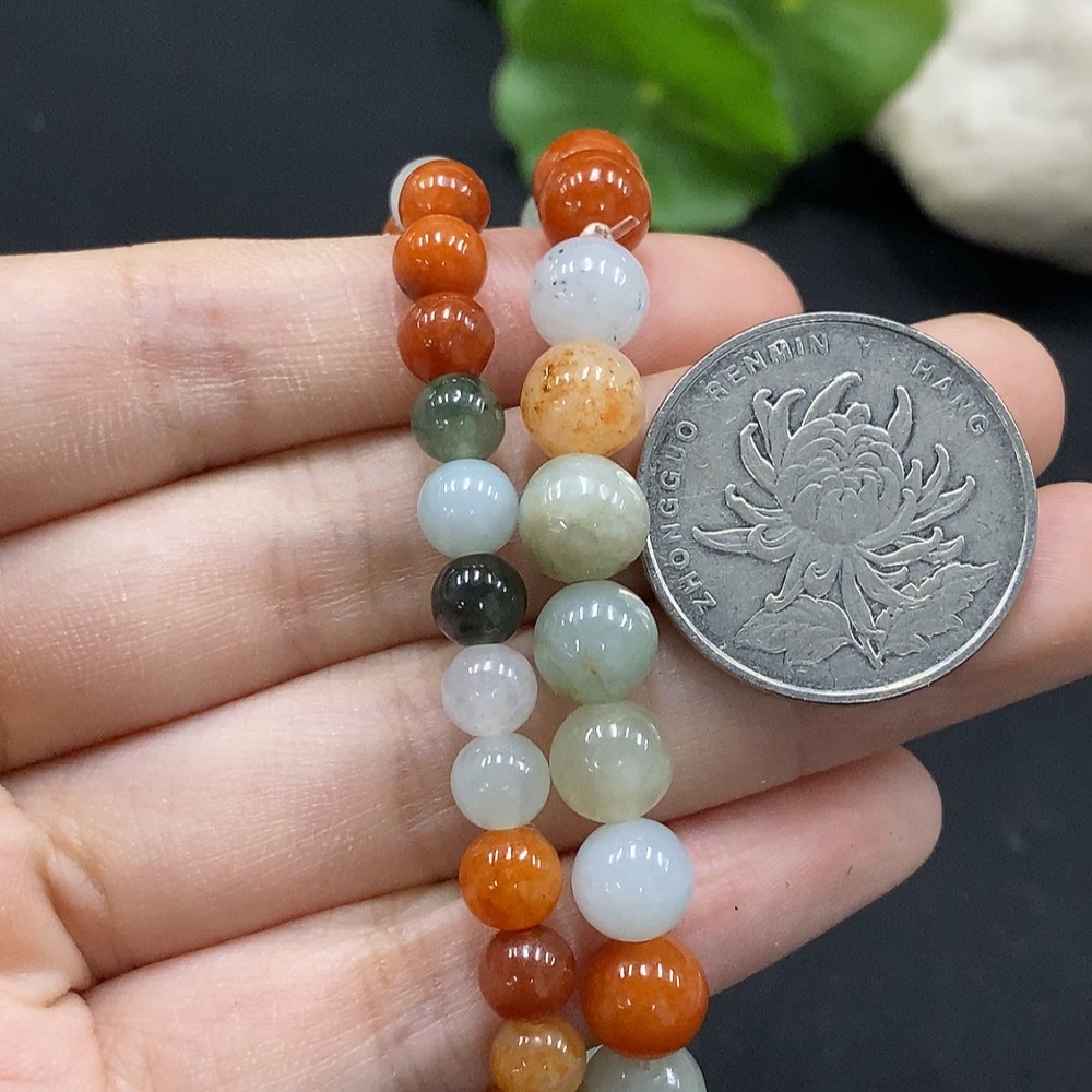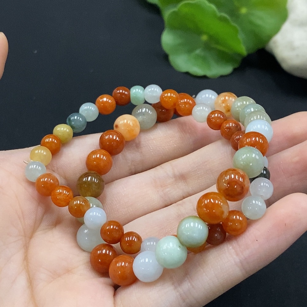 Jadeite Bracelet Red and Yellow Beads Color Origin Undetermined
