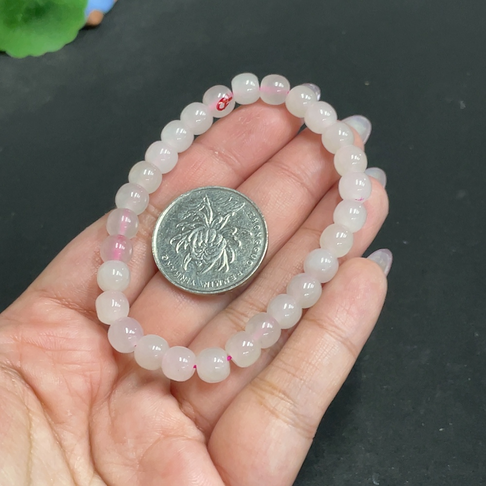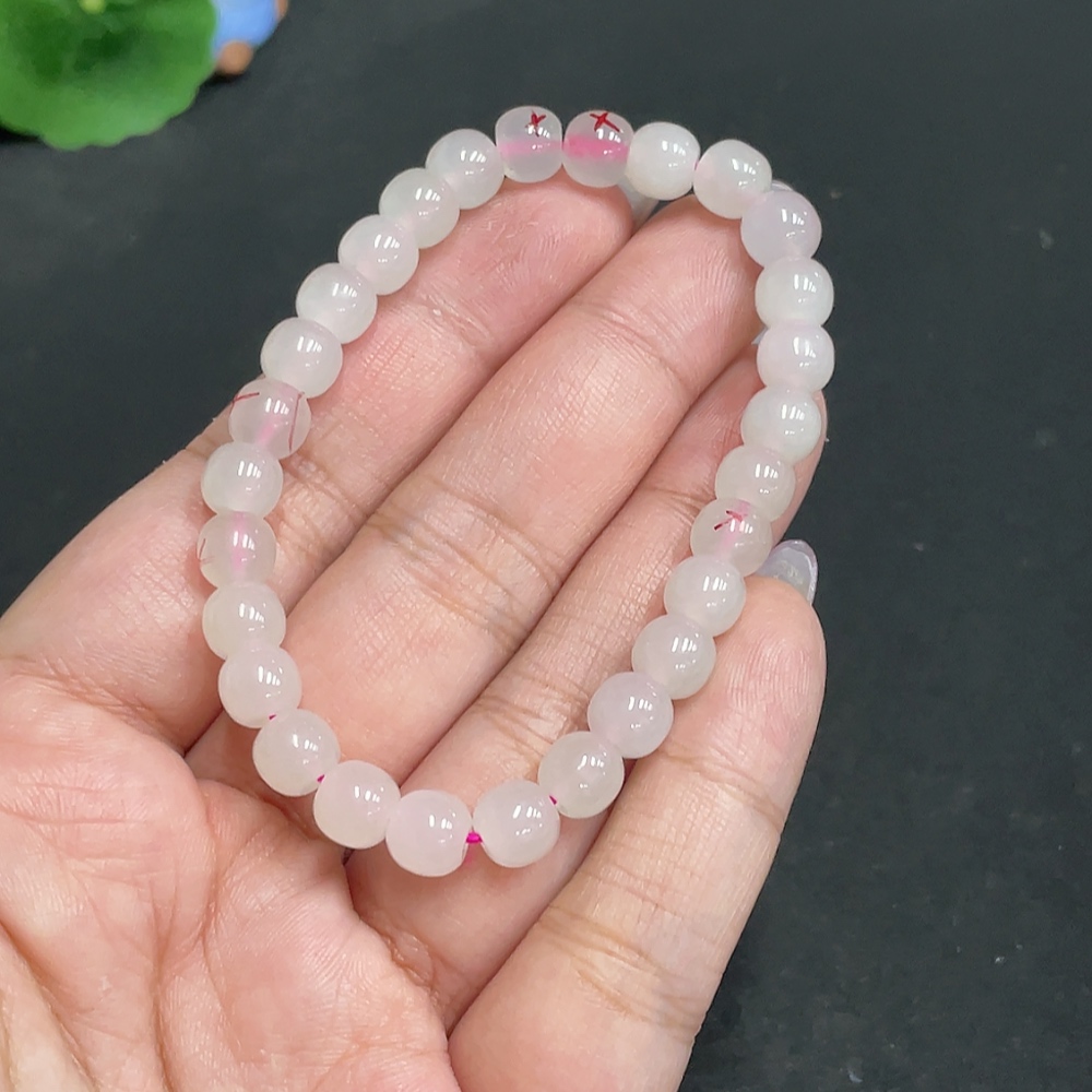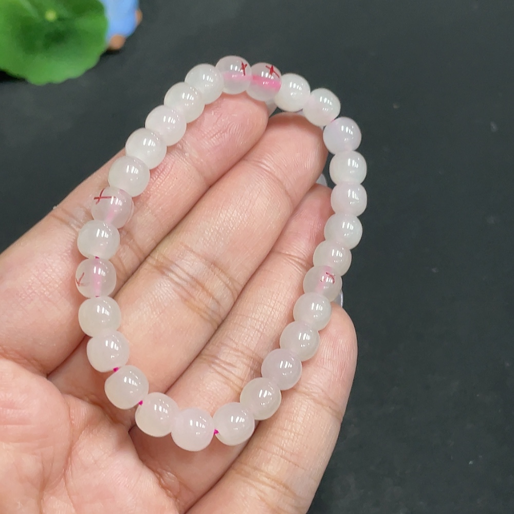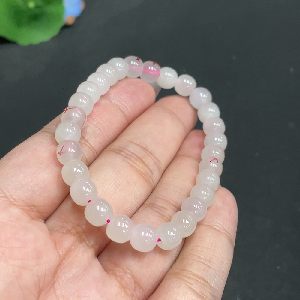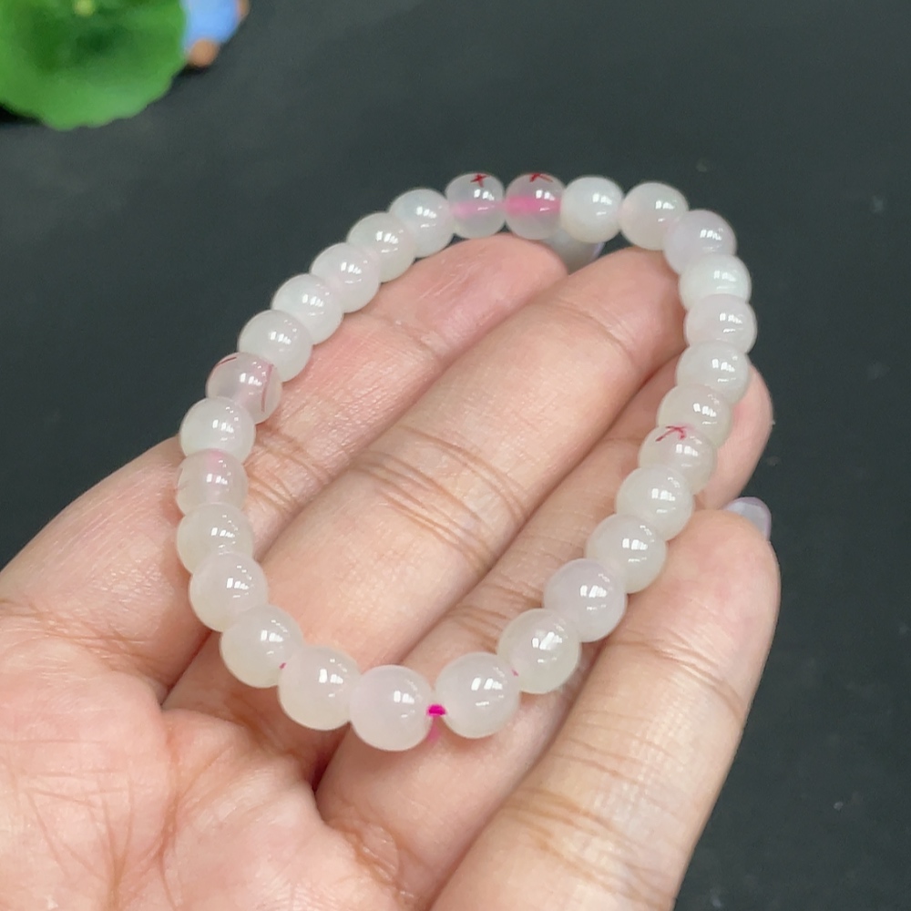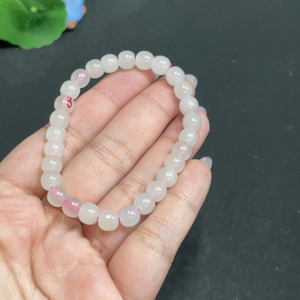Hetian Jade Bracelet, Approx. 6.8 mm, Total Weight About 14.4g, Contains Other Mineral Components, Beads Not Hetian Jade, Many Impurities