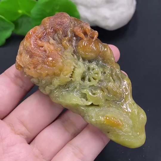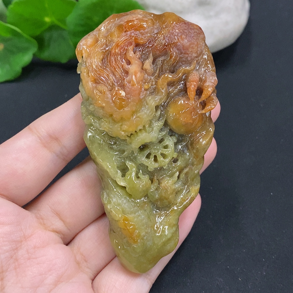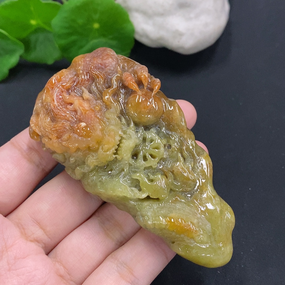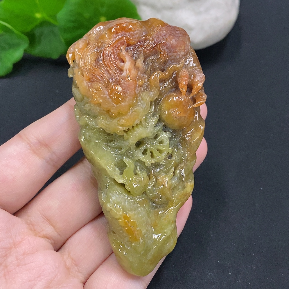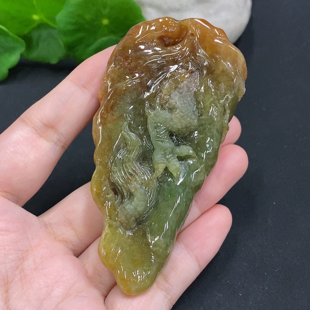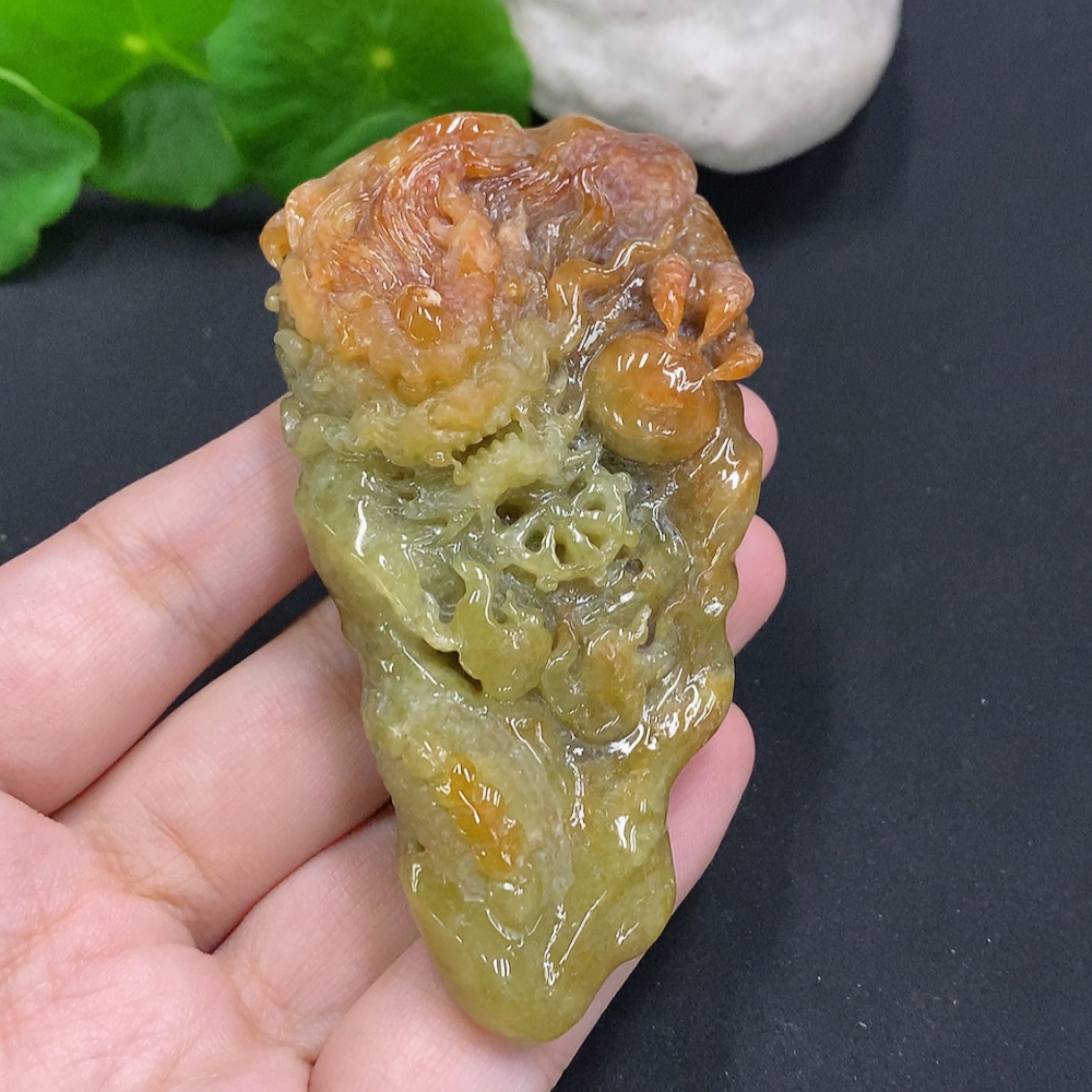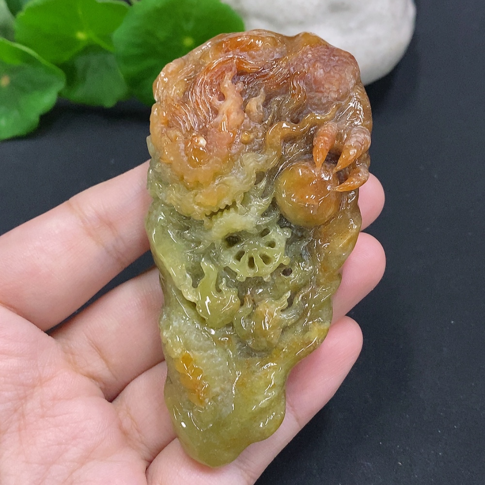Jadeite dragon pendant, total weight approximately 104g (yellow color origin undetermined)