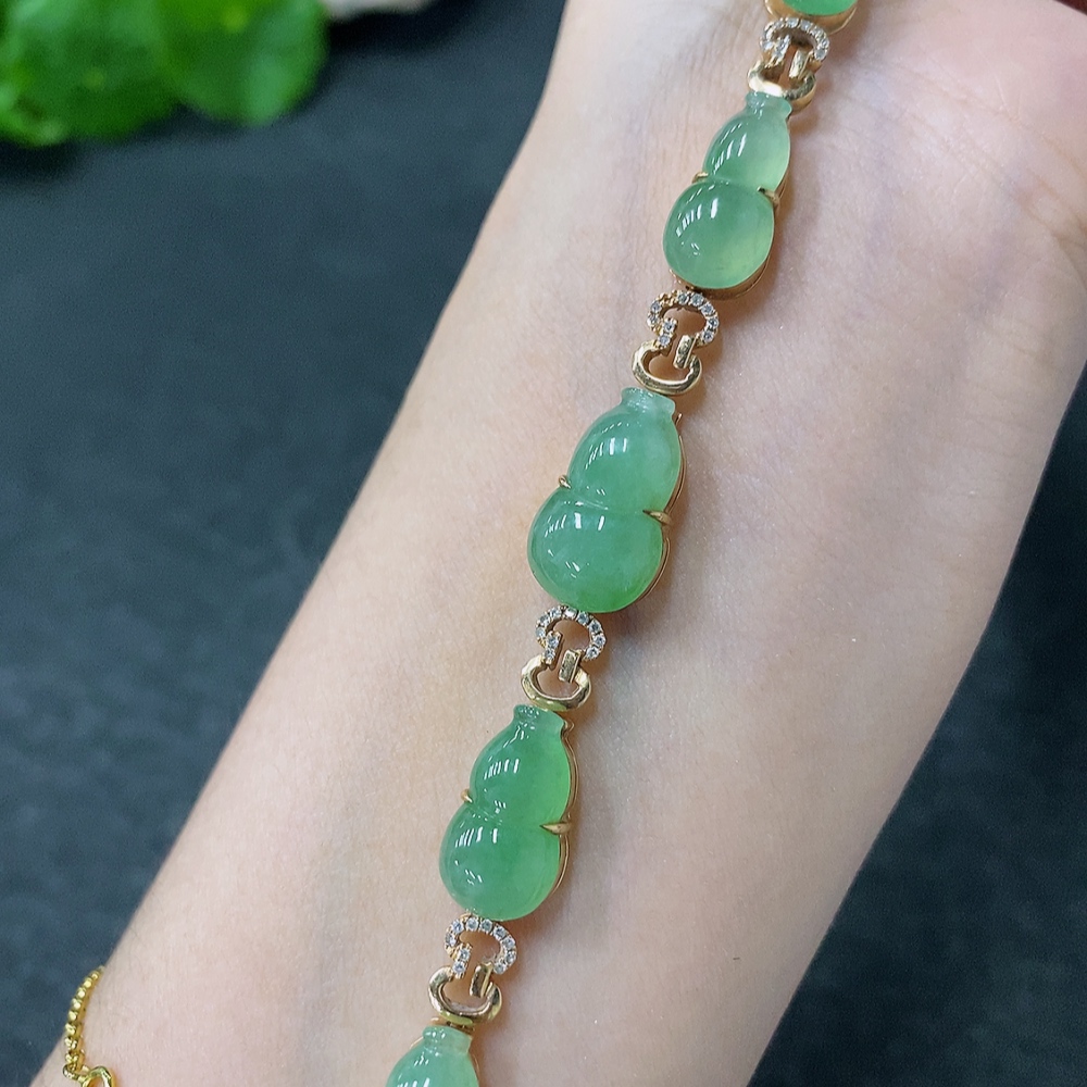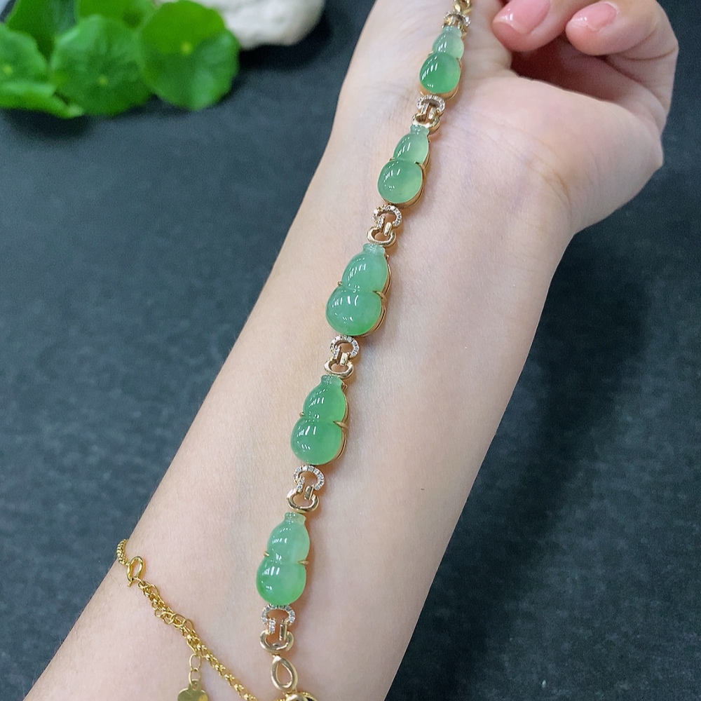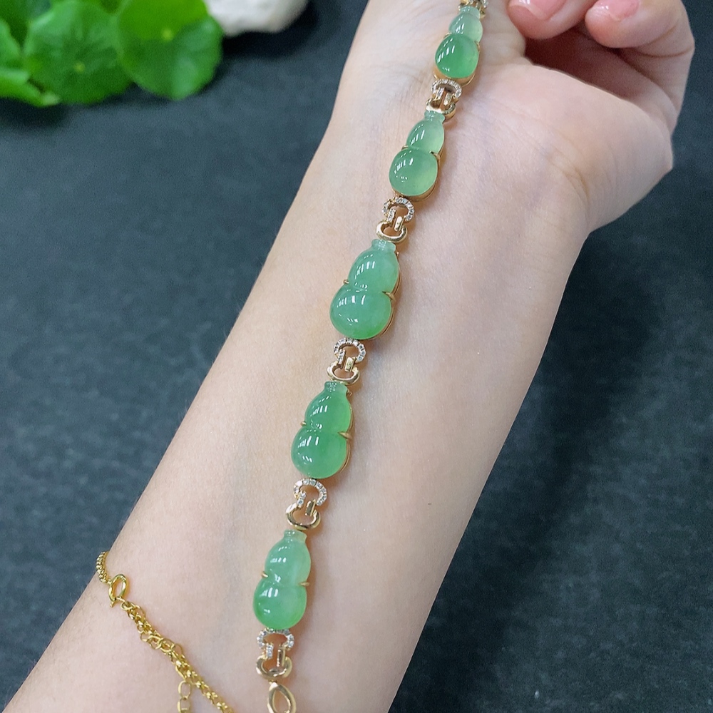 Jadeite Inlaid Bracelet No Inscription Surface Gold Content 18k Diamond Accents Total Weight Approx. 12.88g