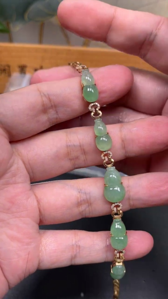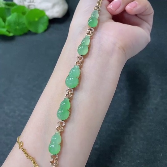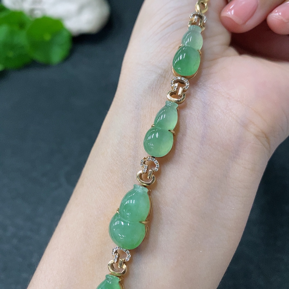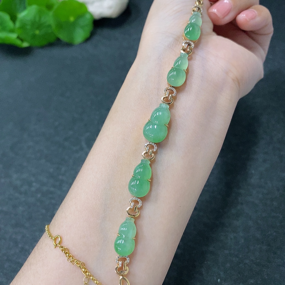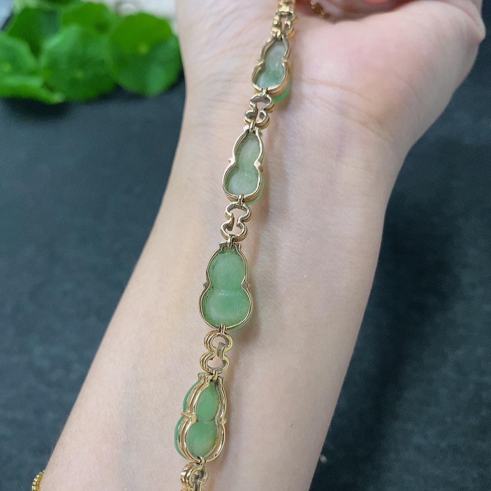 Jadeite Inlaid Bracelet No Inscription Surface Gold Content 18k Diamond Accents Total Weight Approx. 12.88g