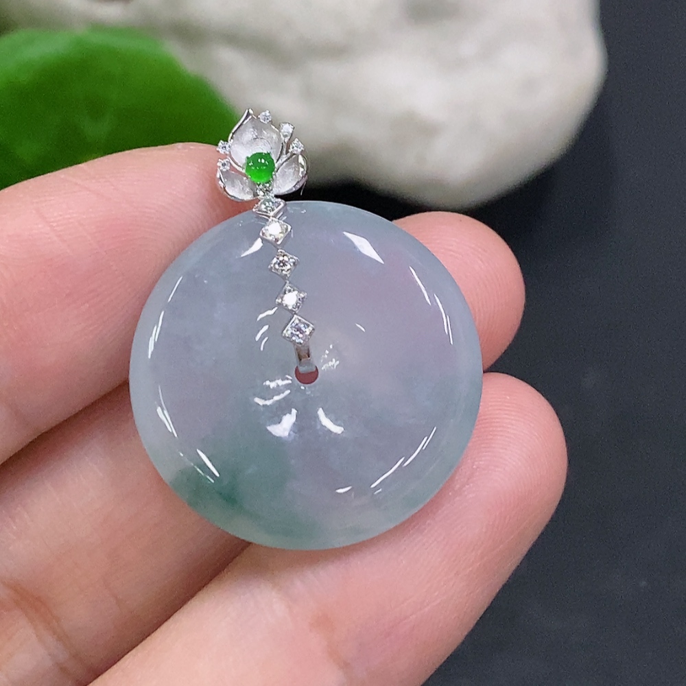 Jadeite Pendant Peace Buckle with 18k Buckle Head, Non-Diamond, Total Weight Approx. 7.16g