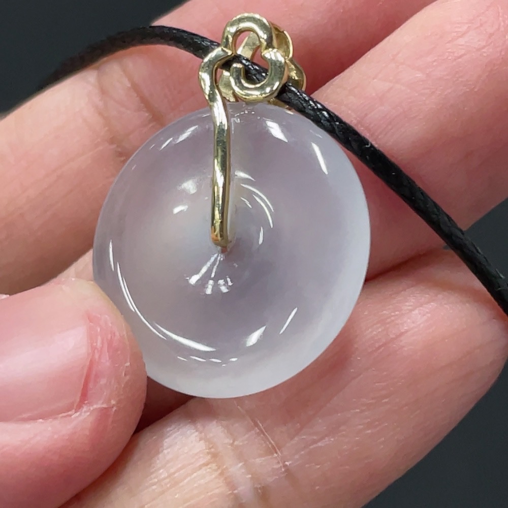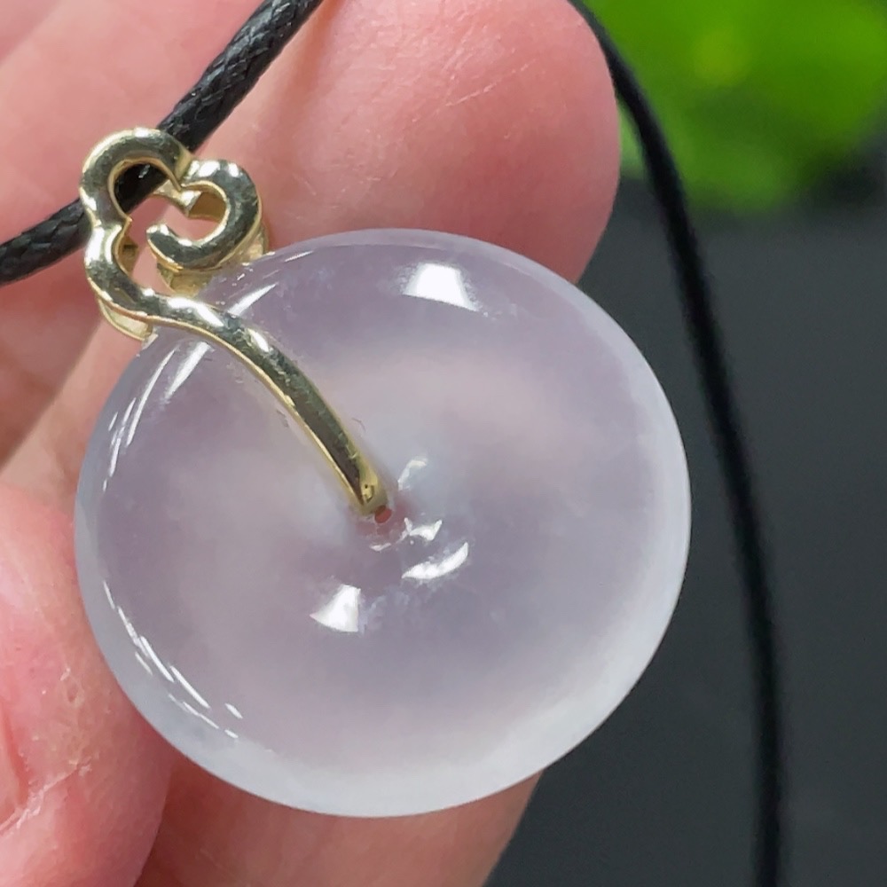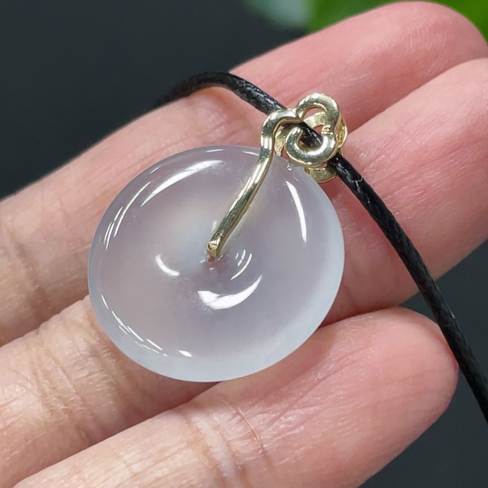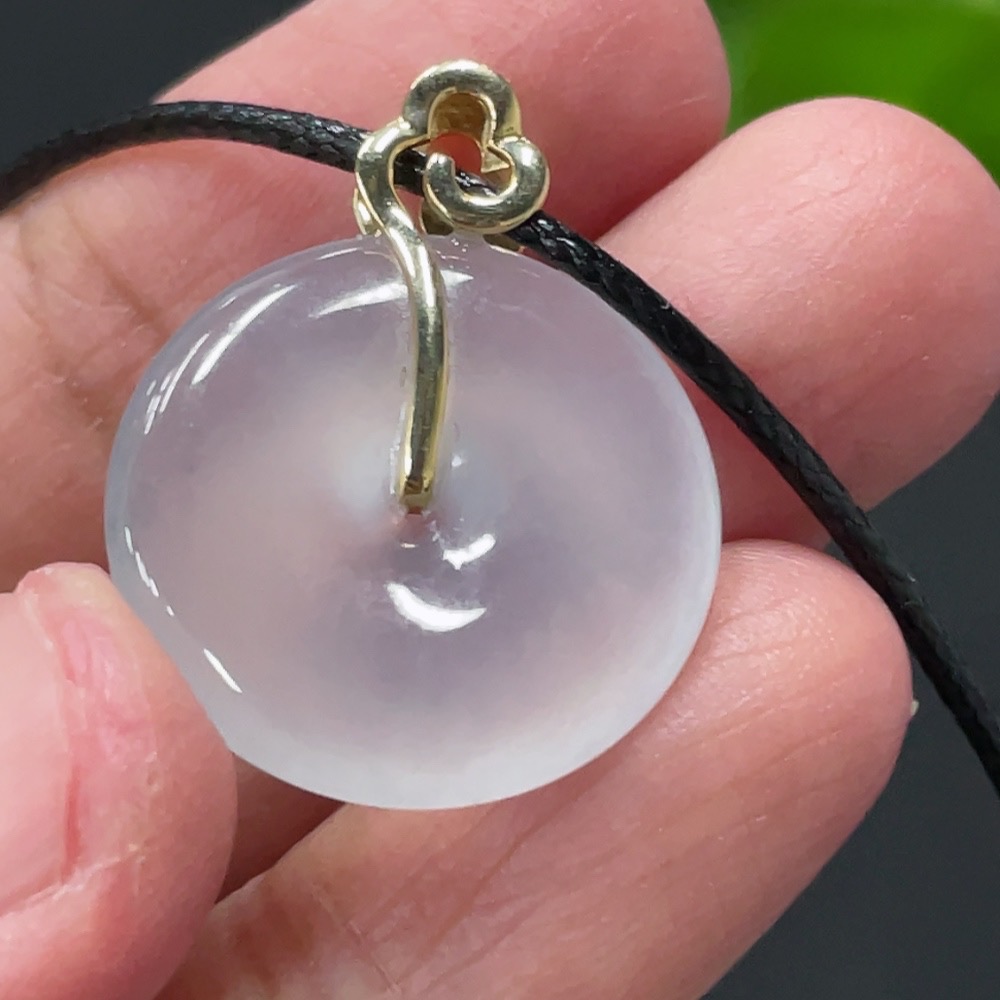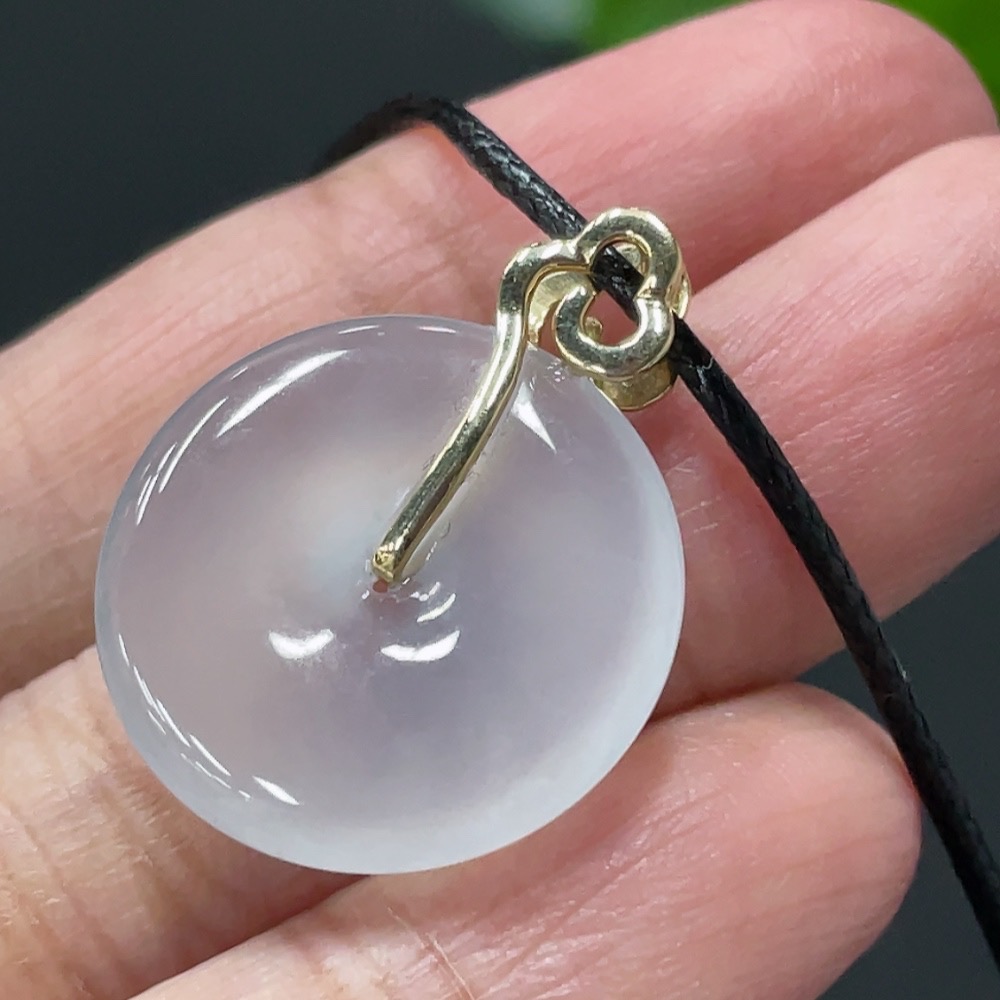Jadeite Safety Pendant with 18K Gold Clasp, Non-Gold Rope, Item Weight Approximately 3.5g Excluding Rope