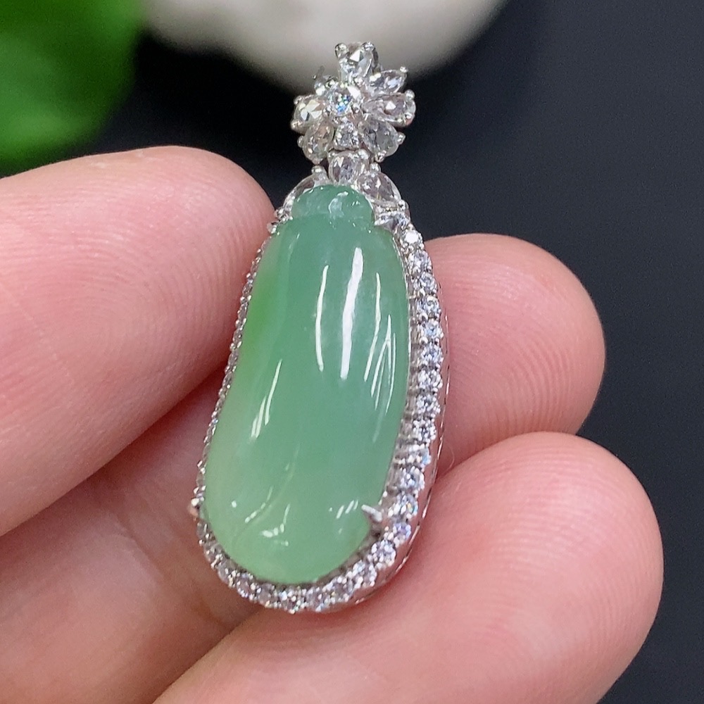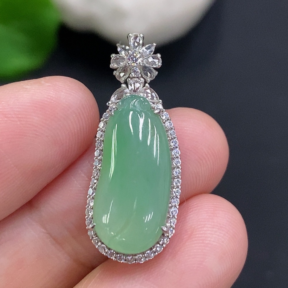 Jadeite Blessing Melon Pendant with 37% Gold Content, Total Weight Approximately 3.3g, No Diamond