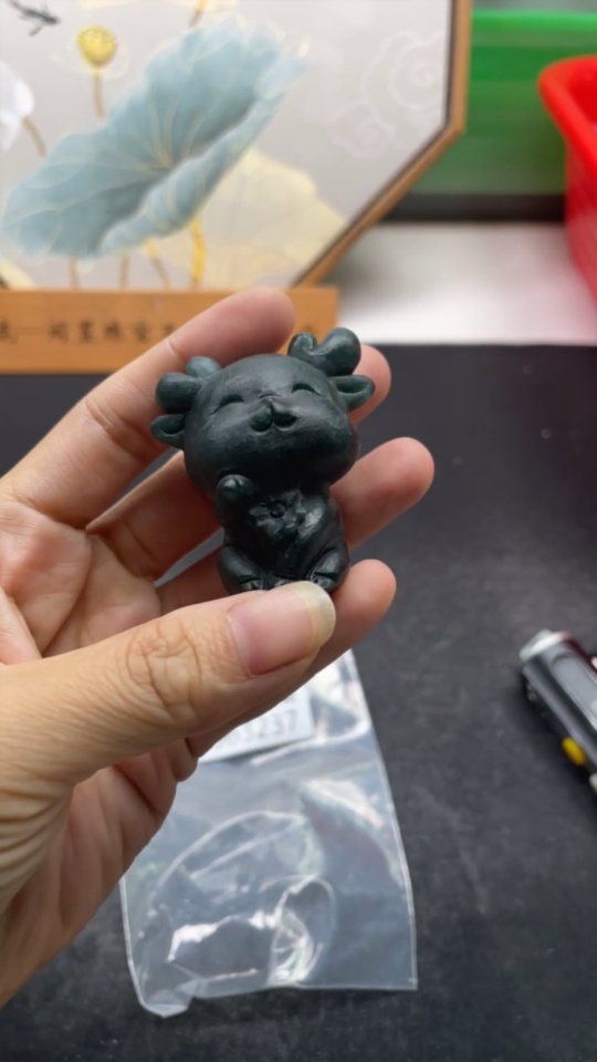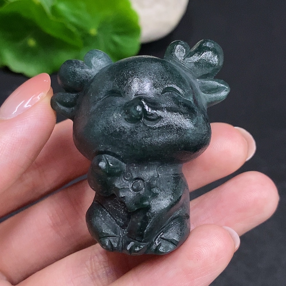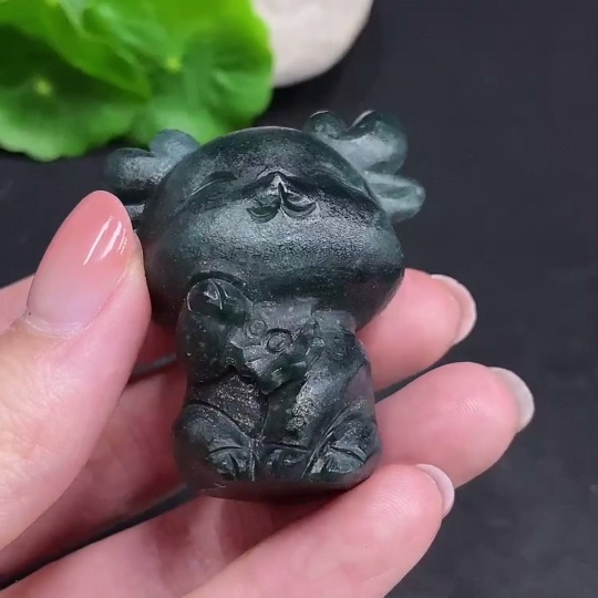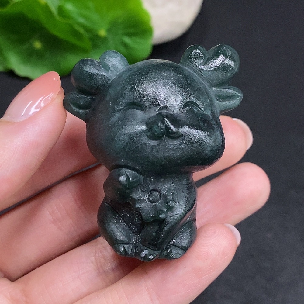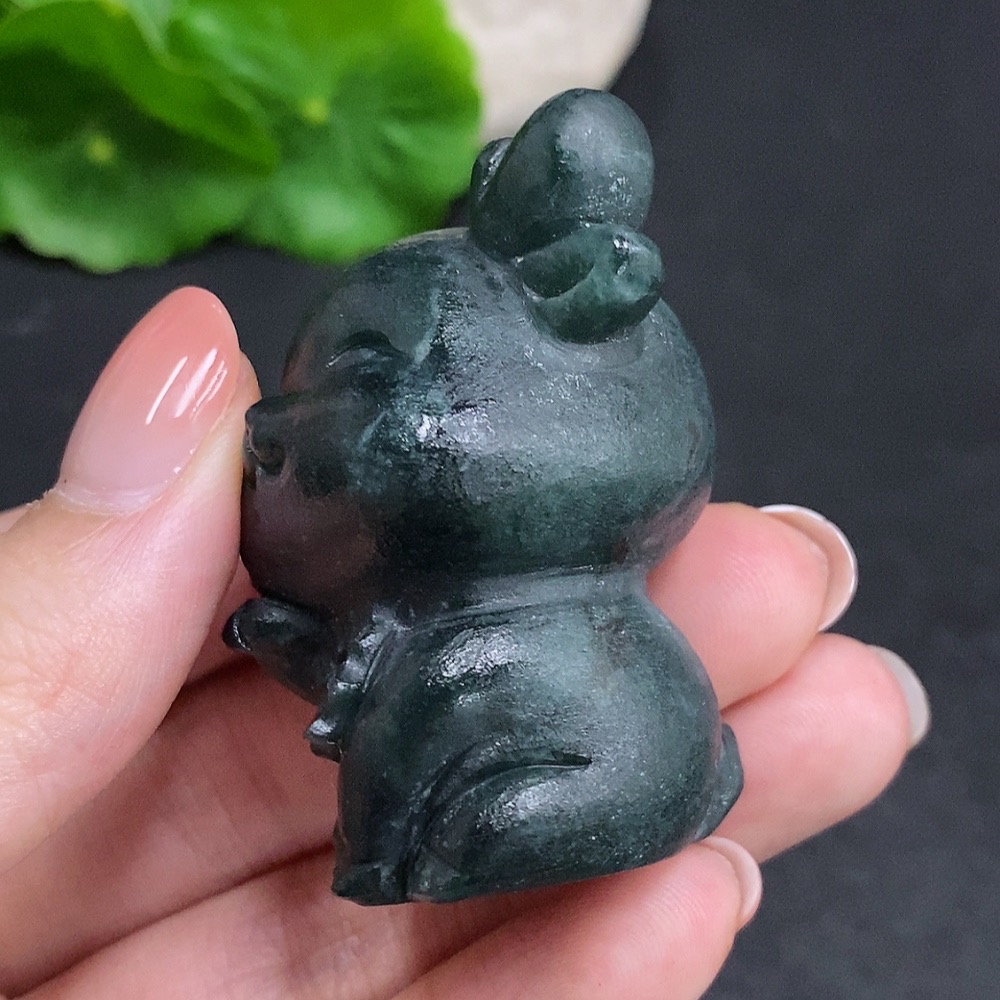 Jadeite Rough Carving 'Always With You' Ornament, Total Weight About 77g