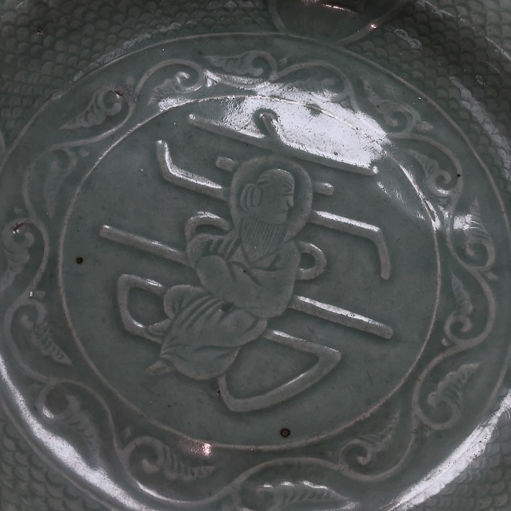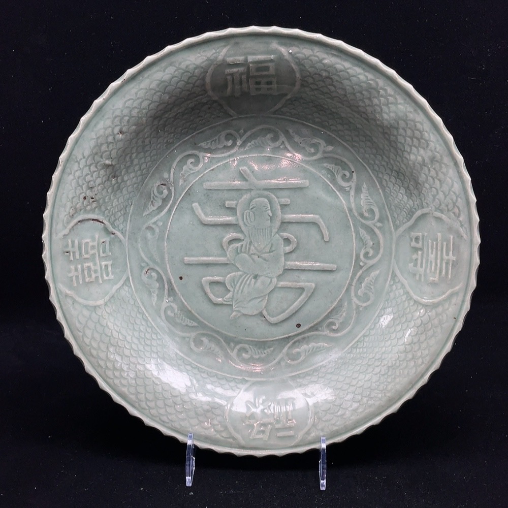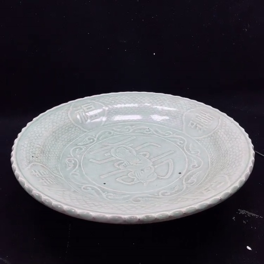Ceramic, Mint Condition, Ming Dynasty Longquan Celadon Plate with Auspicious Motifs (subject to the actual item)