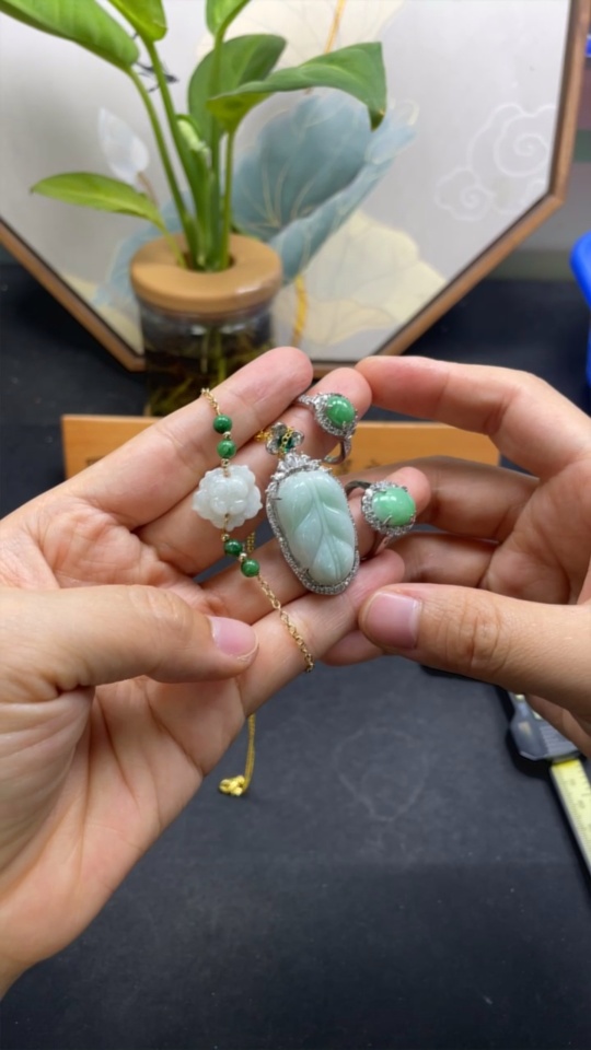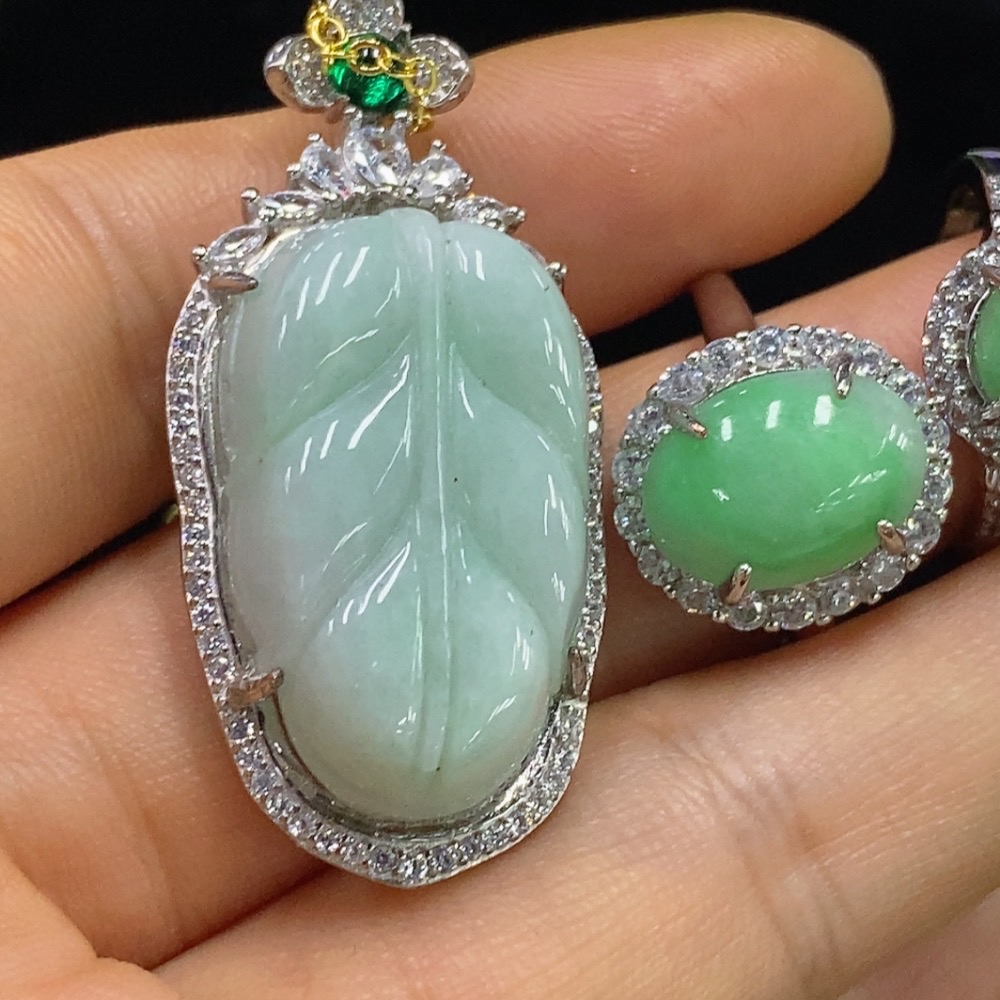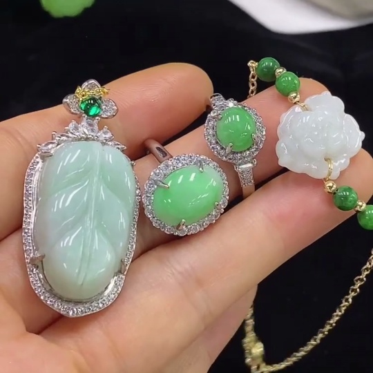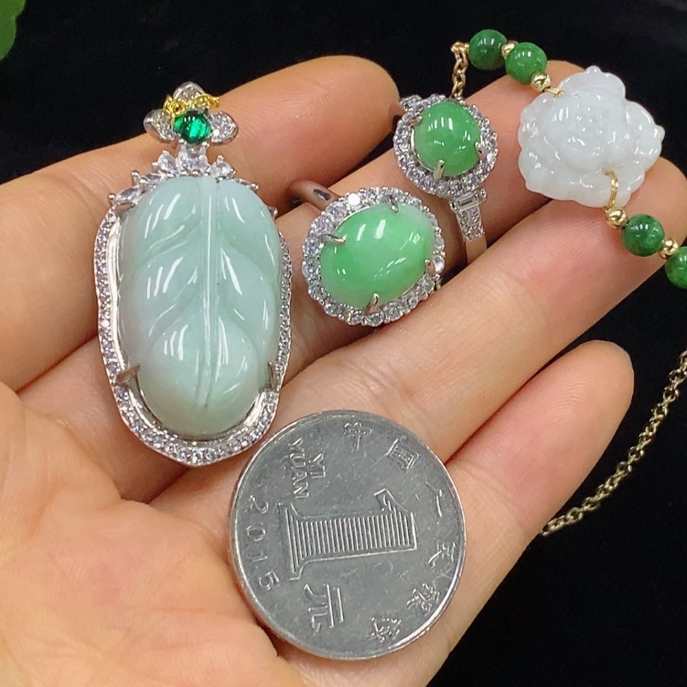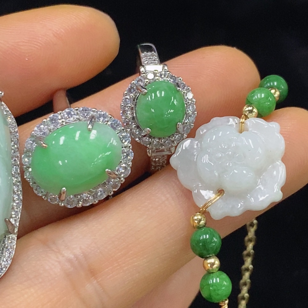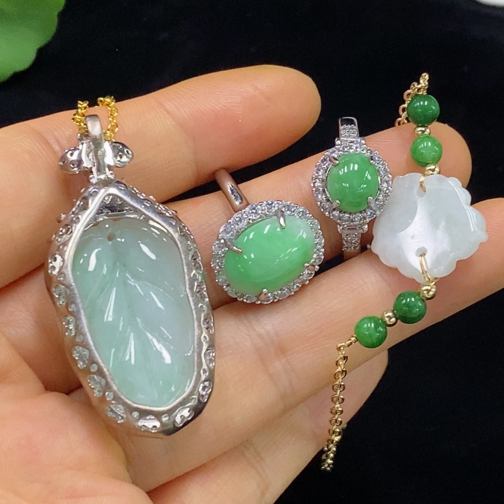 Jadeite inlaid pendant/bracelet/ring non-gold adjustable opening non-A green bead
