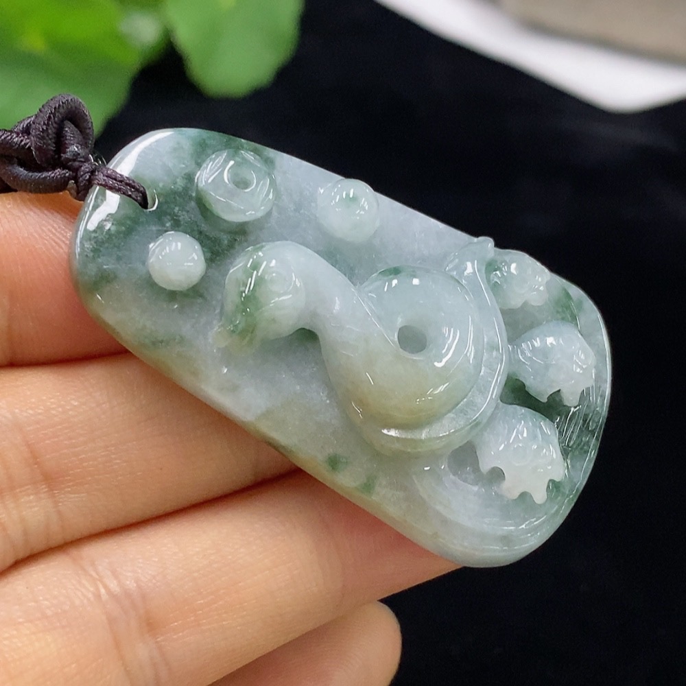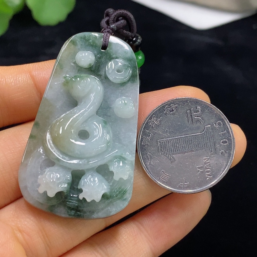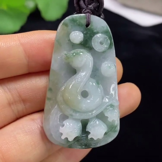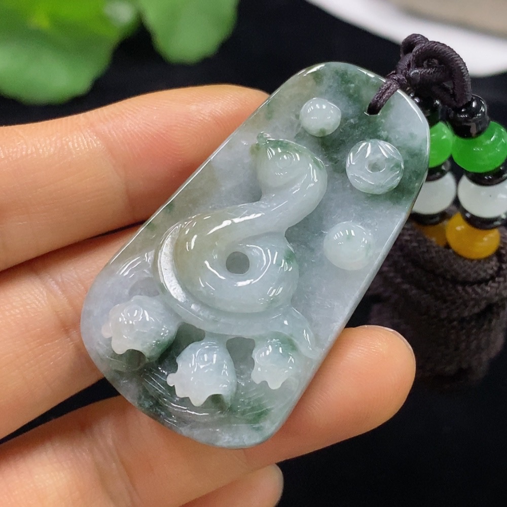 Jadeite Snake Pendant Total Weight Approx. 31.46g (Including Rope Weight) With Non-Grade A Beads