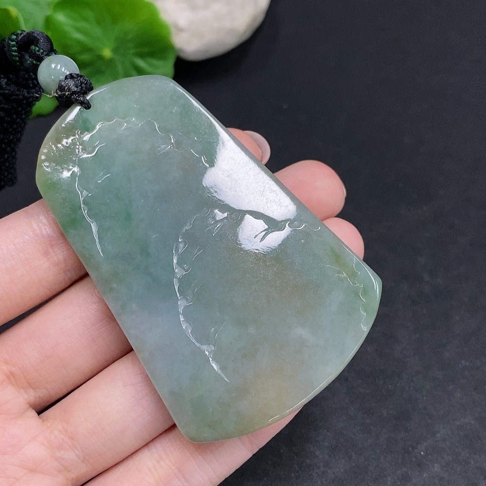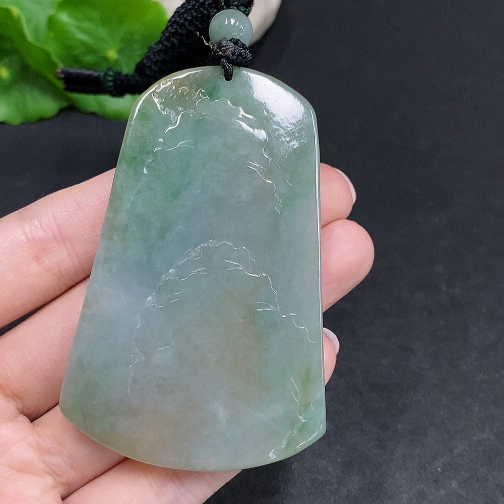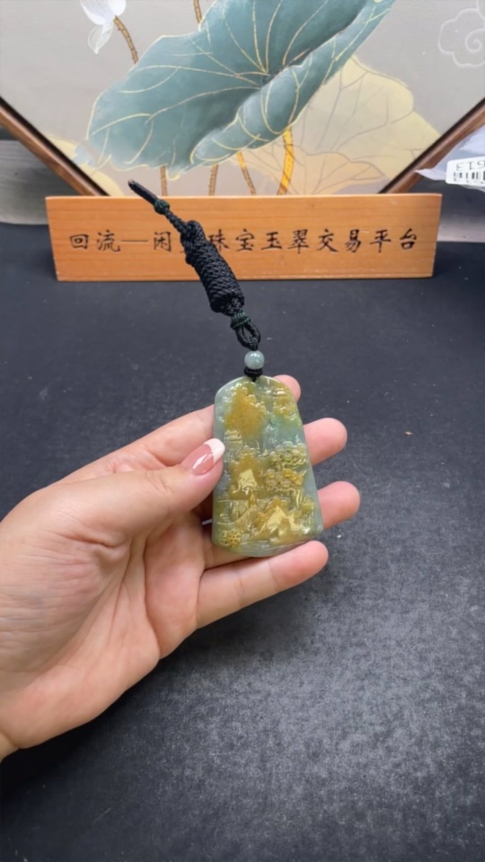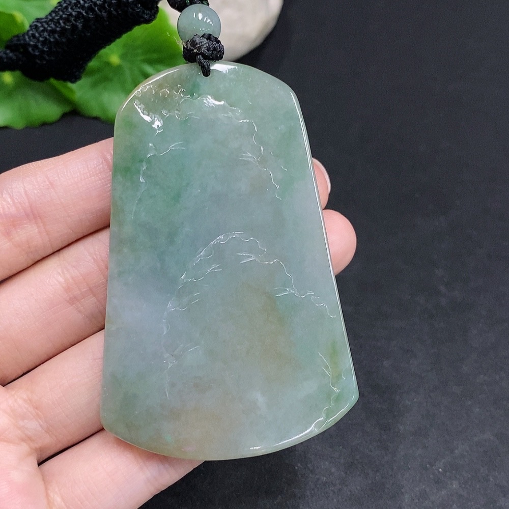 Jadeite Landscape Pendant Total Weight Approx. 54.1g (Including Cord) Yellow Color Origin Undetermined