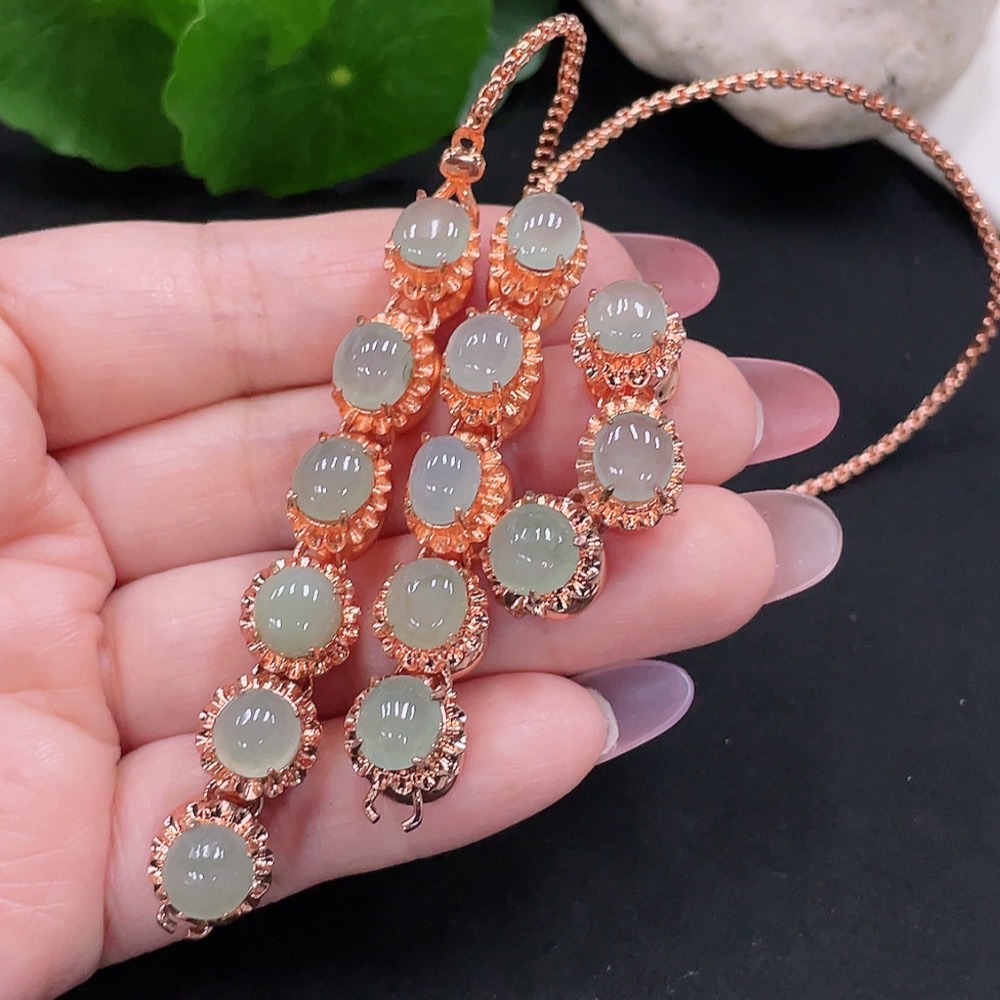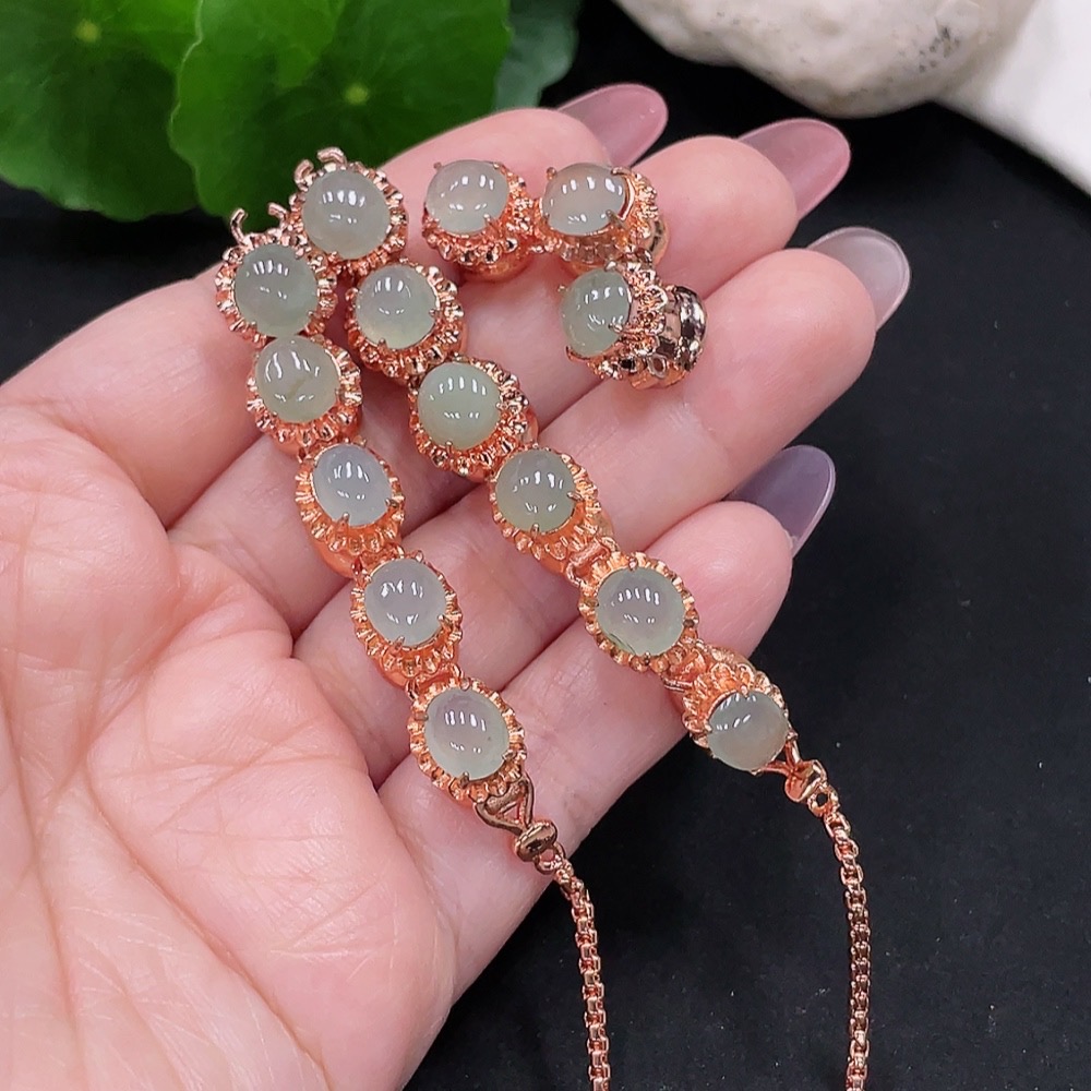 Jadeite Cabochon Non-Gold Inlaid Sell as a Lot Total Weight Approx. 35.68g