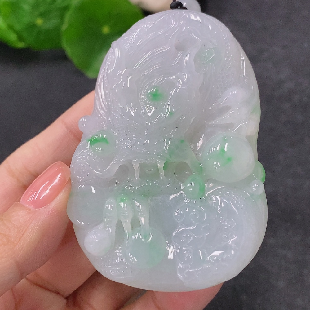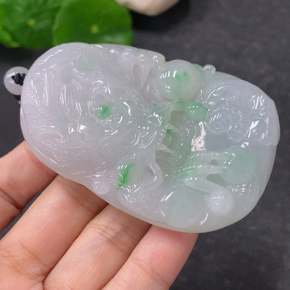Jadeite Pendant Dragon Plaque Total Weight Including Rope 85.67g