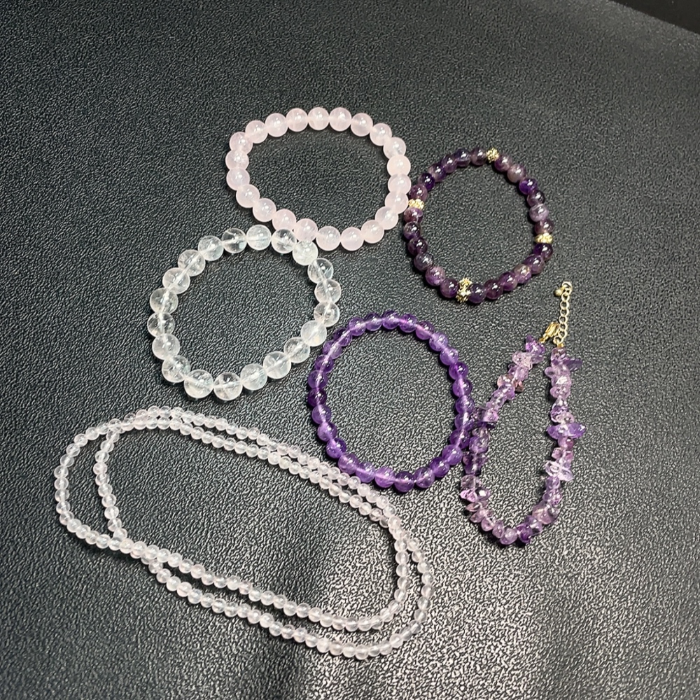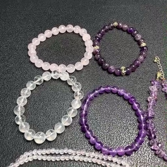 Crystal Beaded Necklace with Visible Organic Inclusions, Non-Gold, Total Weight Approx. 83.49g, Sell as a Lot