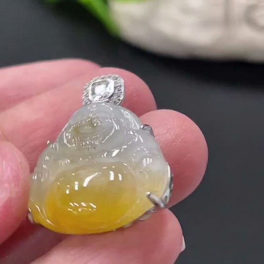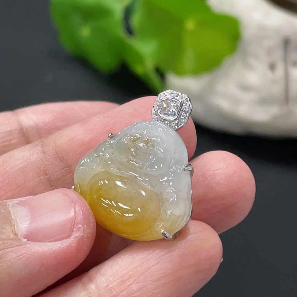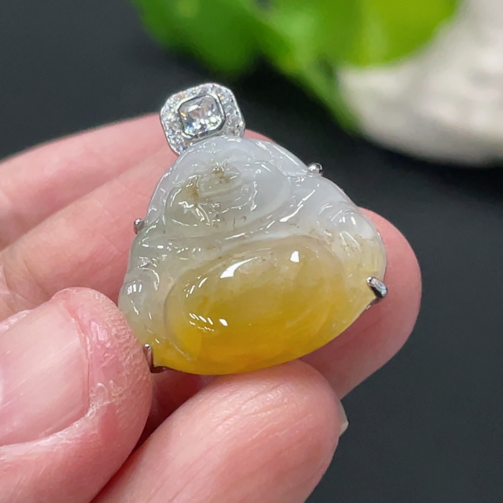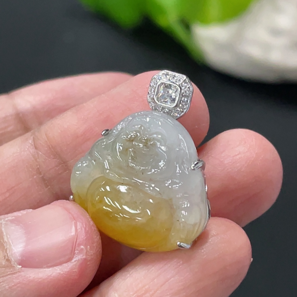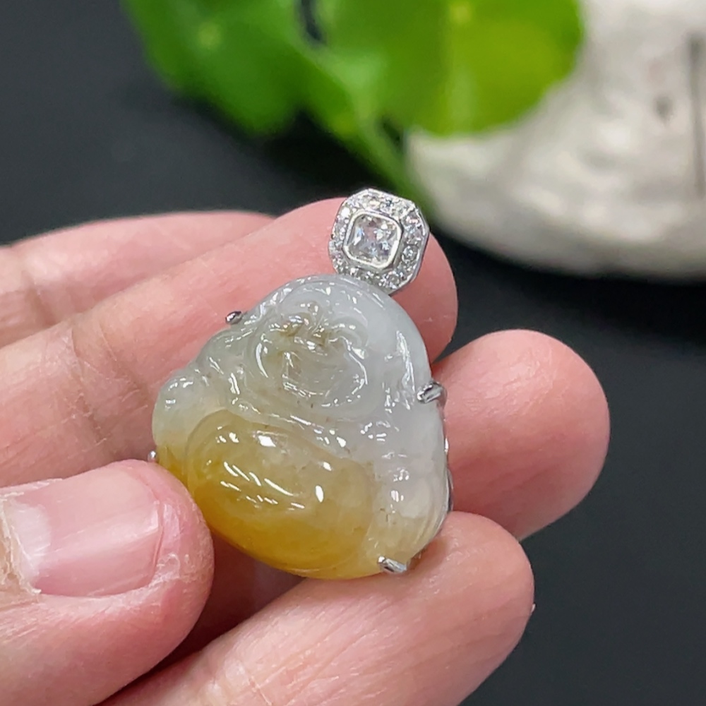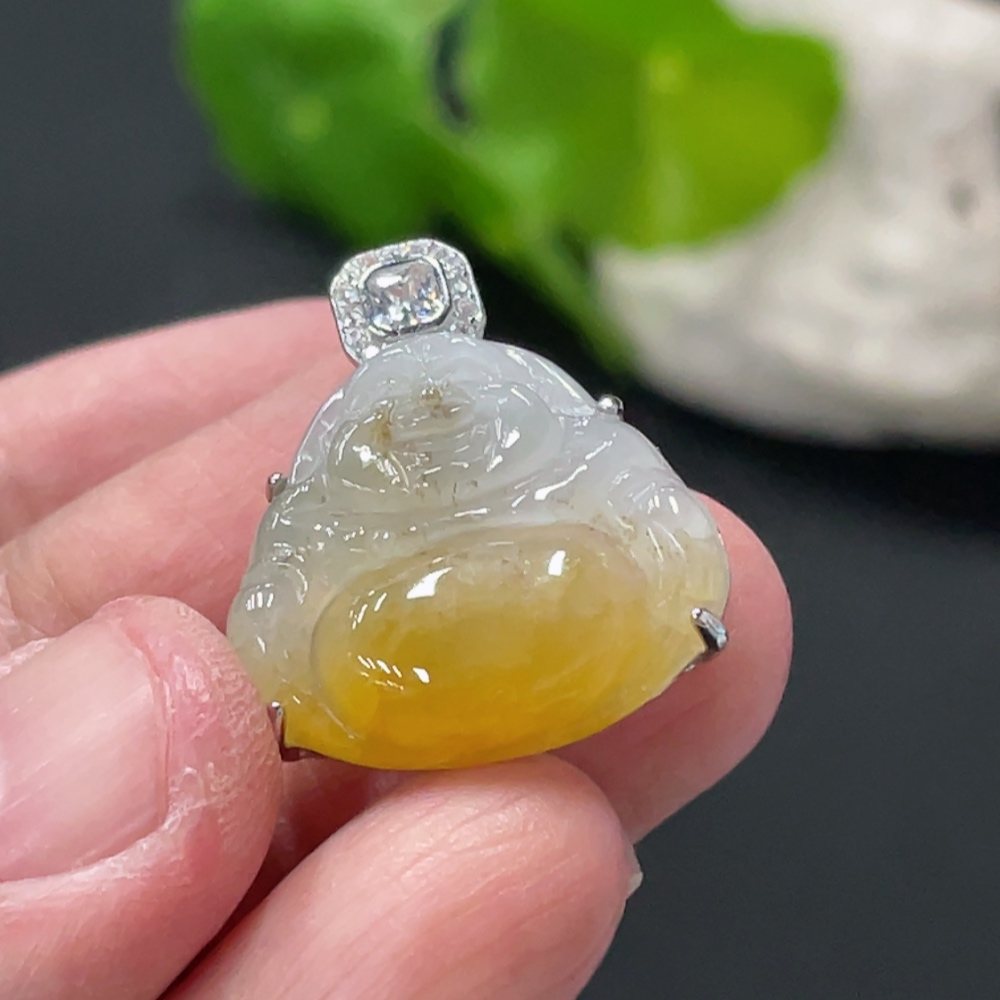Jadeite Buddha Pendant Inlaid without Metal, Color Origin Undetermined, Total Weight Approx. 4.7g