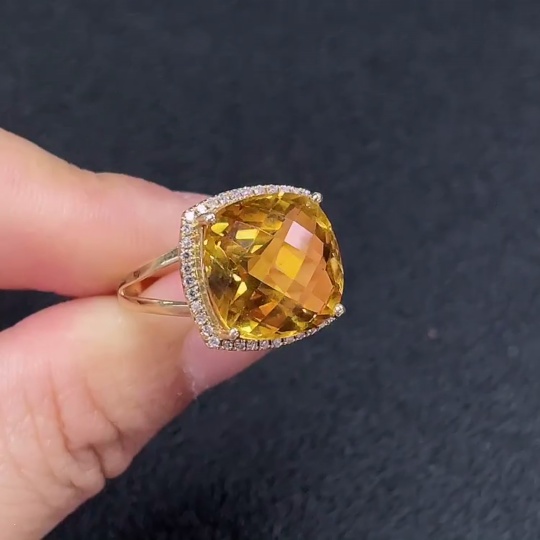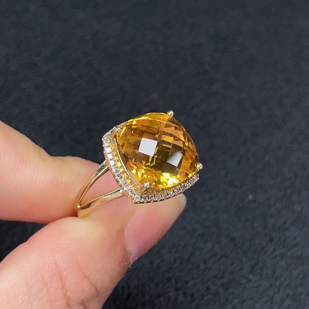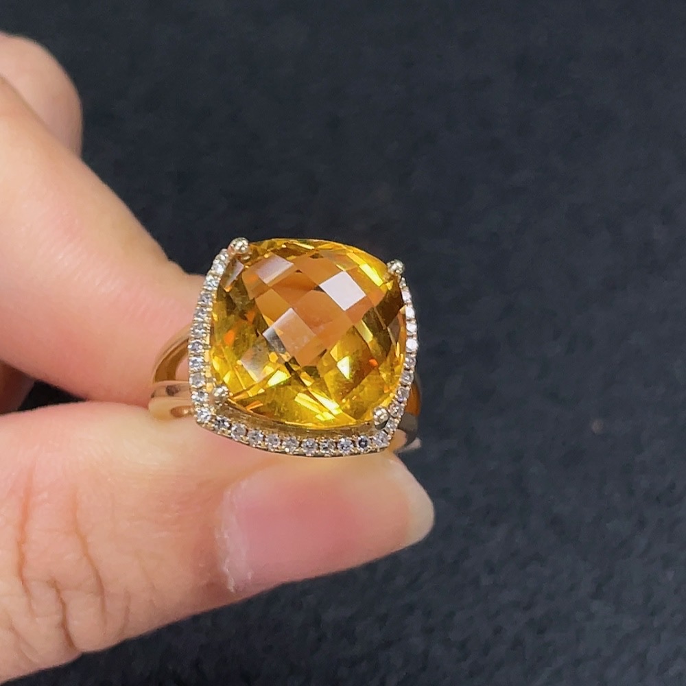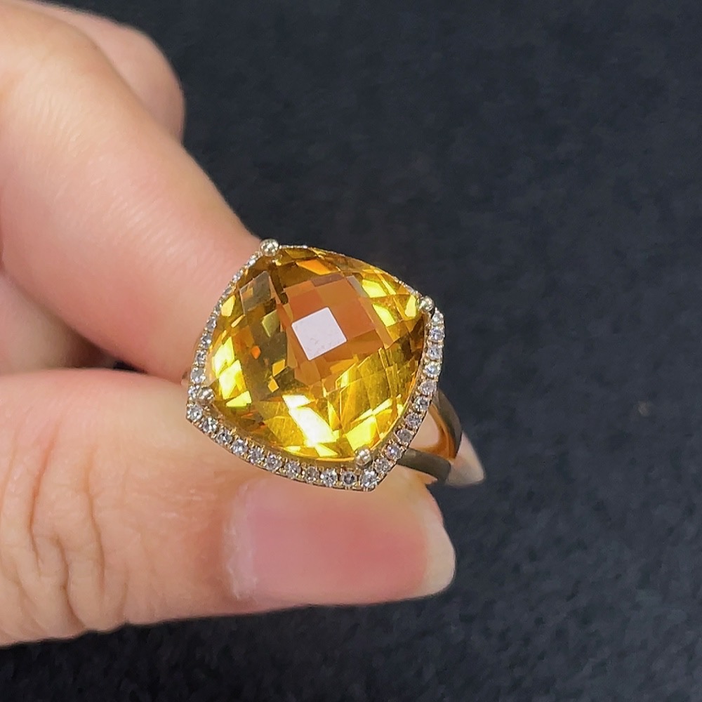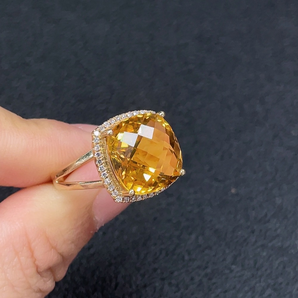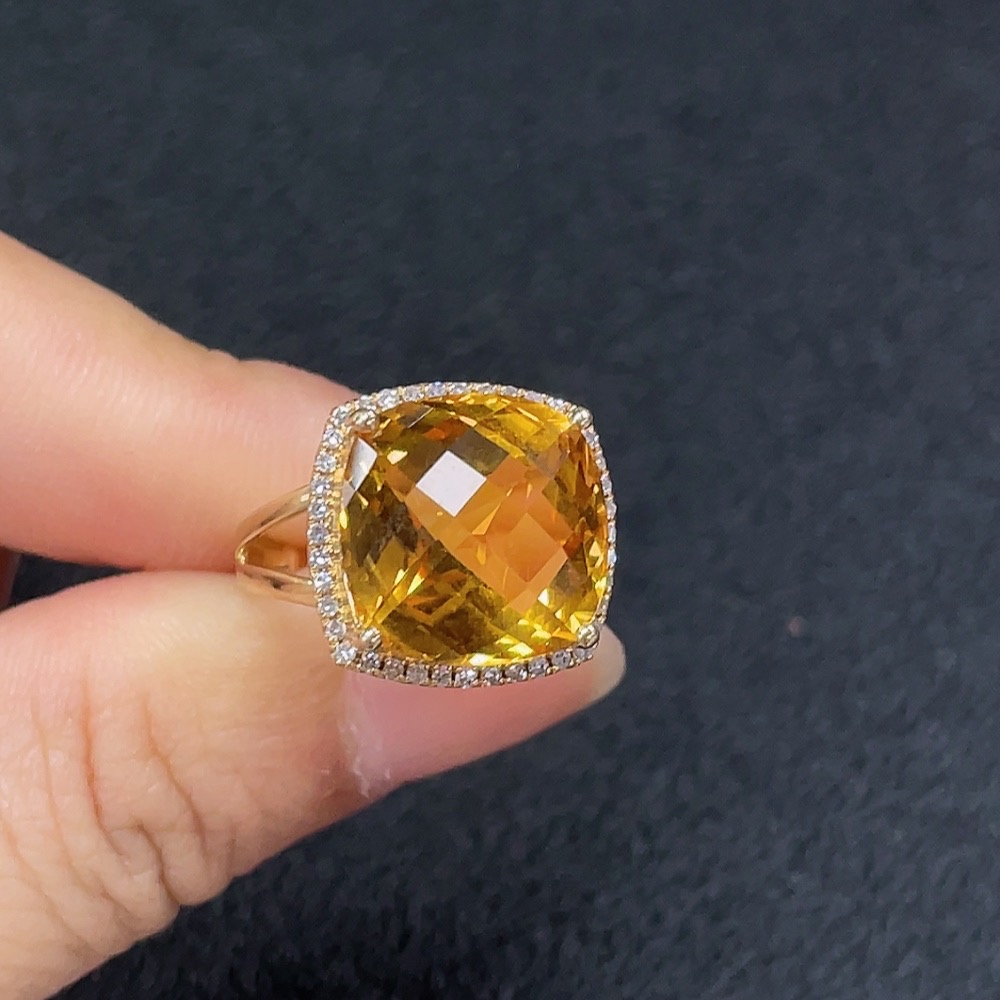 Crystal Ring with Diamond Accents, Au 58%, Approx. 5.85g, Size 11, Stone 12.6mm