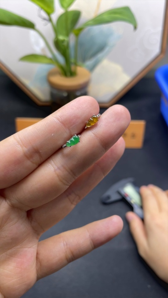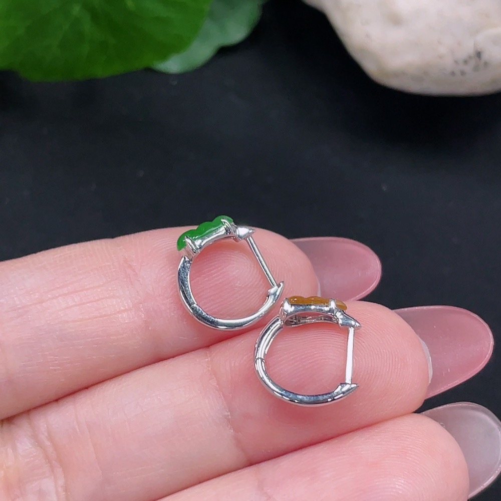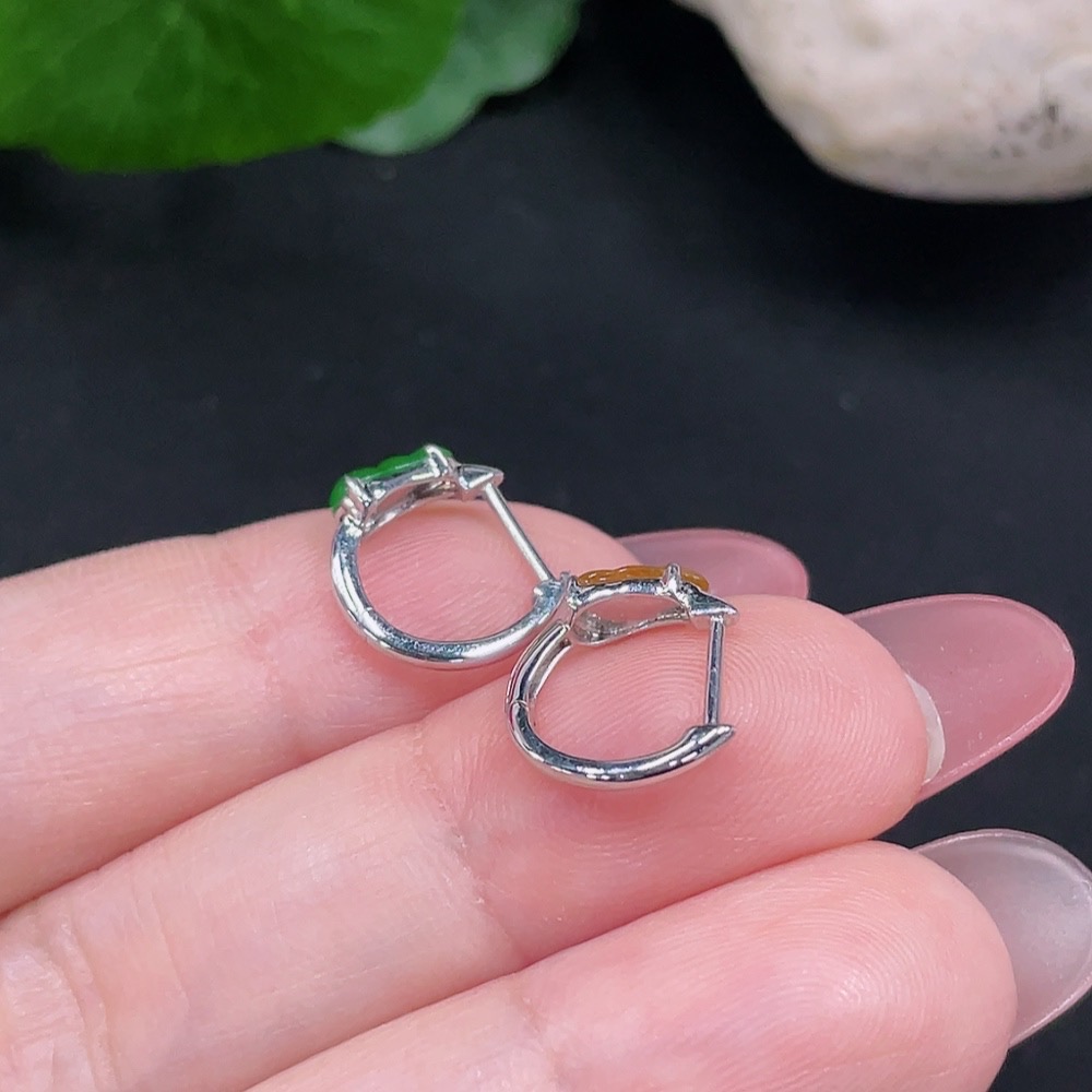 Jadeite earrings with 18K gold setting, total weight approx. 1g (yellow part color origin undetermined)