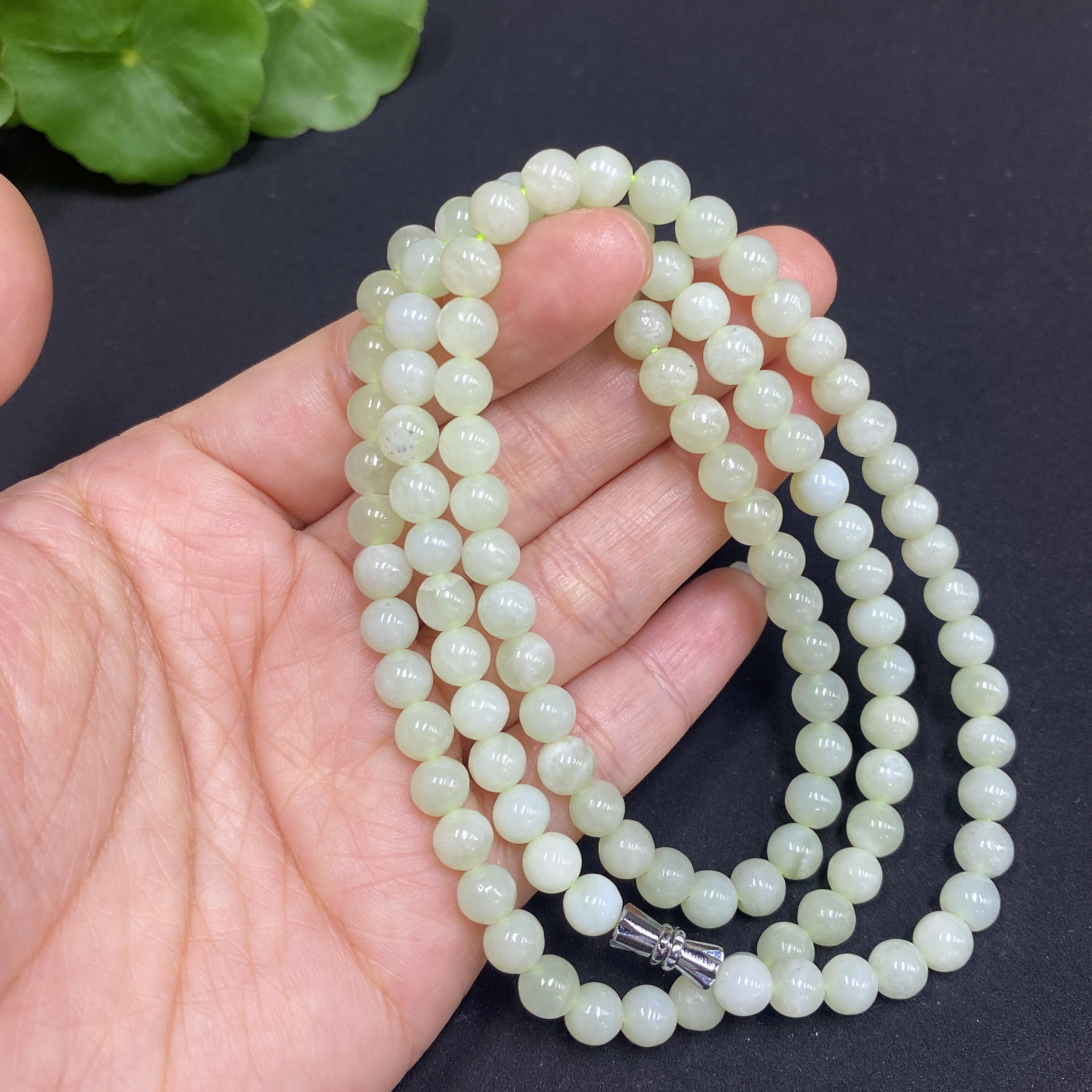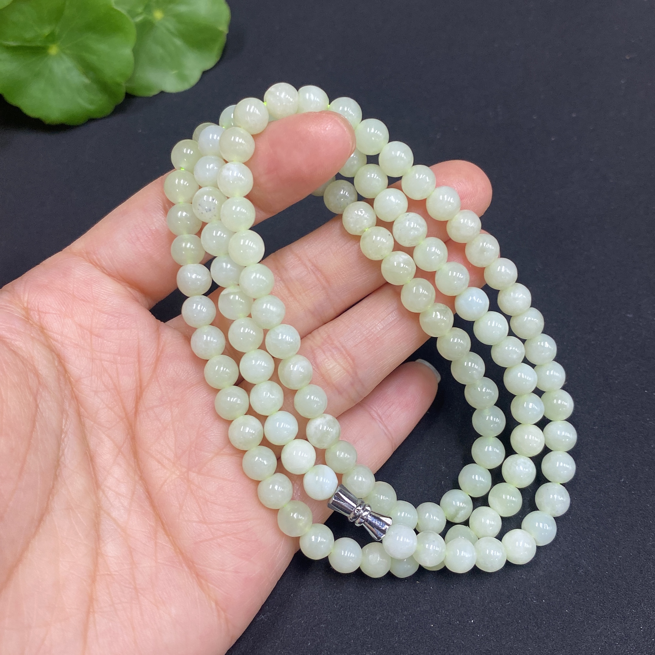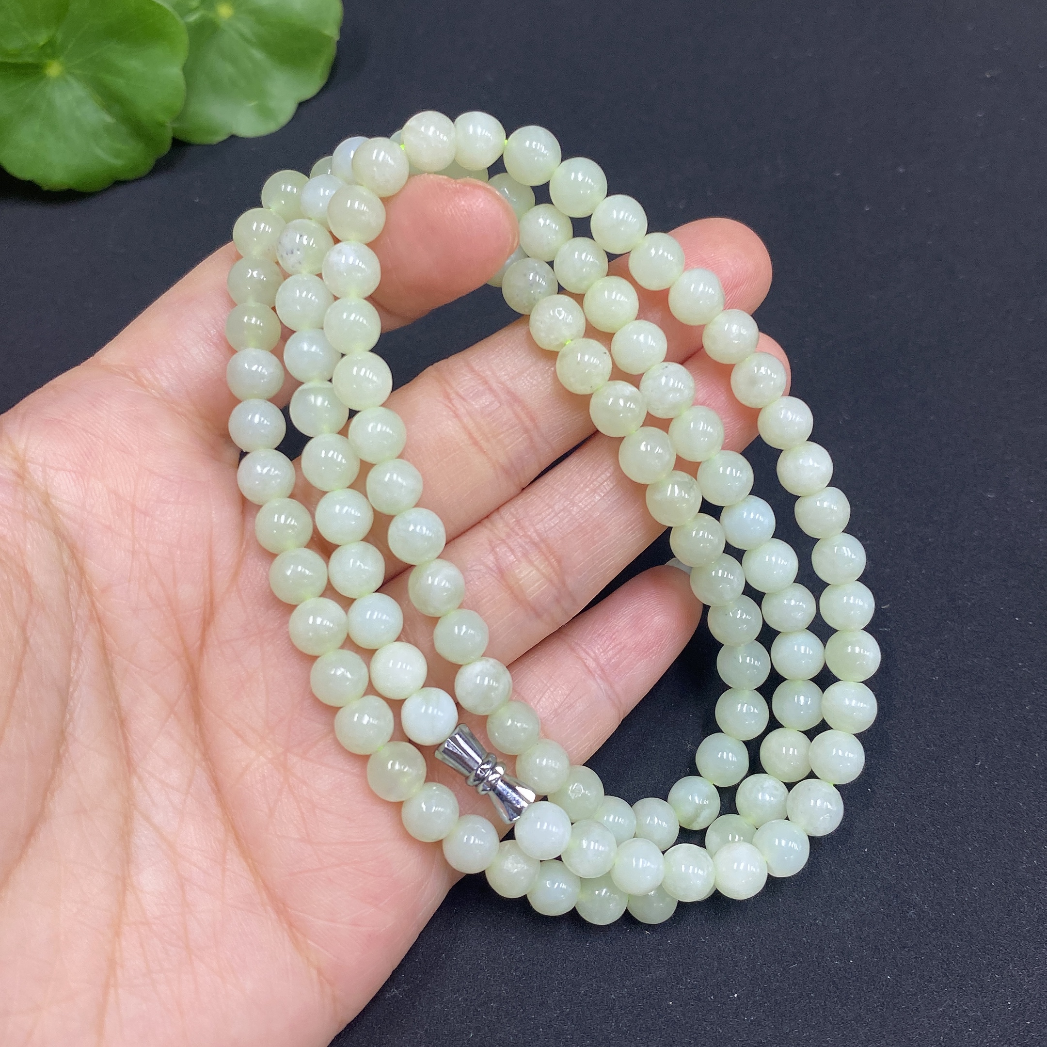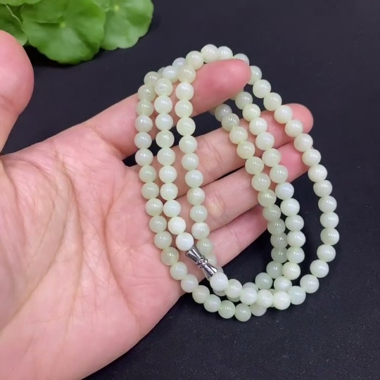 Hetian Jade Bead Necklace, Approx. 5.8mm, Total Weight Approx. 35.7g, Containing Other Mineral Components
