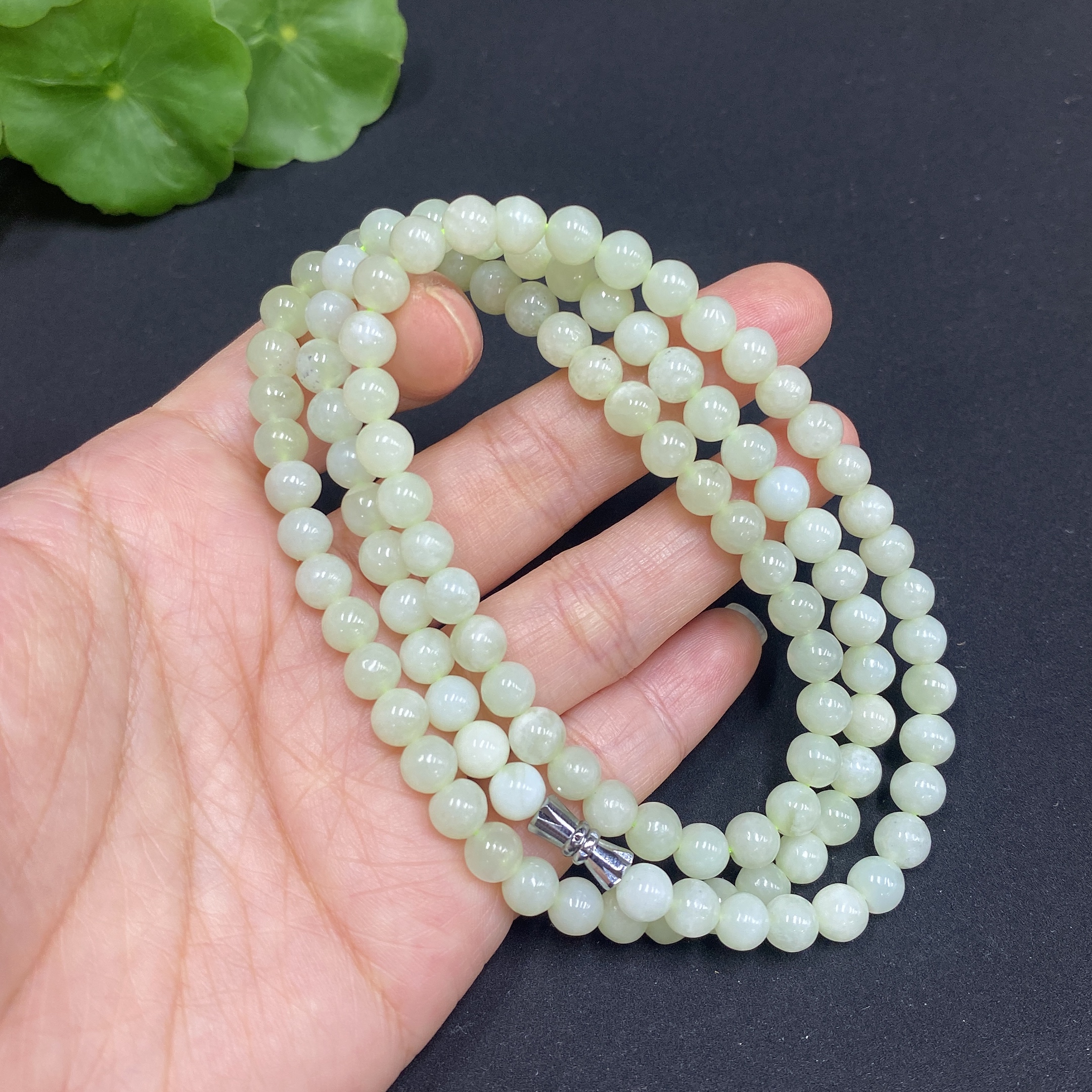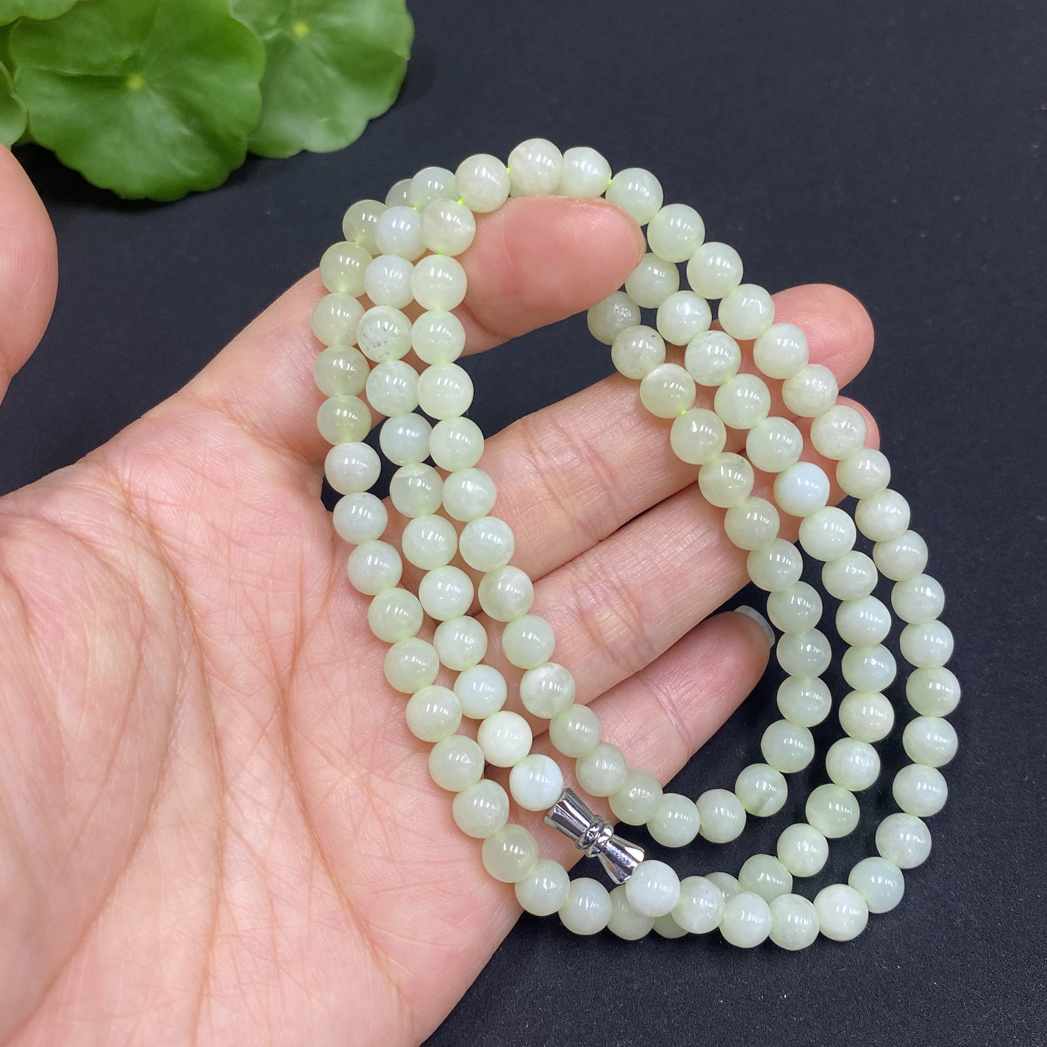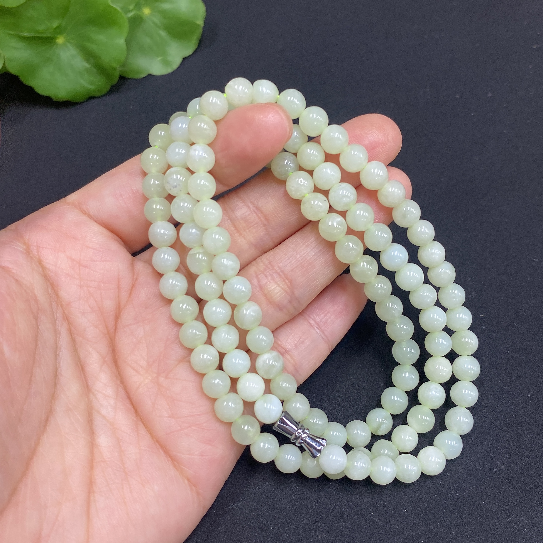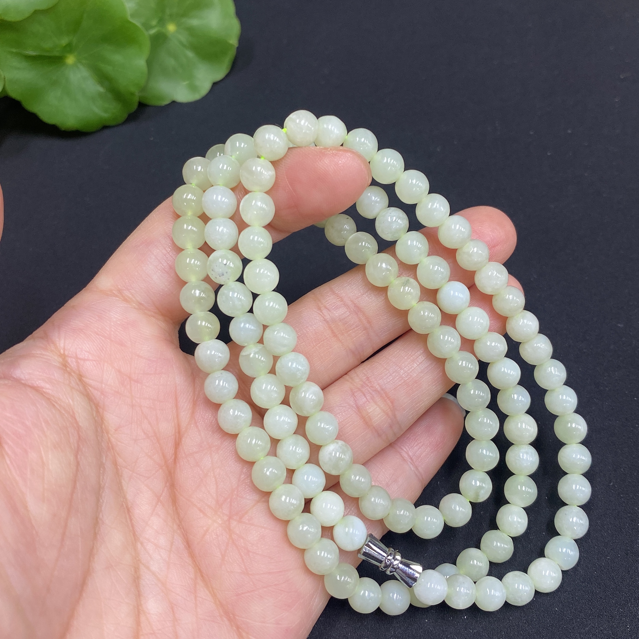 Hetian Jade Bead Necklace, Approx. 5.8mm, Total Weight Approx. 35.7g, Containing Other Mineral Components
