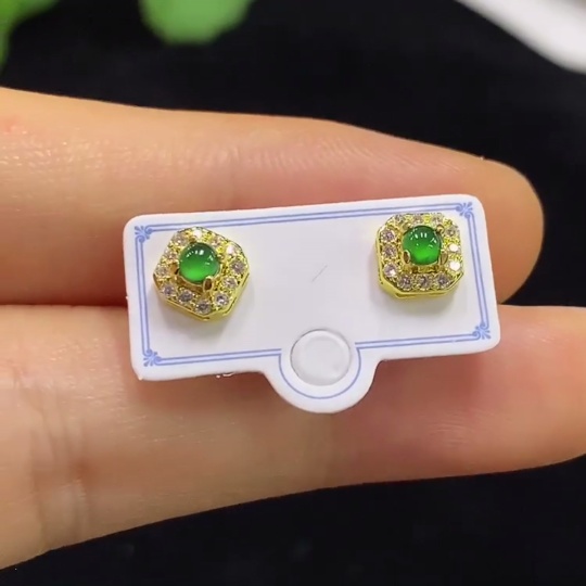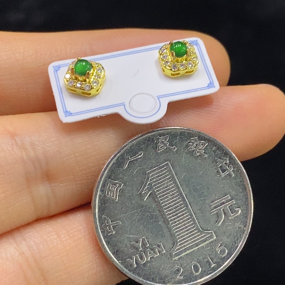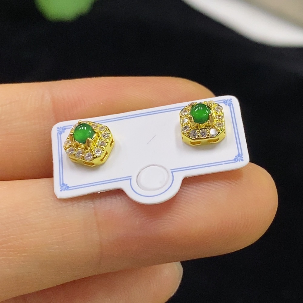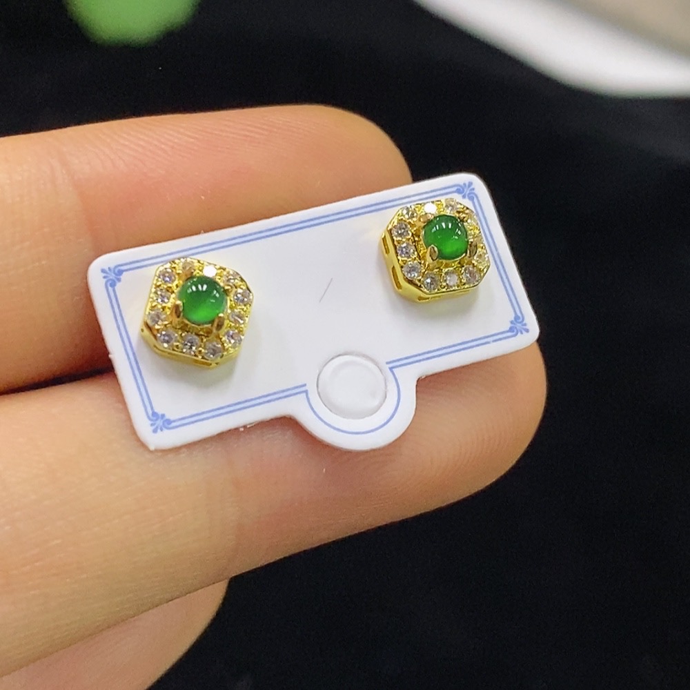 Jadeite Earrings Non-Gold Total Weight Approx. 0.91g