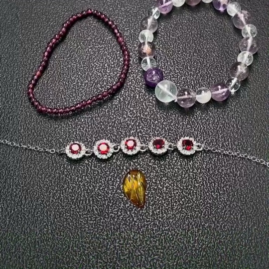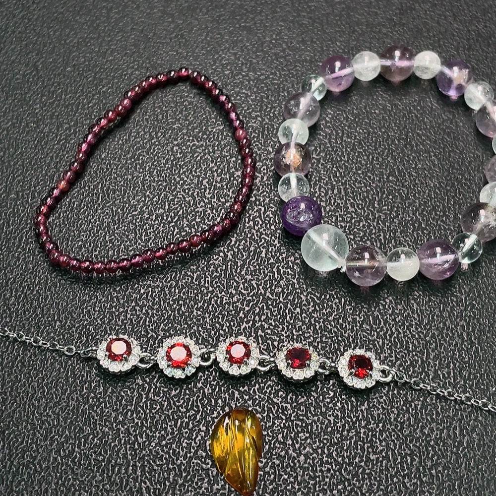 Garnet + Crystal + Amber Beeswax with Colorless Coating, Non-Gold, Total Weight Approx. 22.75g, Sell as a Lot