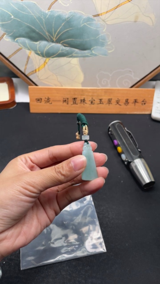 Jadeite Pendant Antique Plaque Total Weight Approx. 6.6g with Rope