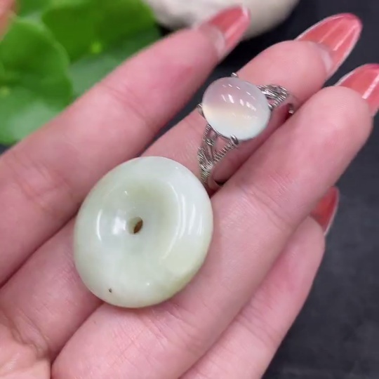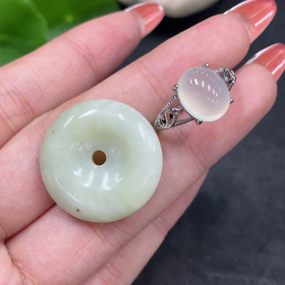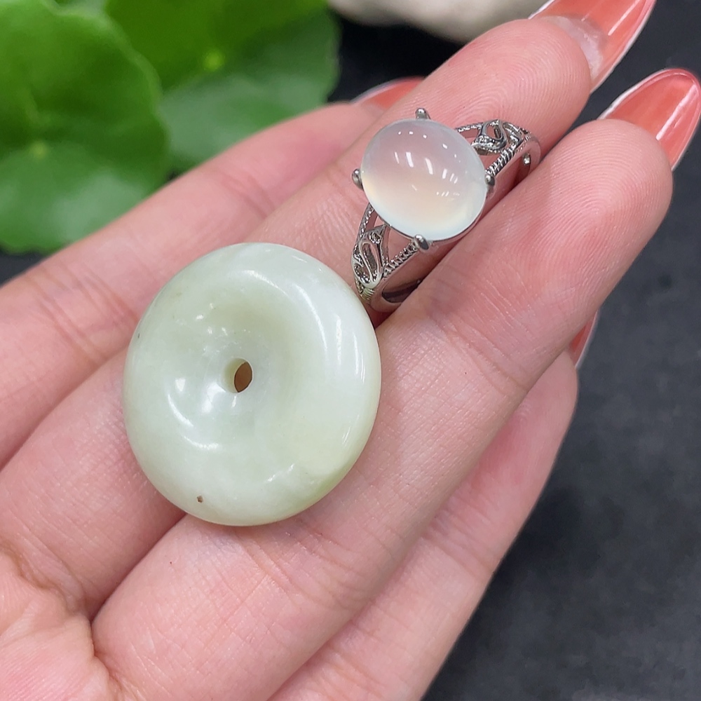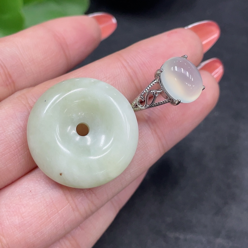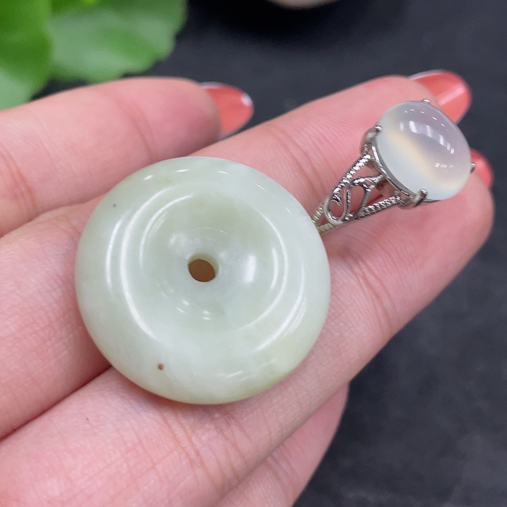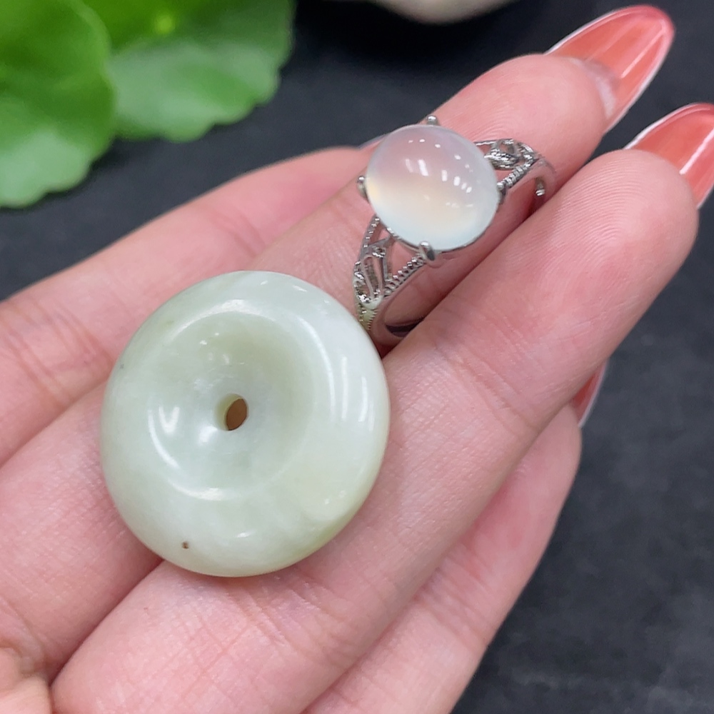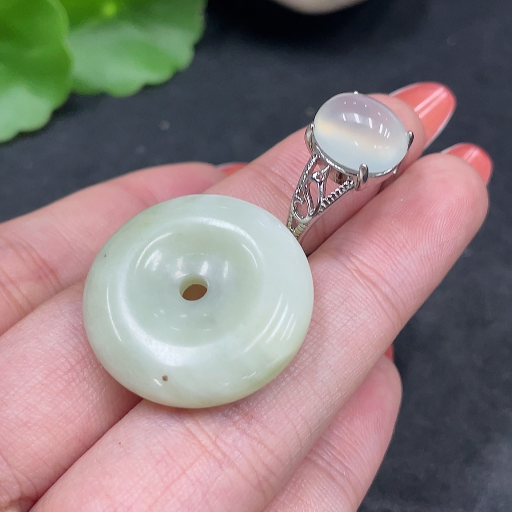 Xiuyu (serpentine jade) pendant peace buckle adjustable ring non-gold inlaid total product weight approx. 9g