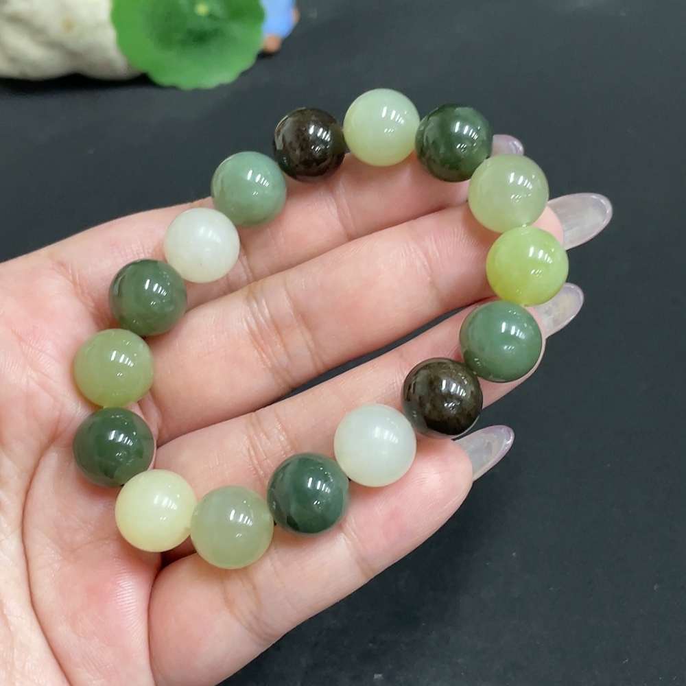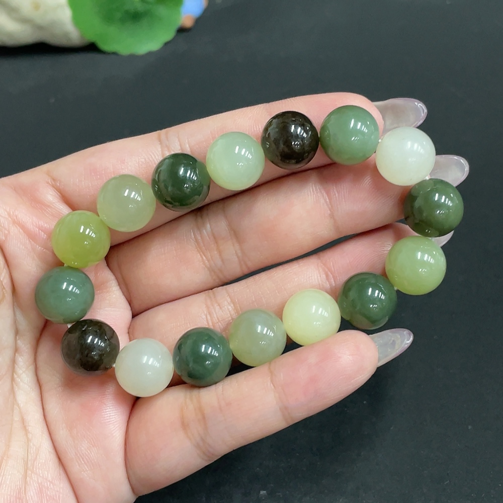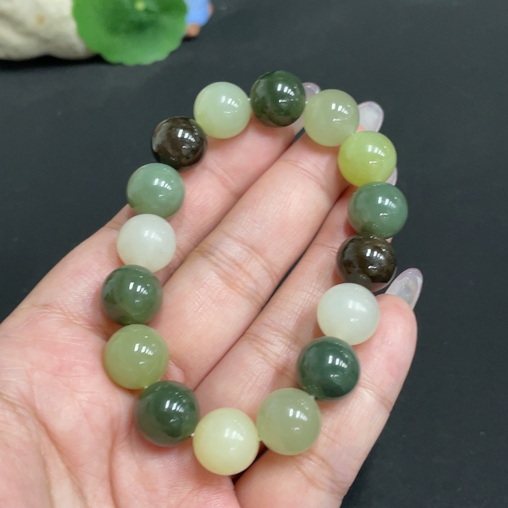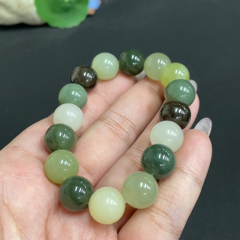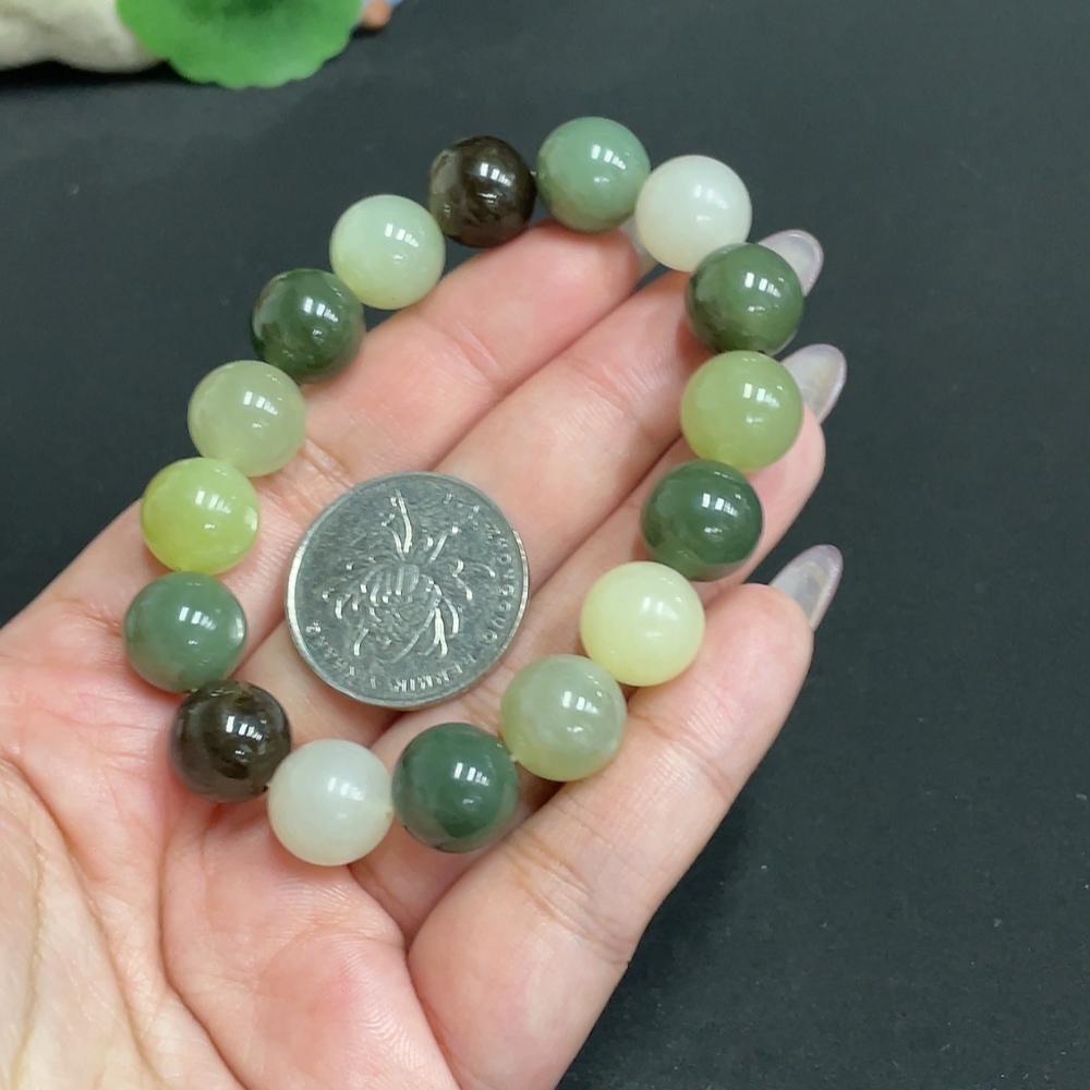 Hetian Jade Bracelet, Approx. 12 mm Beads, Total Weight Approx. 42.8g