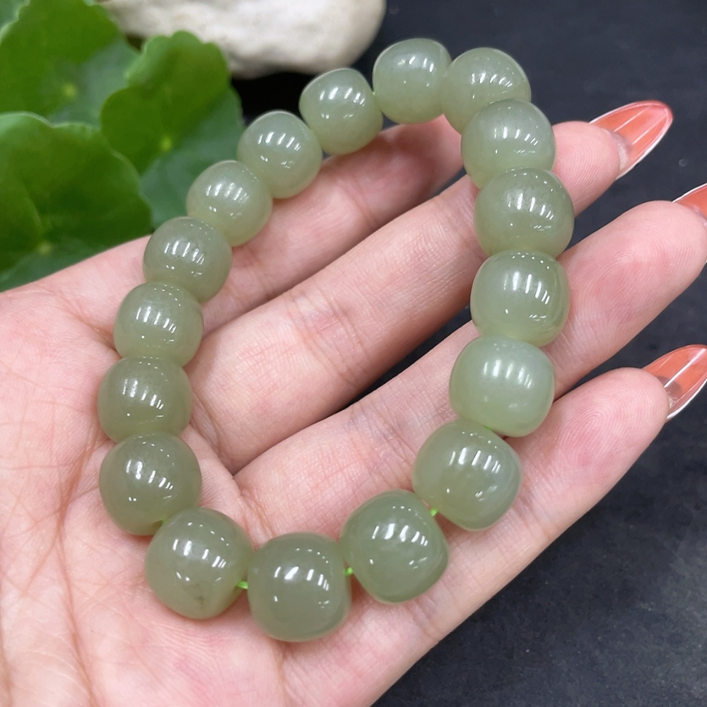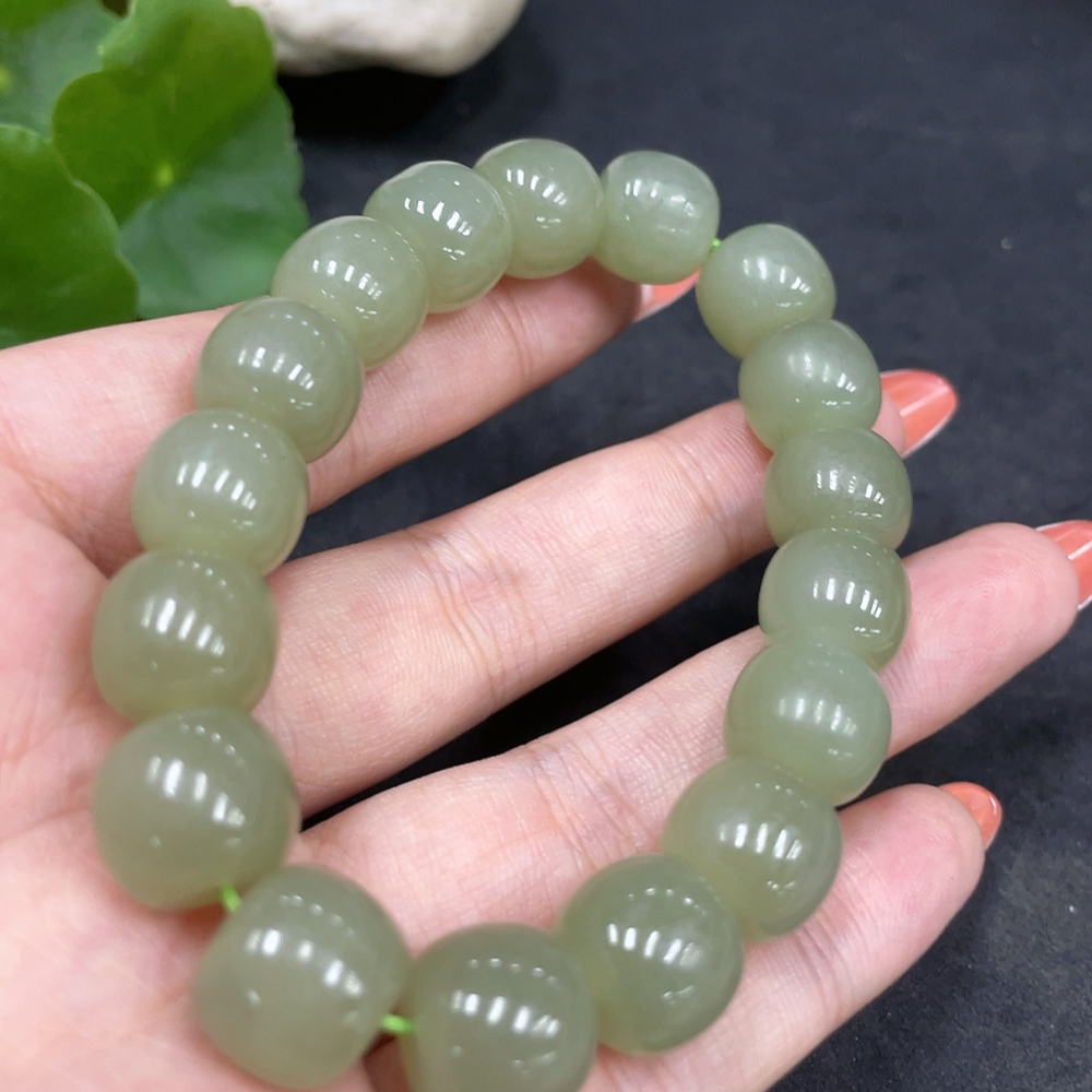 Hetian Jade Bracelet, Approx. 11.6mm Beads, Total Weight About 46.9g