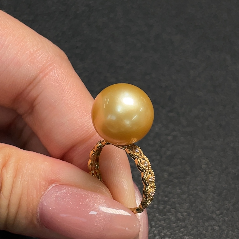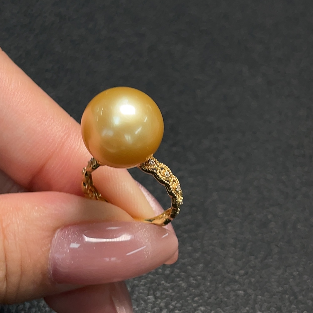 Seawater Pearl Ring 18K Gold Color Origin Undetermined Non-Diamond Total Weight Approx. 4.23g Size 10 Stone 13.1mm