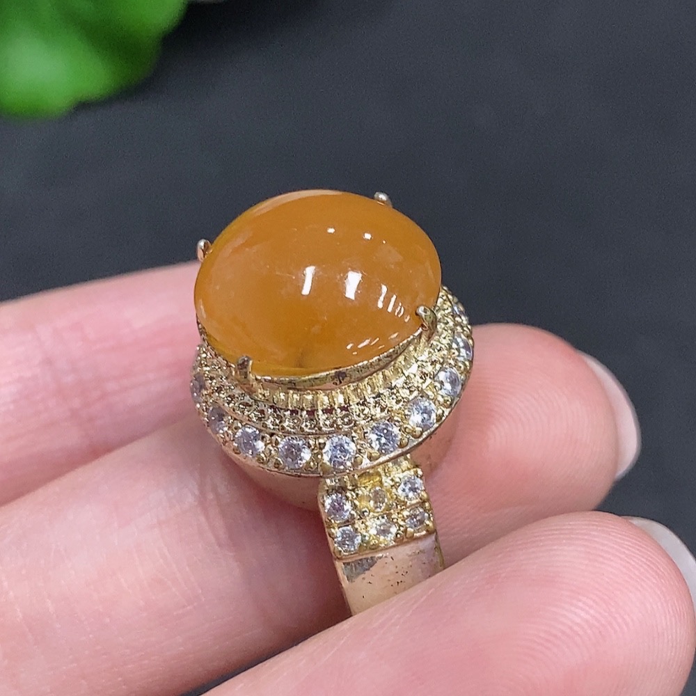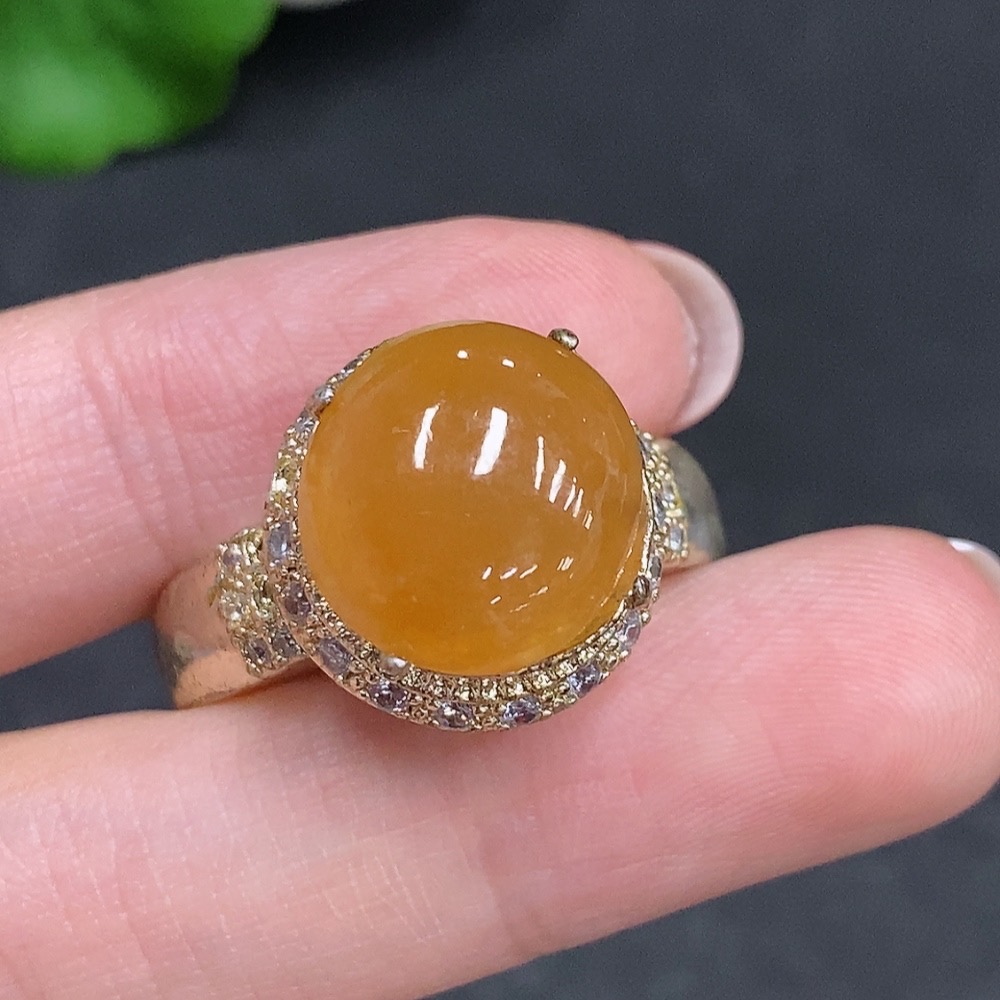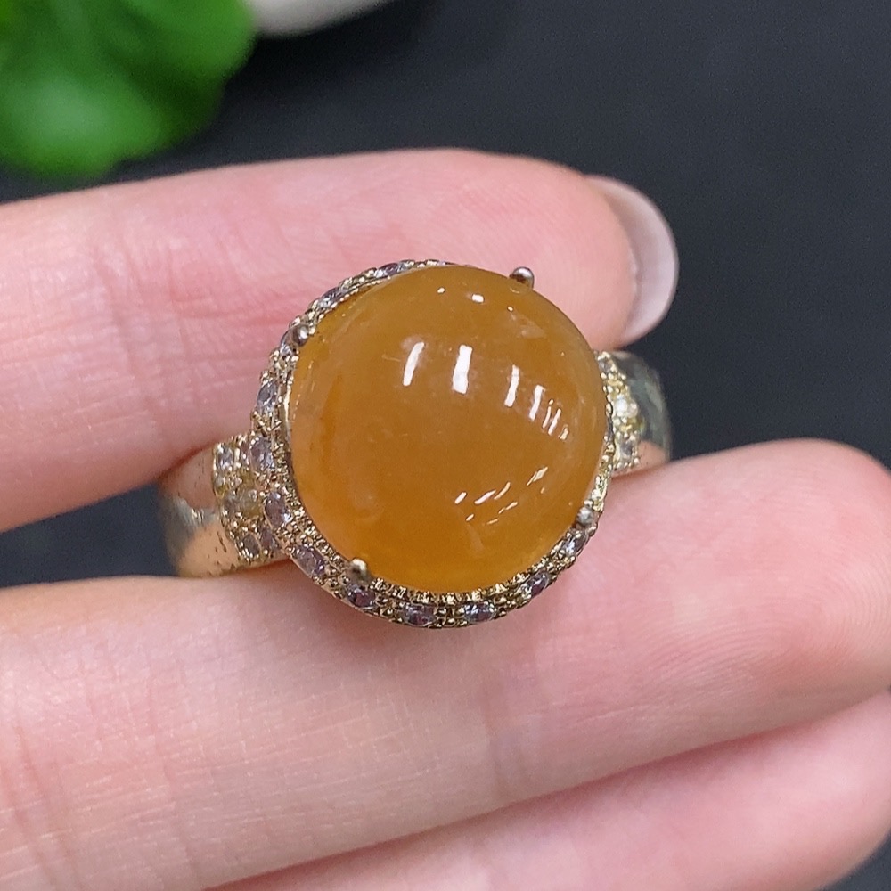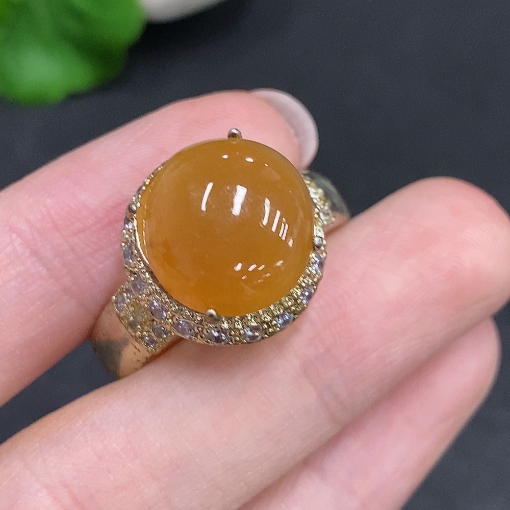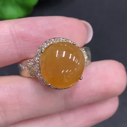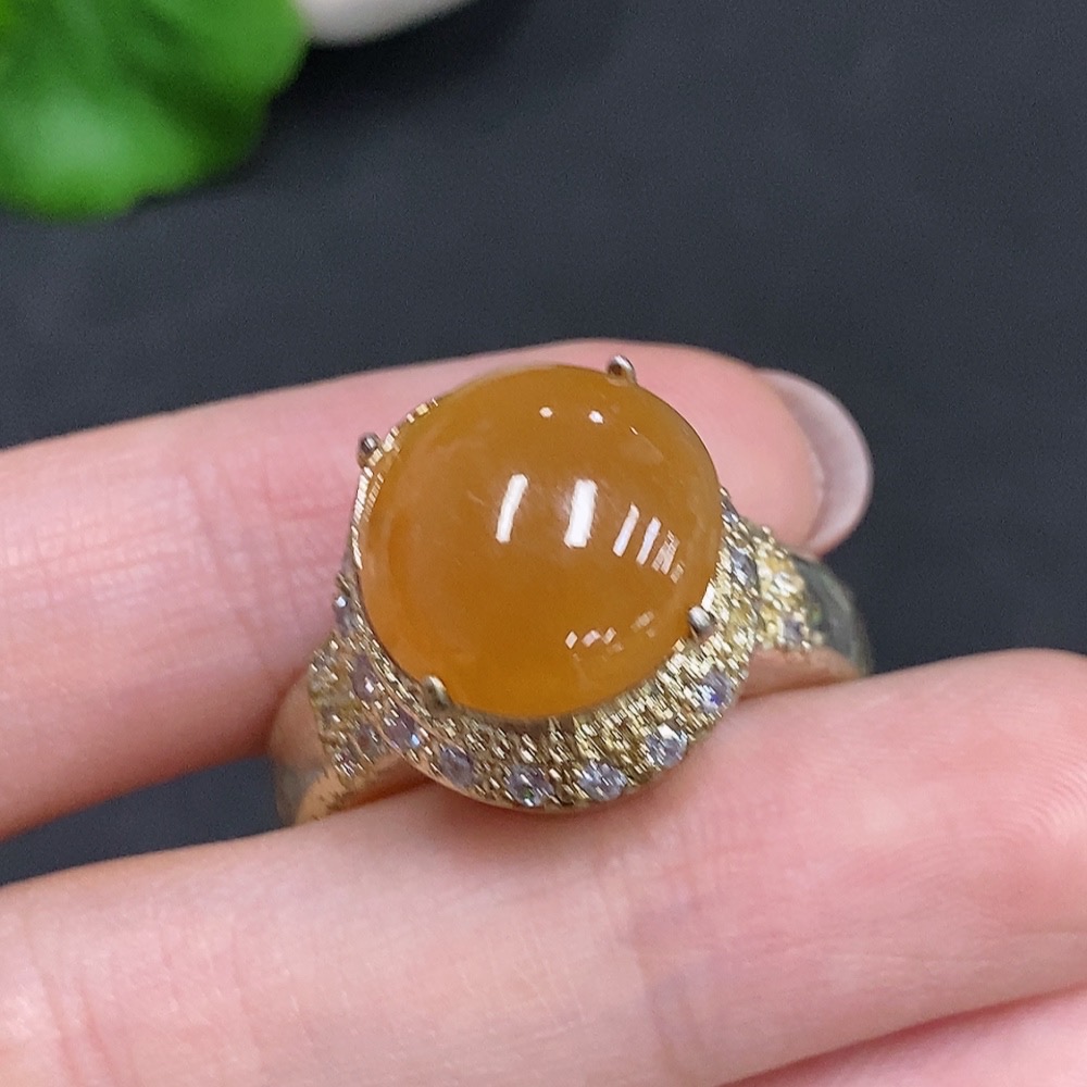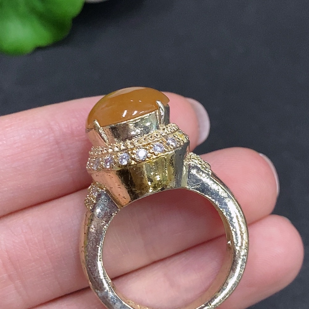 Jadeite Cabochon Non-Gold Setting Total Weight Approx. 13g Yellow Color Origin Undetermined