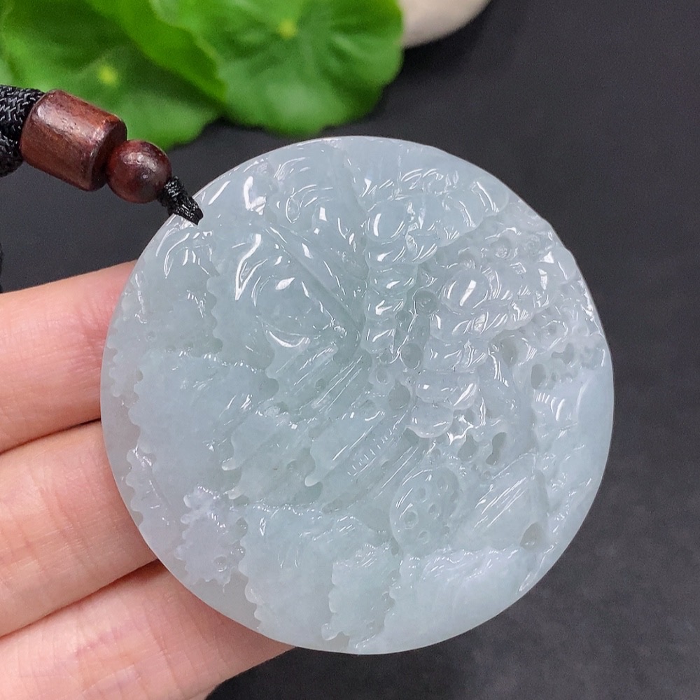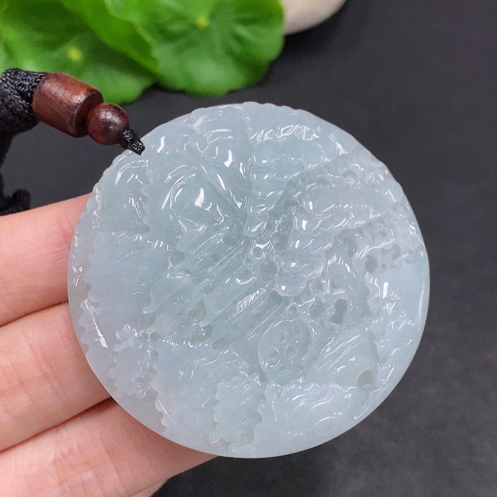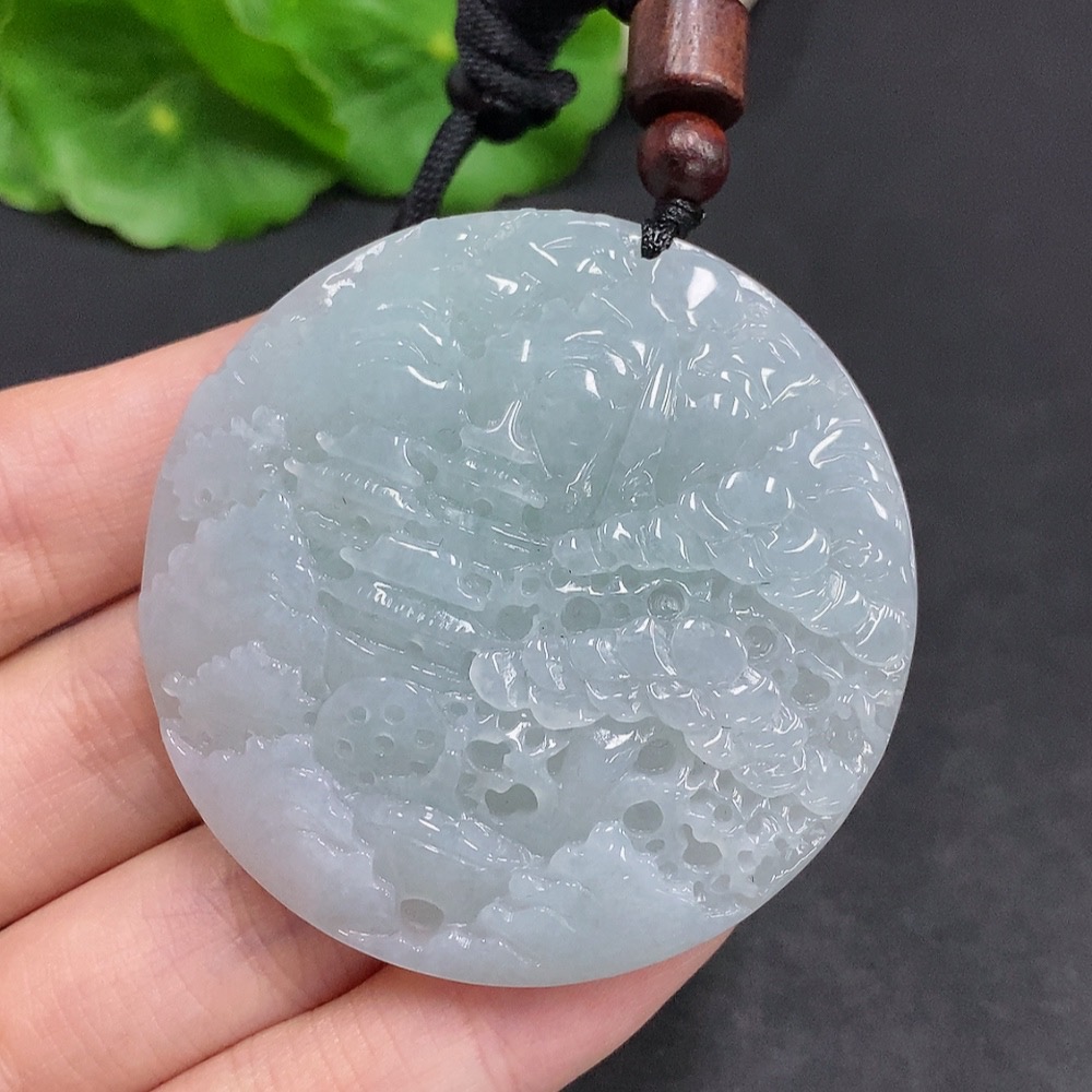 Jadeite Landscape Pendant with a total weight of approximately 60.4 grams (including rope weight)