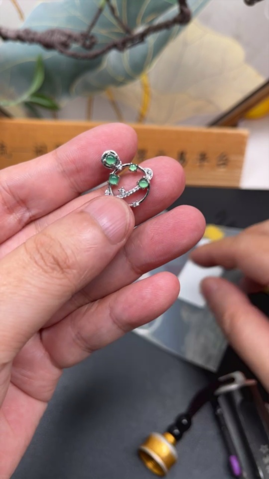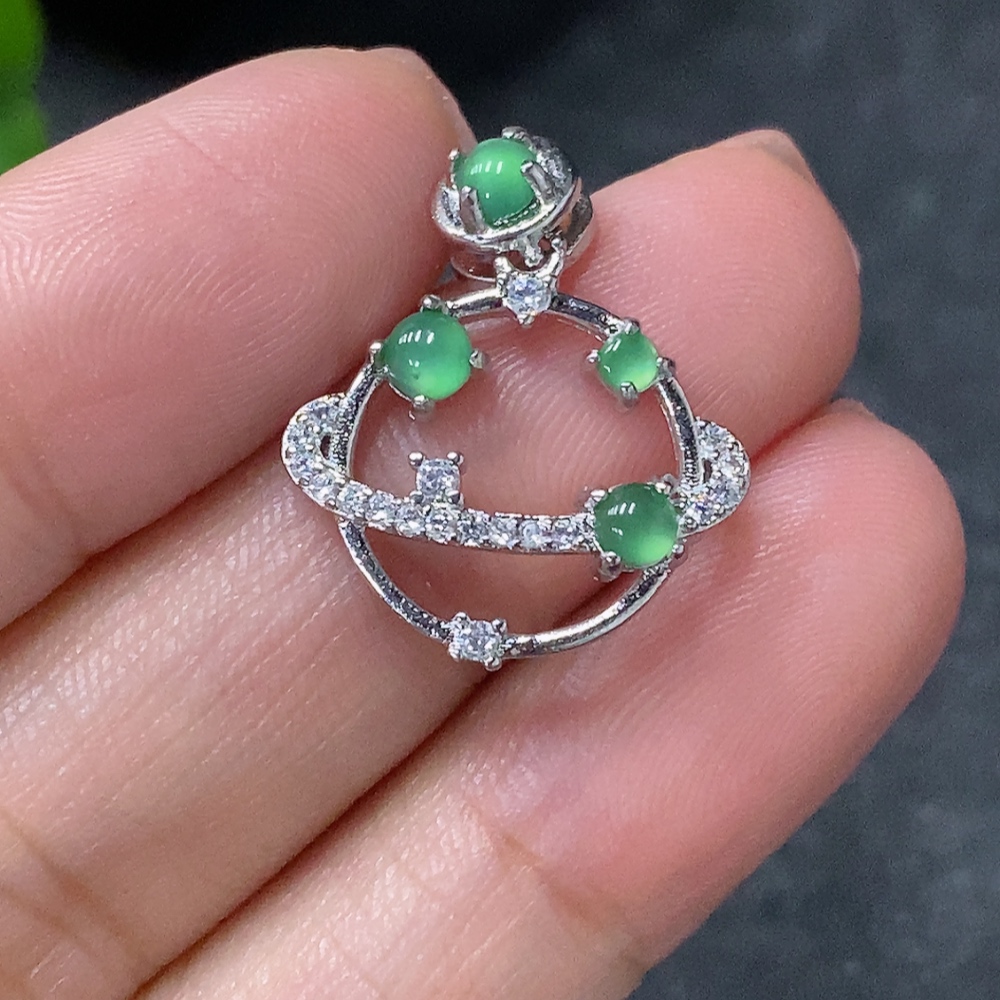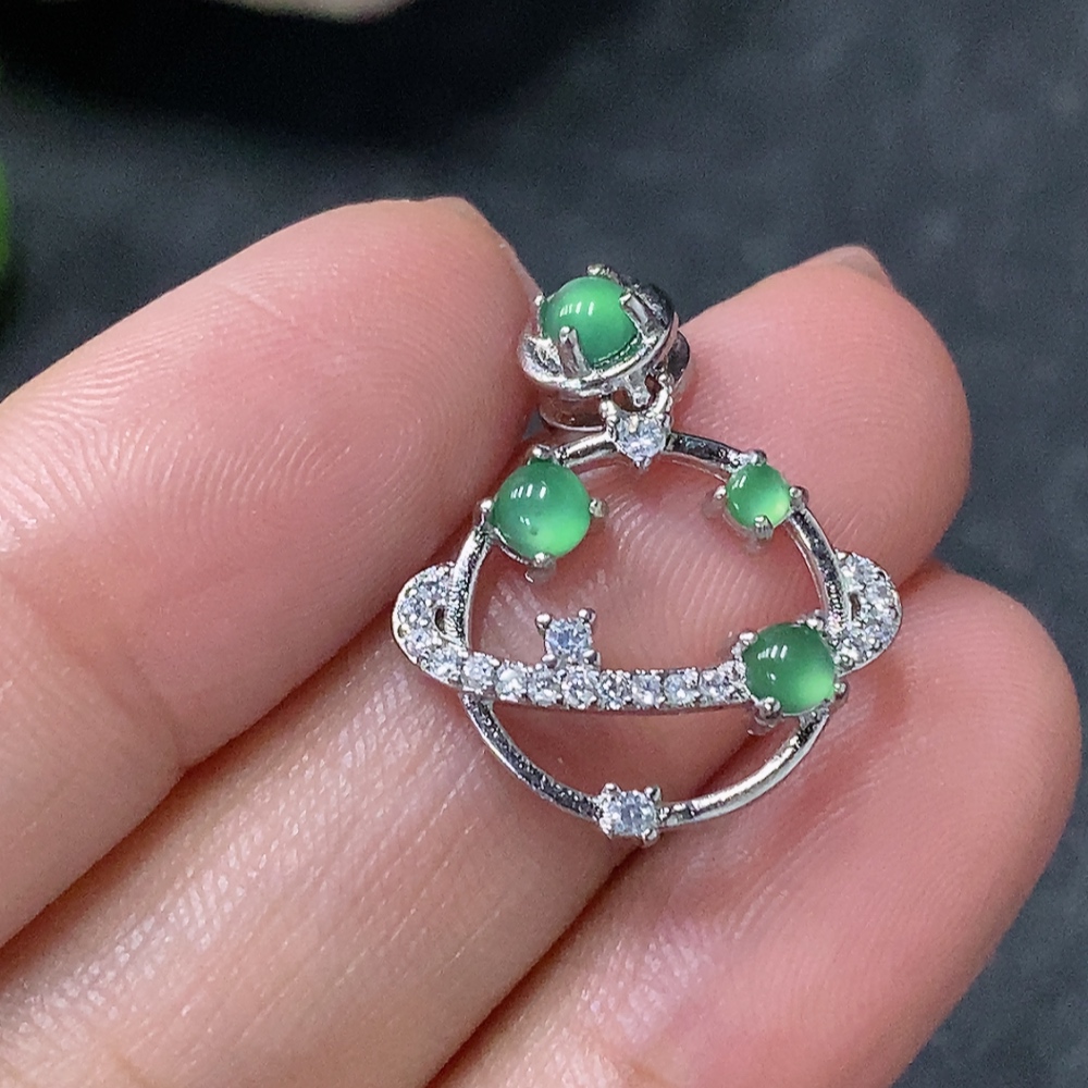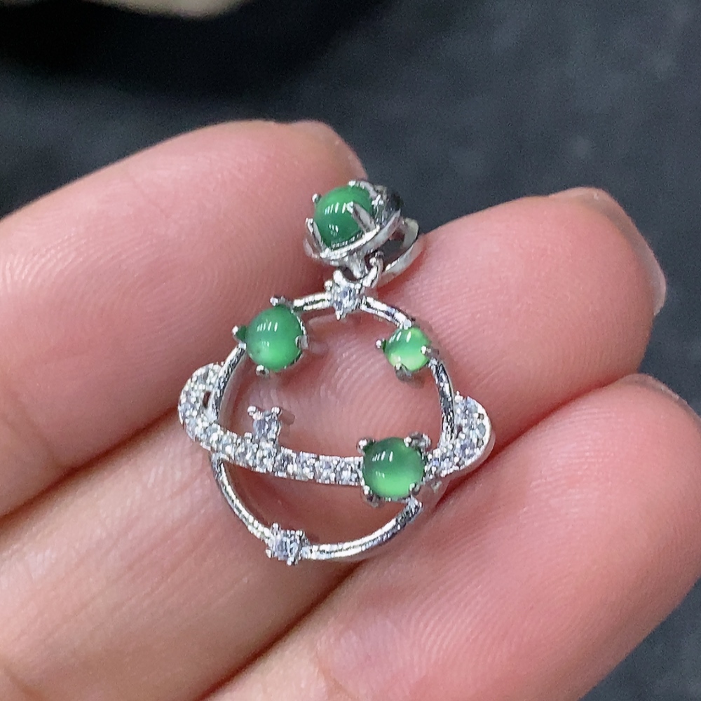 Jadeite Inlaid Pendant Non-Gold Non-Diamond Total Weight Approx. 1.41g