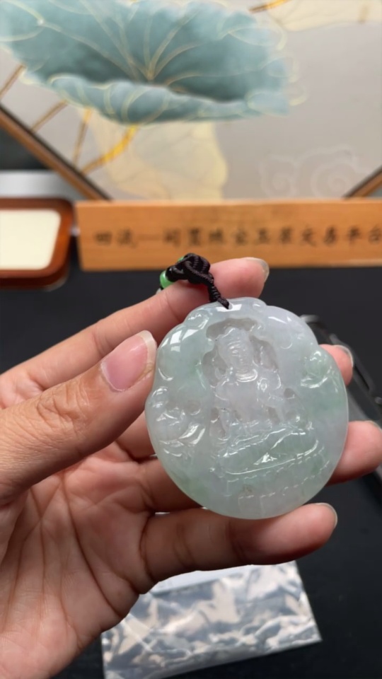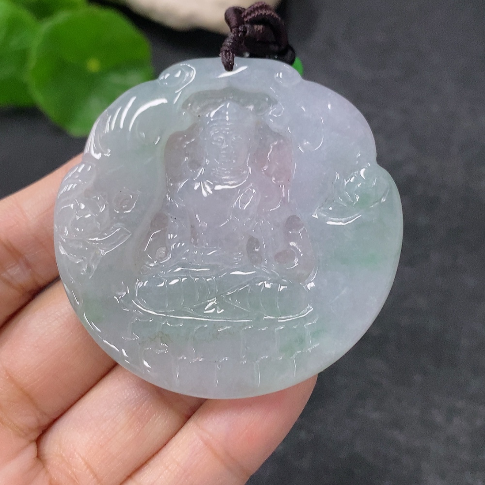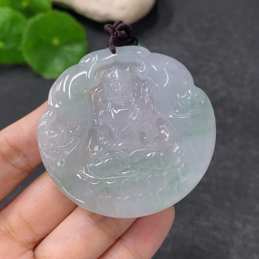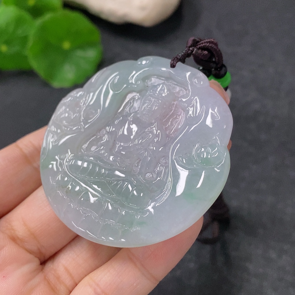 Jadeite Pendant Guanyin Total Weight Approx. 28.33g with Rope Non-A Grade Beads