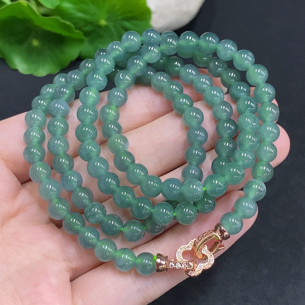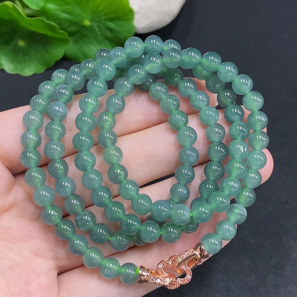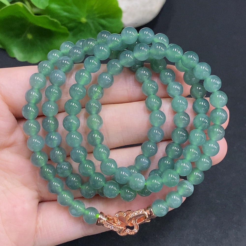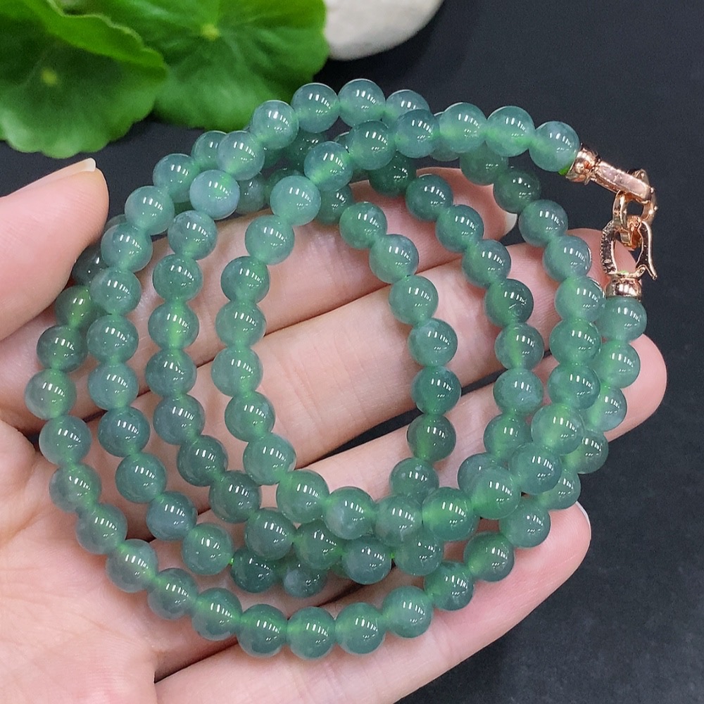 Jadeite Bead Necklace Non-Gold Setting Total Weight Approx.41.7g Size Approx.5.9mm