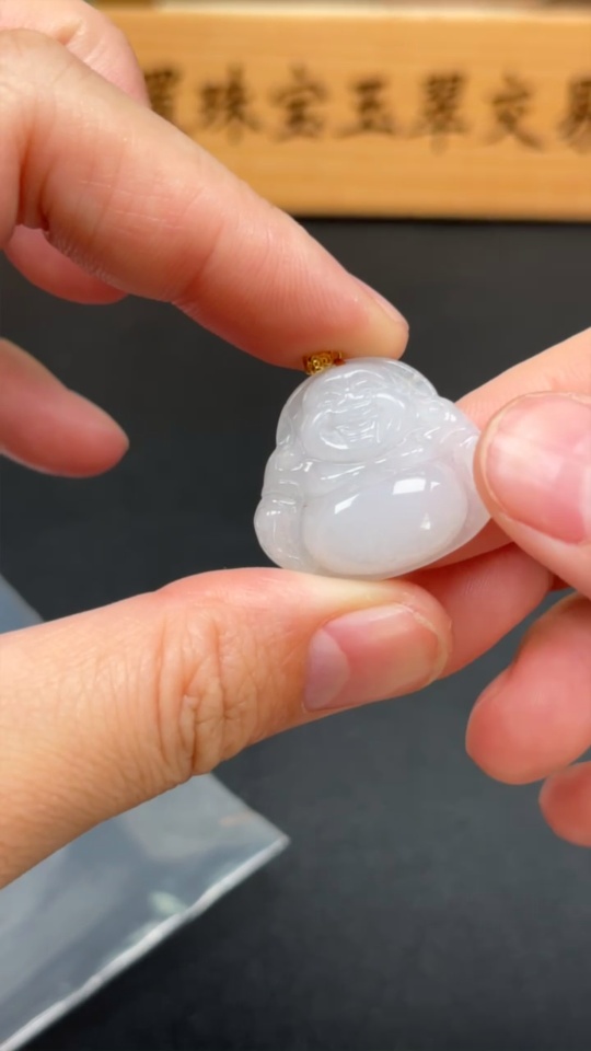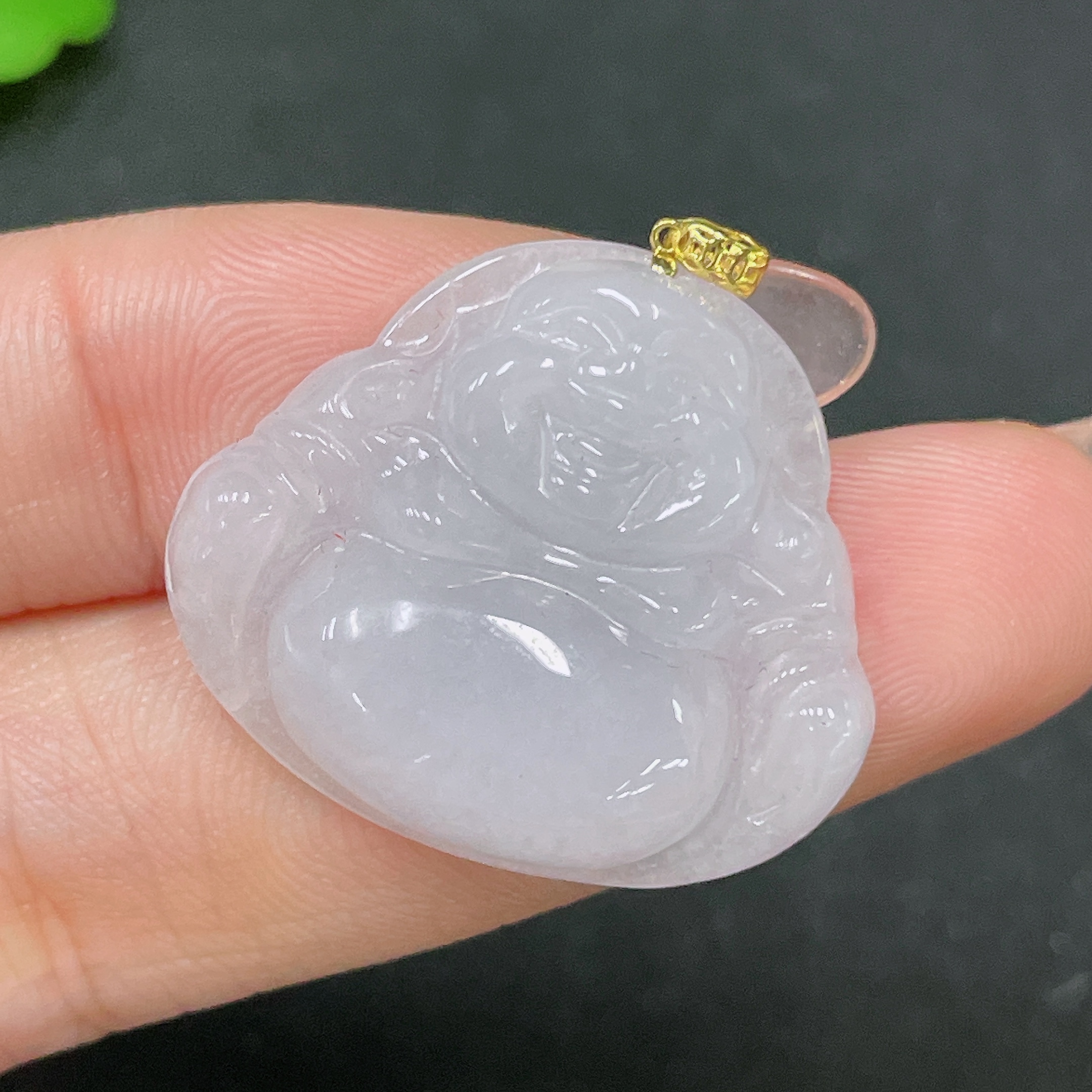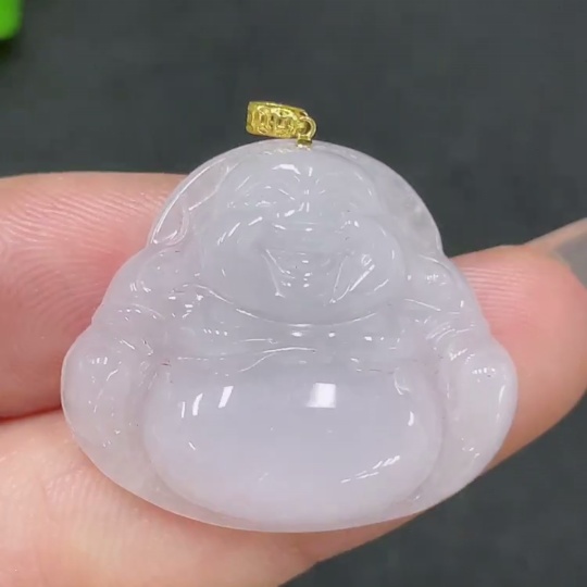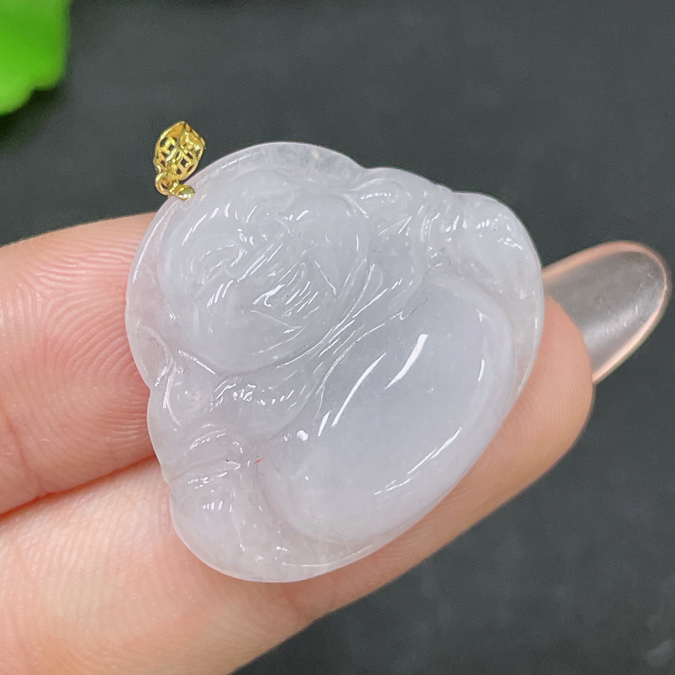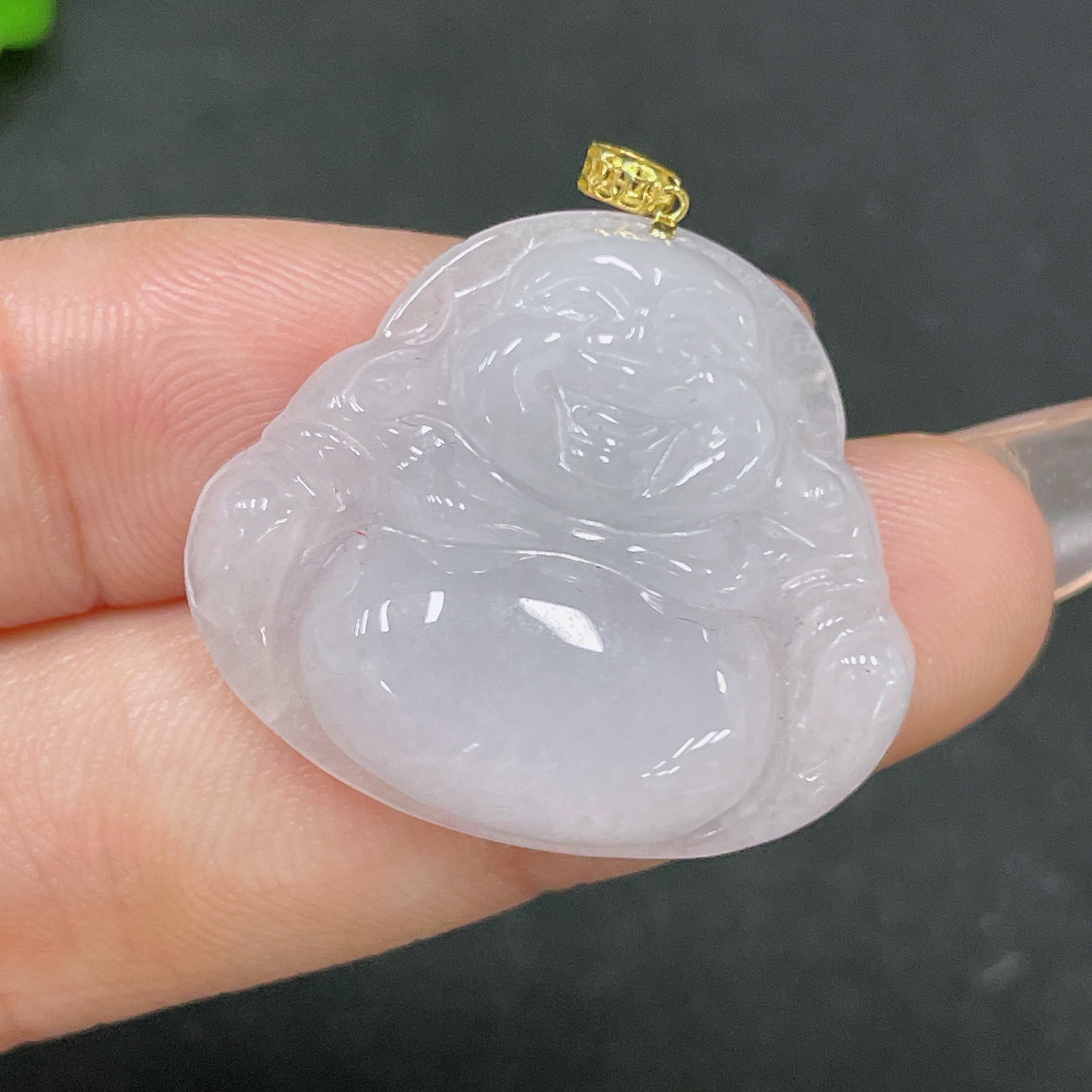 Jadeite Pendant Buddha with 18K Clasp, Total Weight Approx. 5.71g