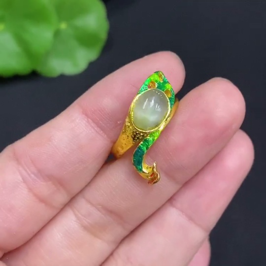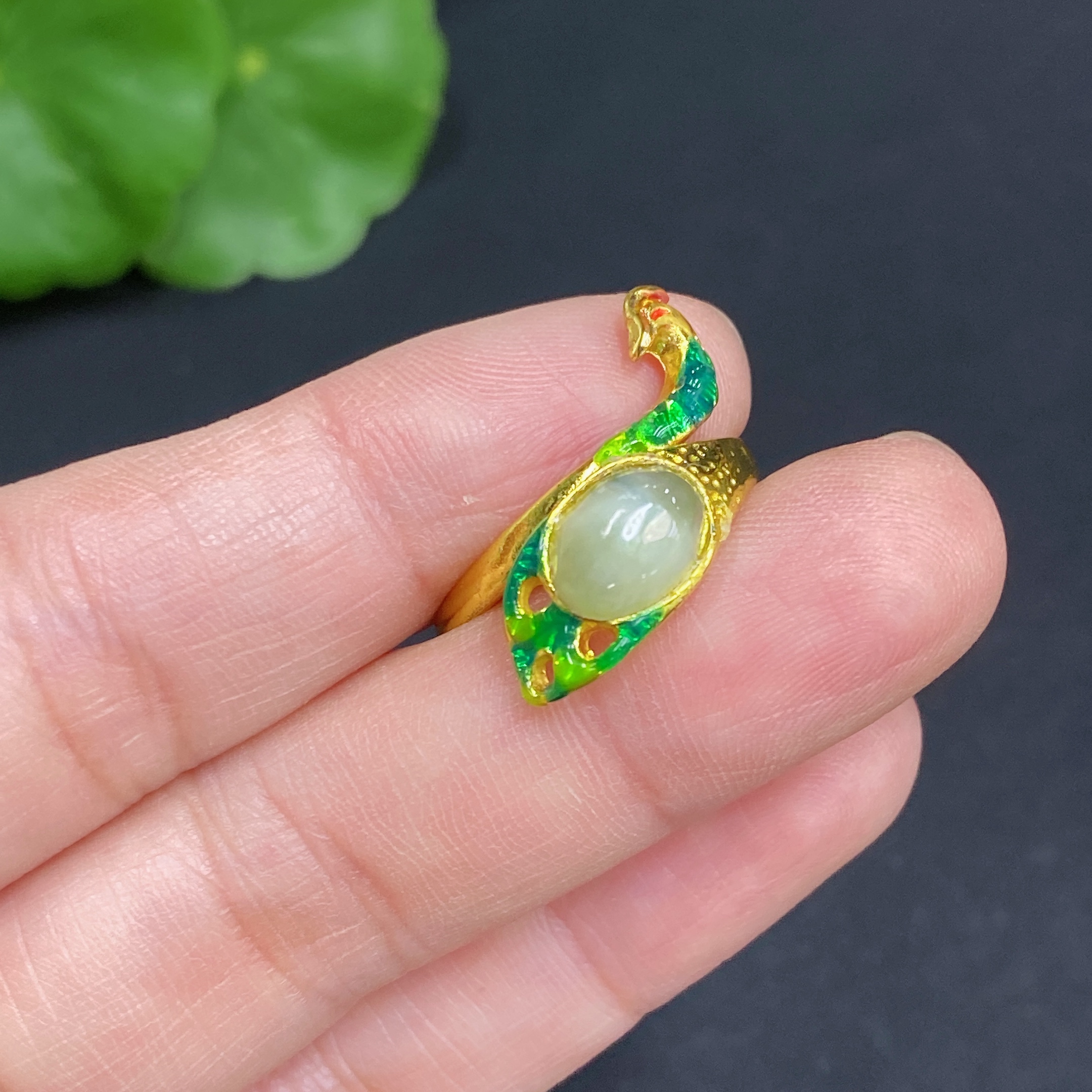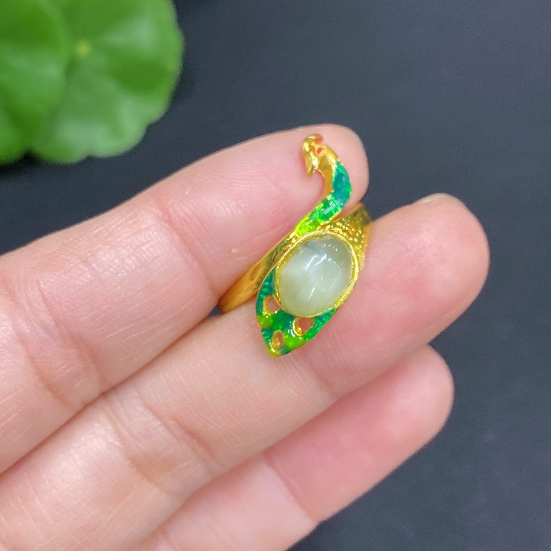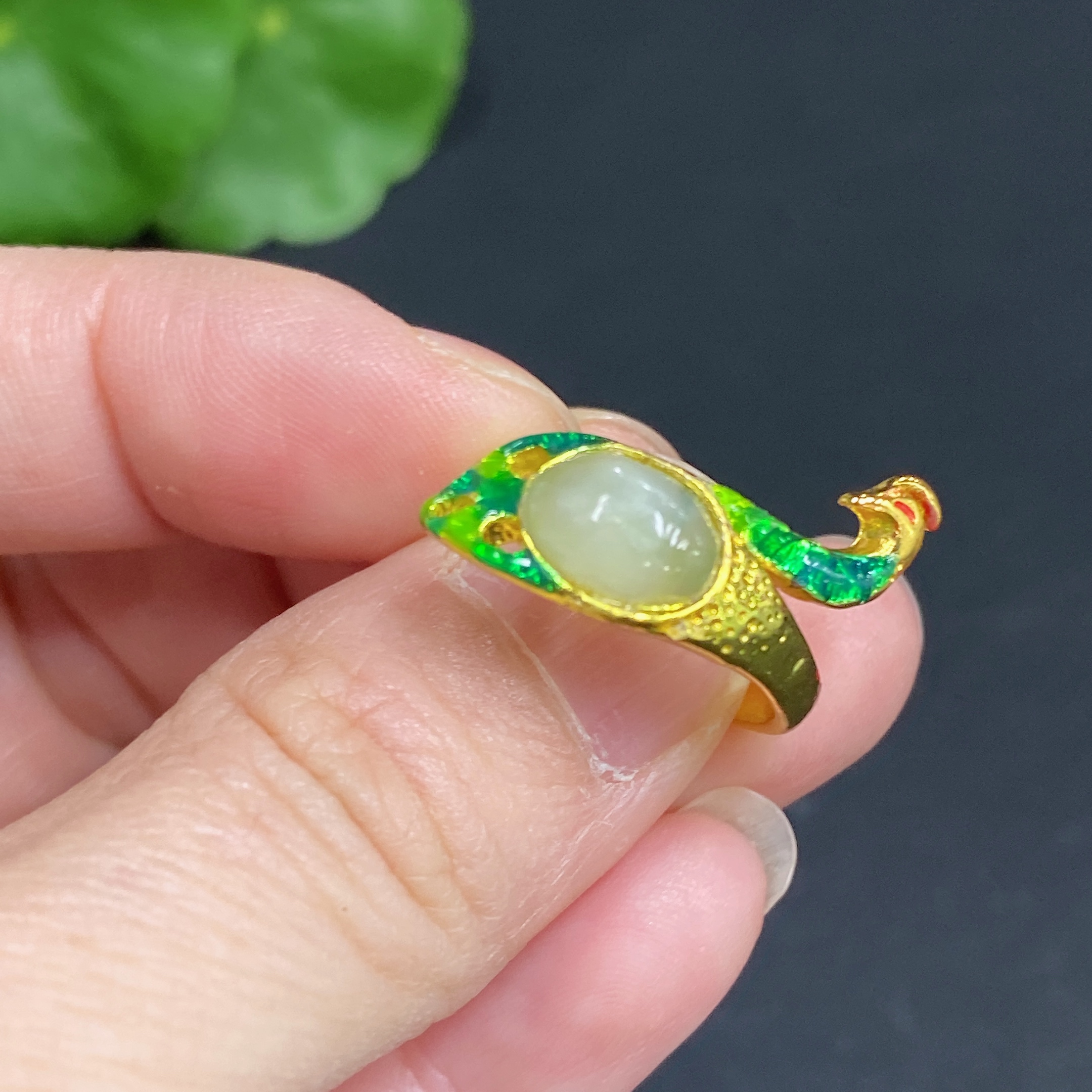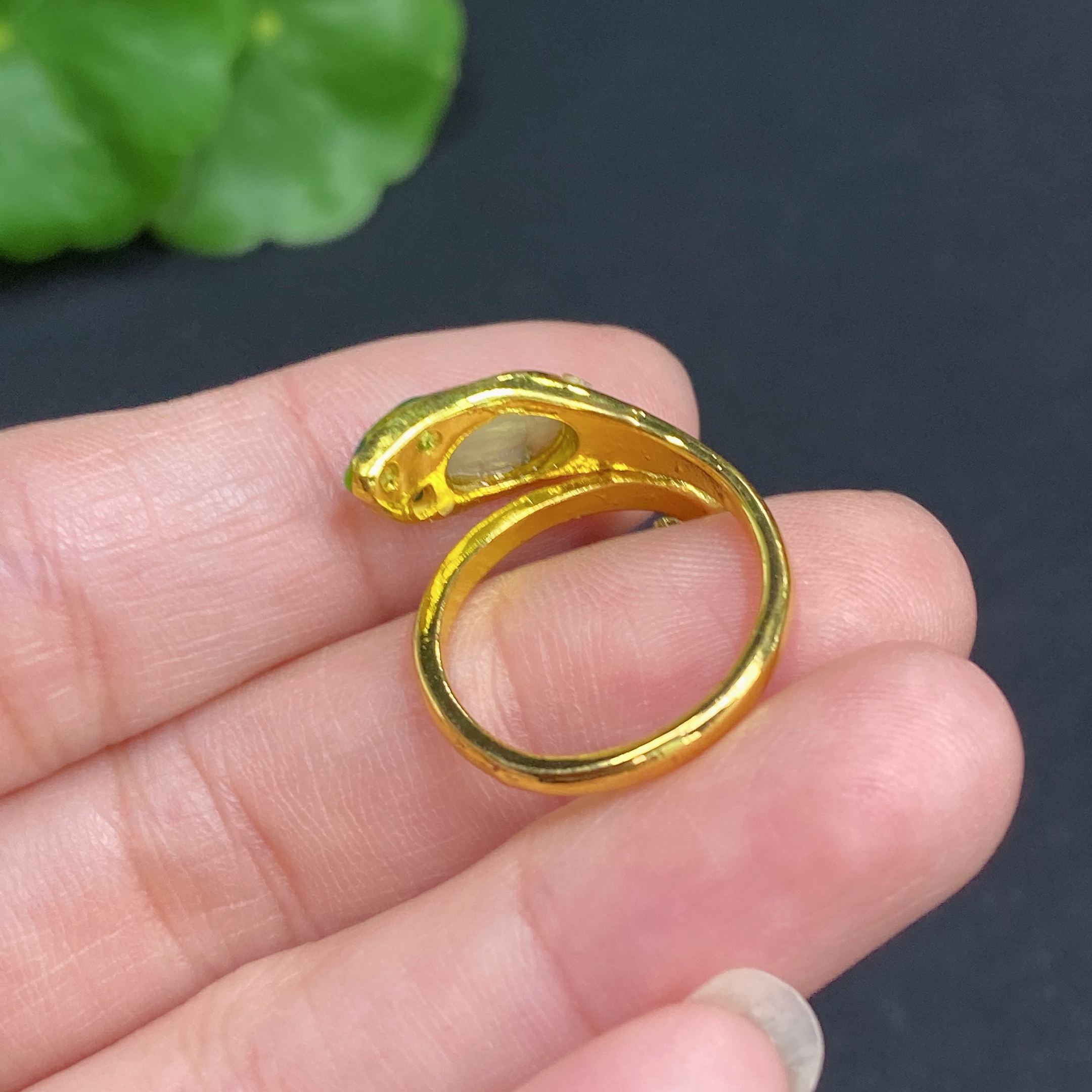 Hetian Jade Inlaid Adjustable Ring Non-Gold Inlaid Total Weight About 2.5g