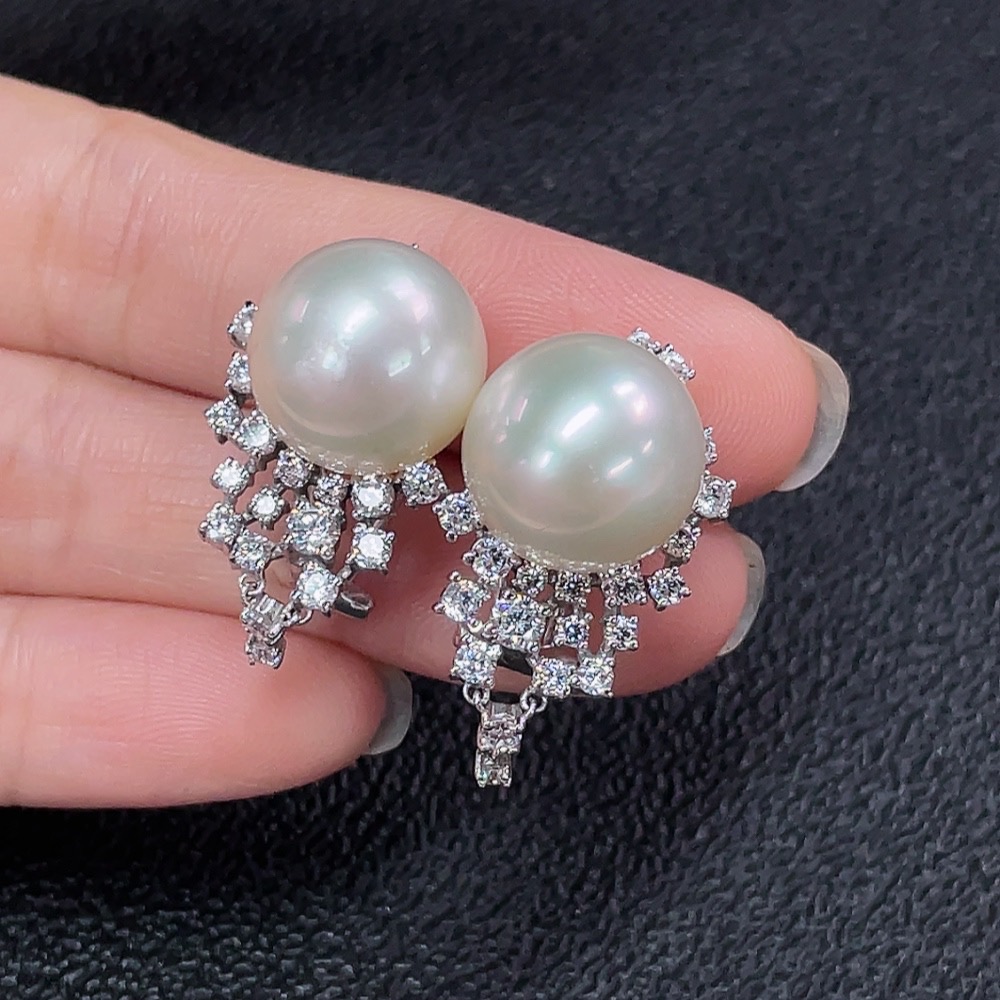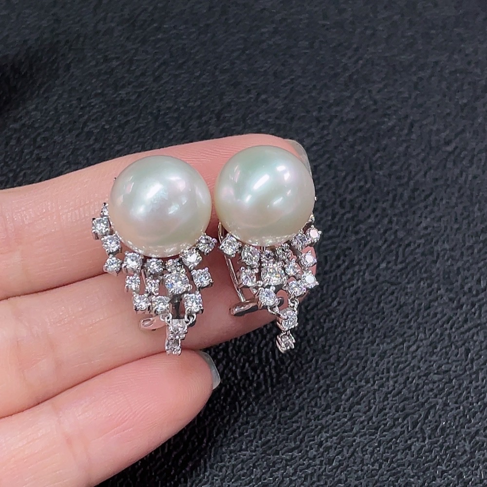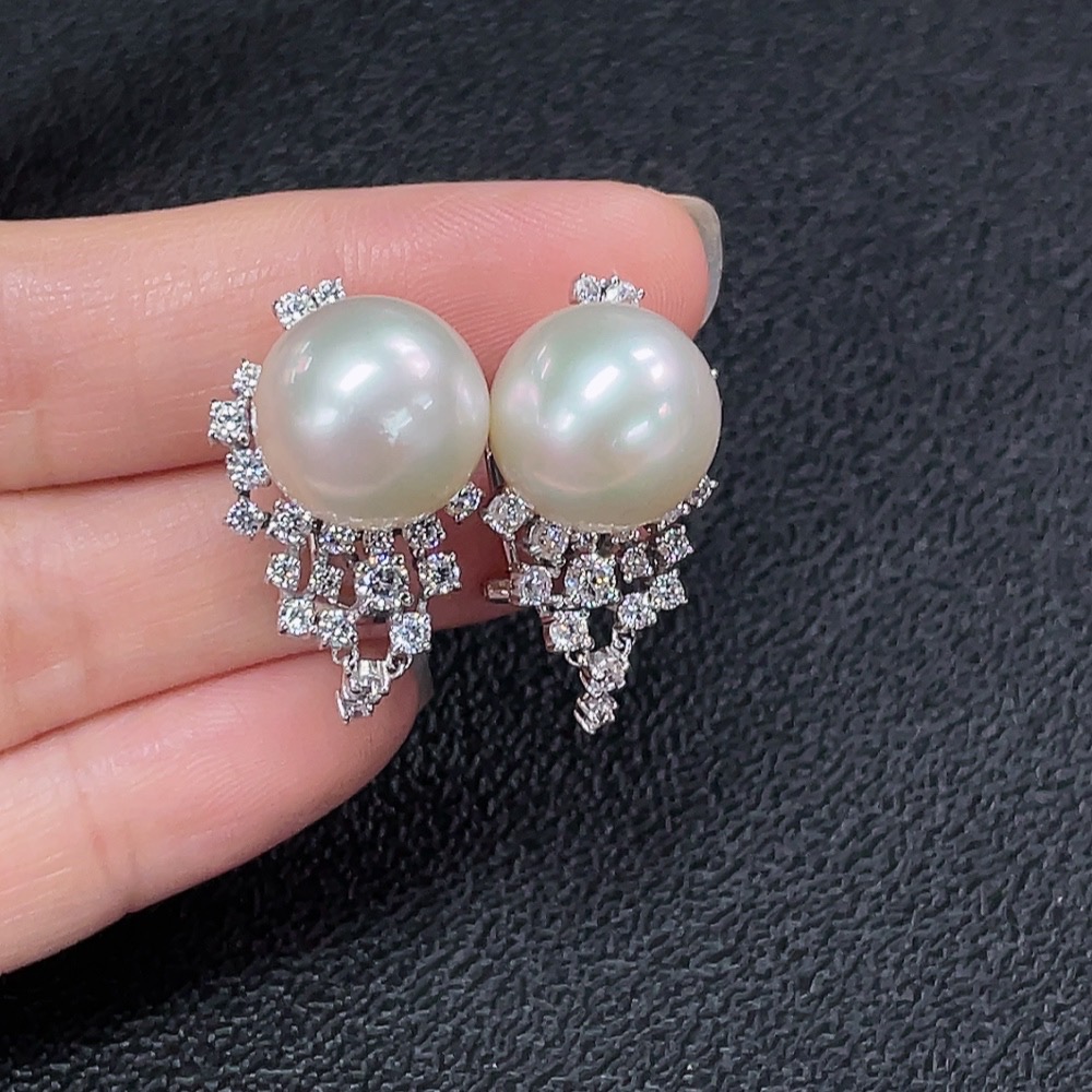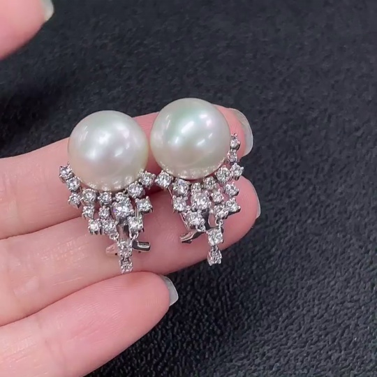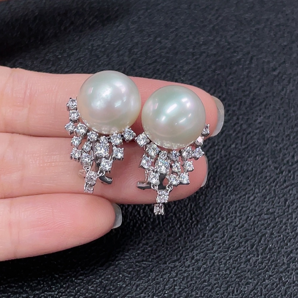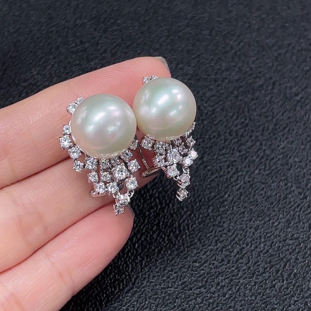 Seawater Pearl Earrings Non-Diamond Gold Content Au37% Total Weight Approx.10.78g Size Approx.12.7mm