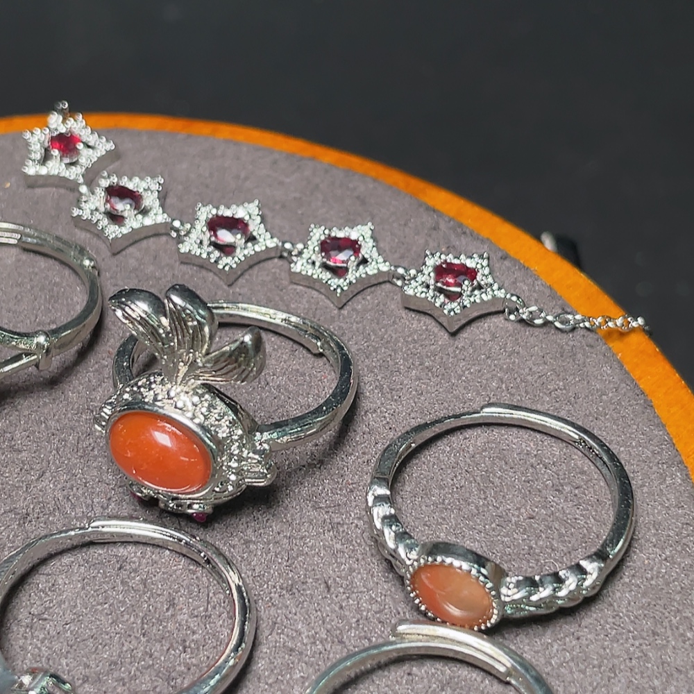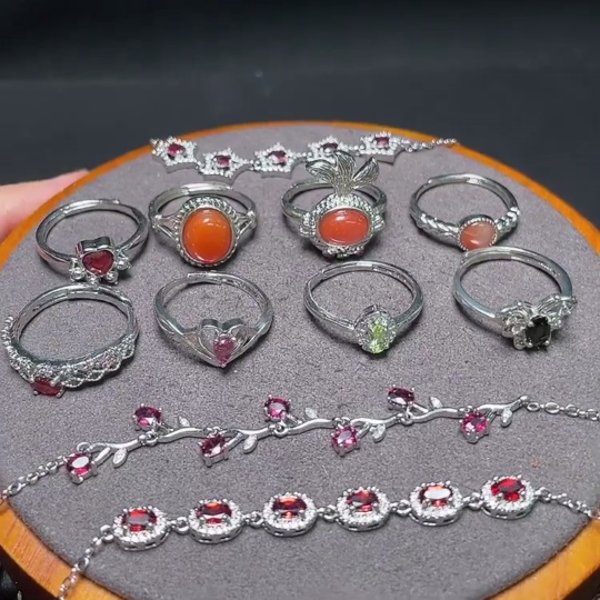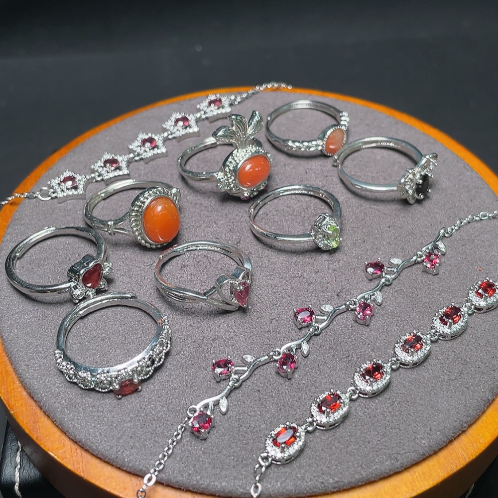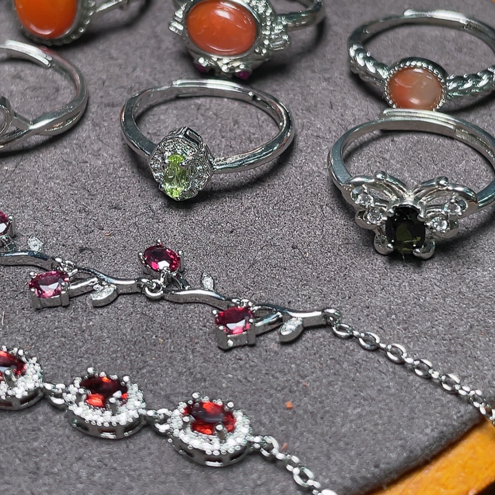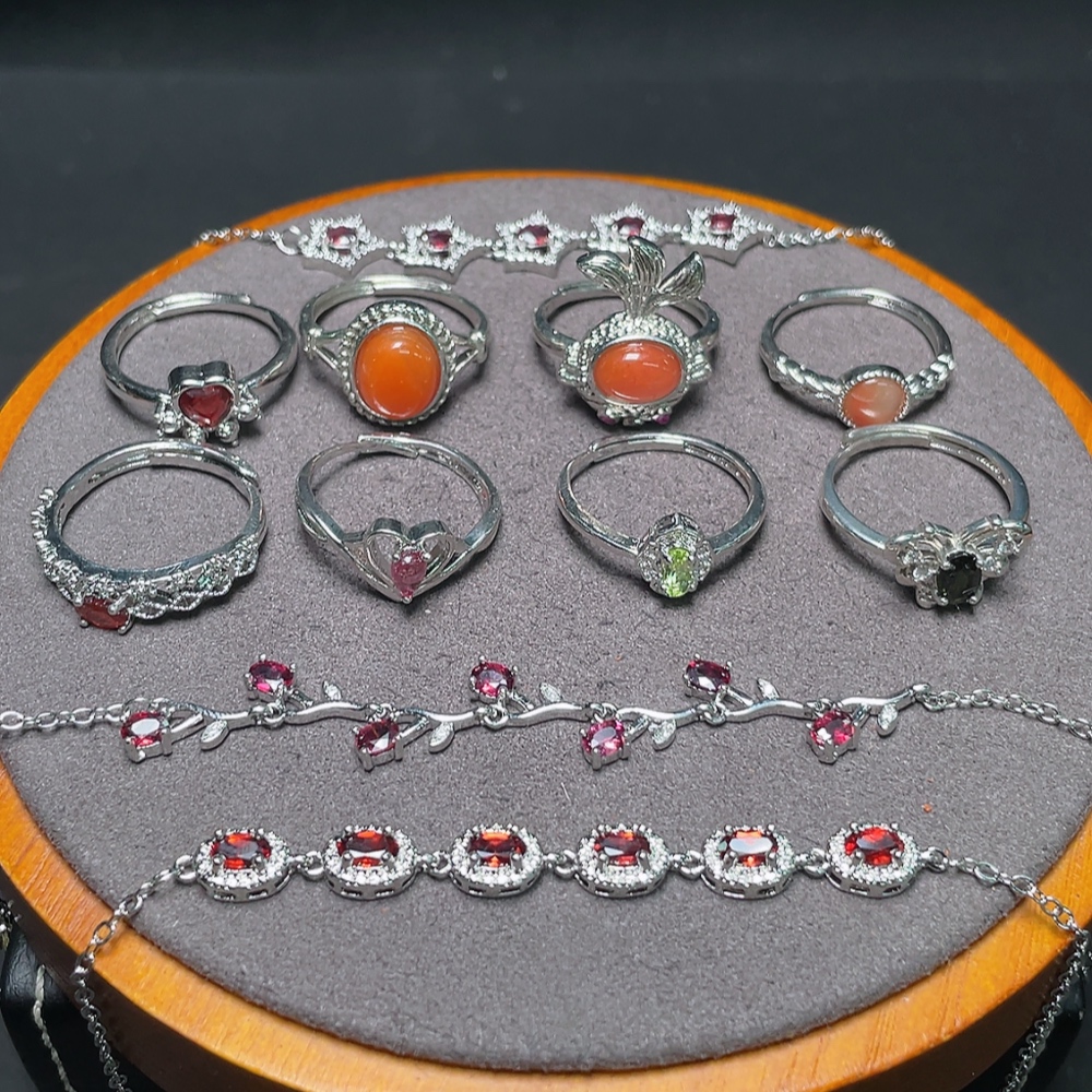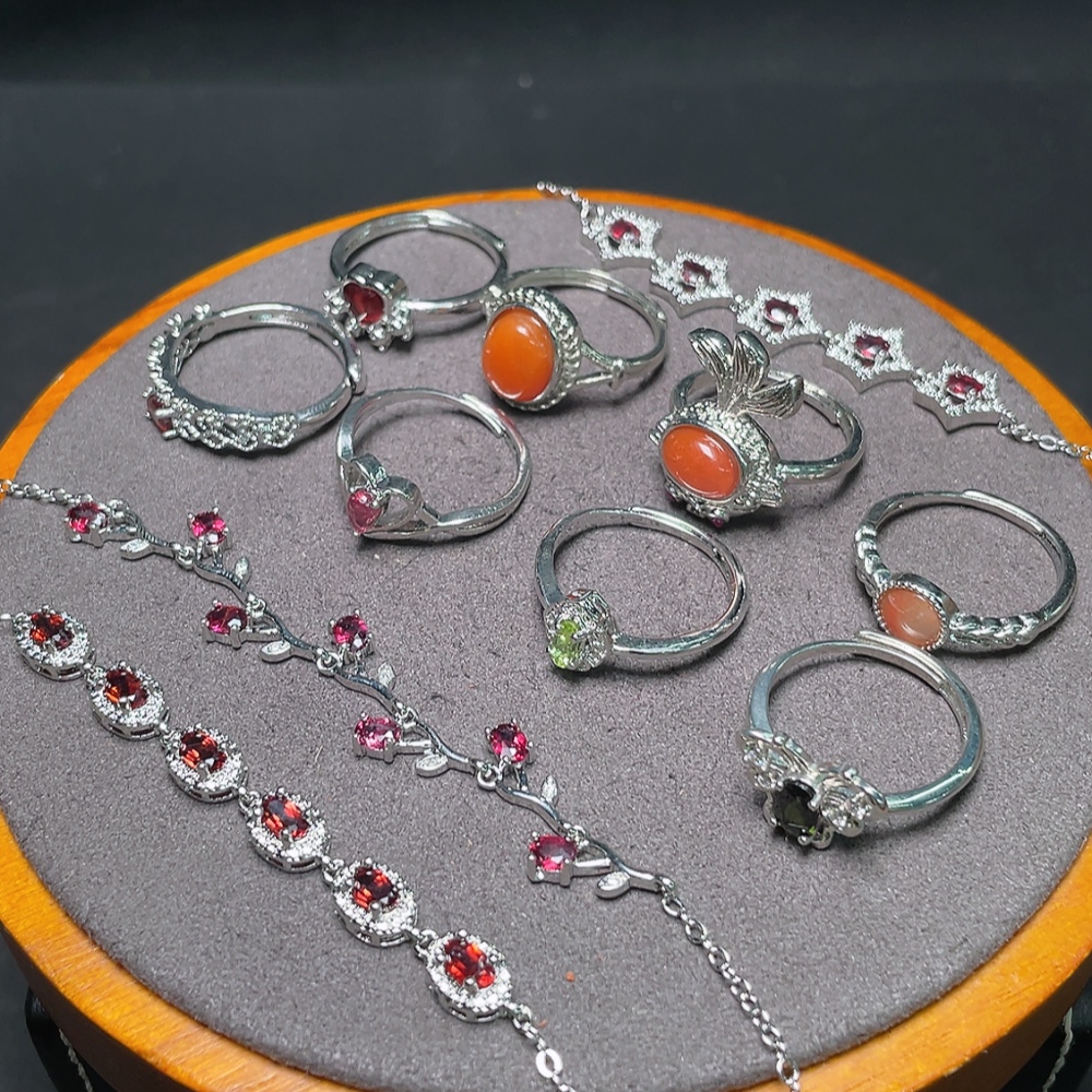 Garnet Jewelry + South Red Agate Ring + Peridot Ring + Tourmaline Ring