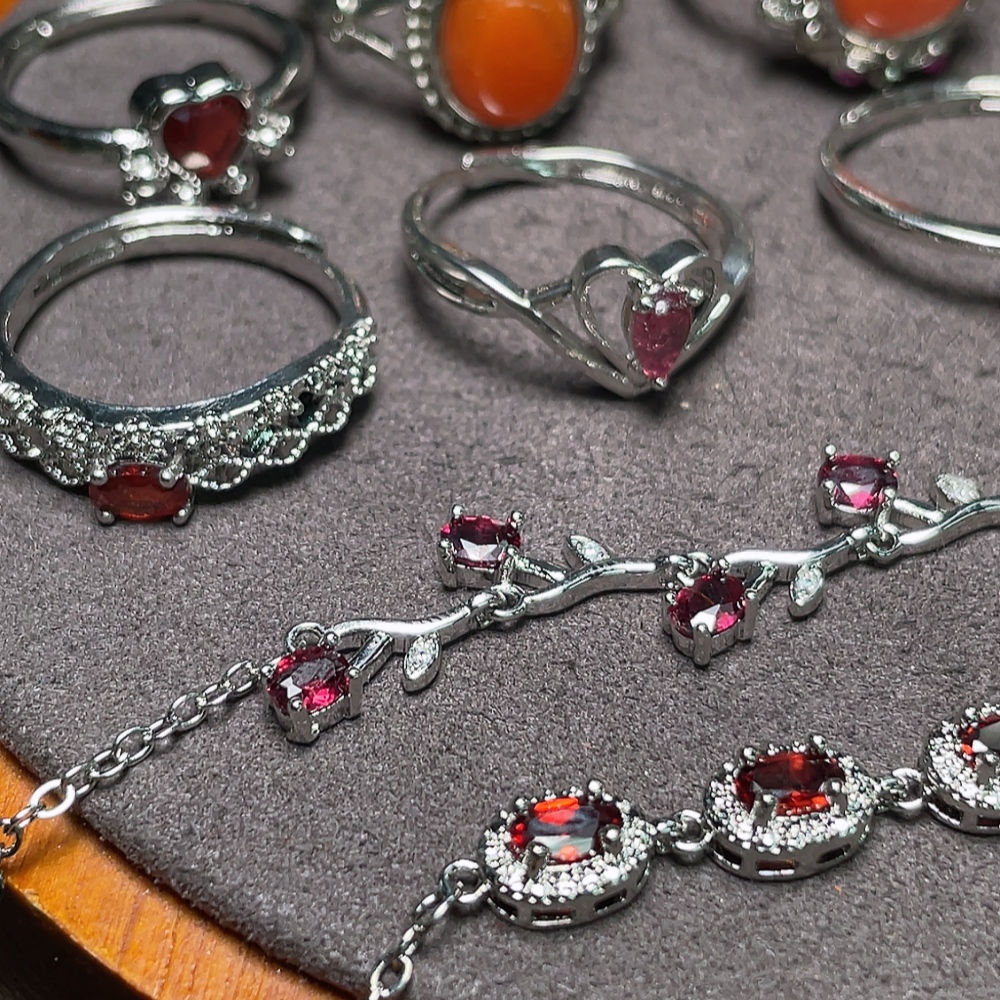 Trezaar - Garnet Jewelry + South Red Agate Ring + Peridot Ring + Tourmaline Ring