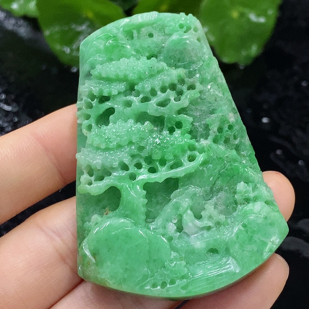 Jadeite Rough Landscape Pendant, Total Weight Approx. 51.02g