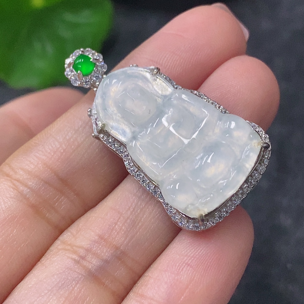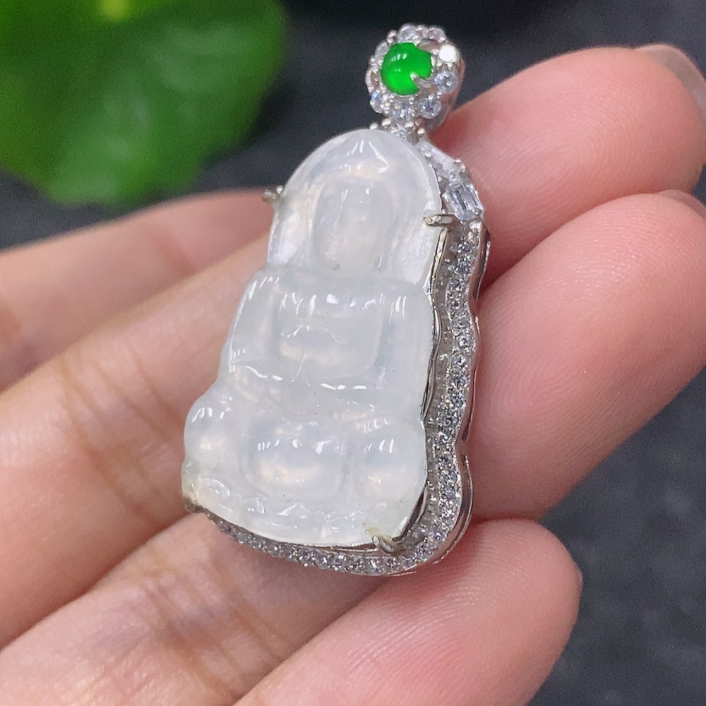 Jadeite Inlaid Guanyin Pendant Non-Gold Total Weight Approx. 4.74g Beads Non-Grade A