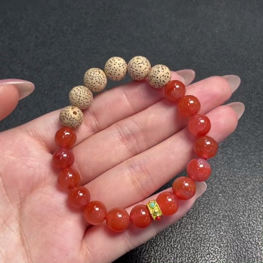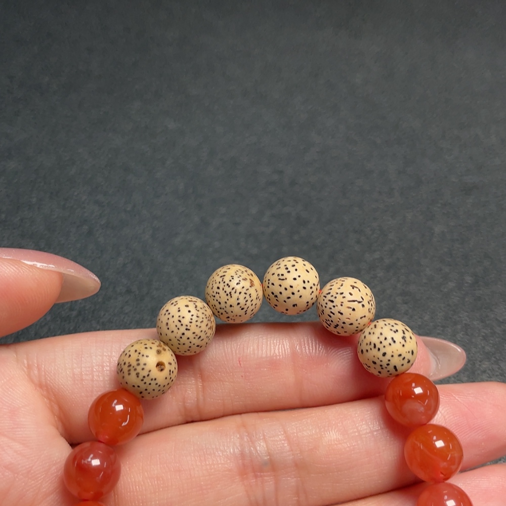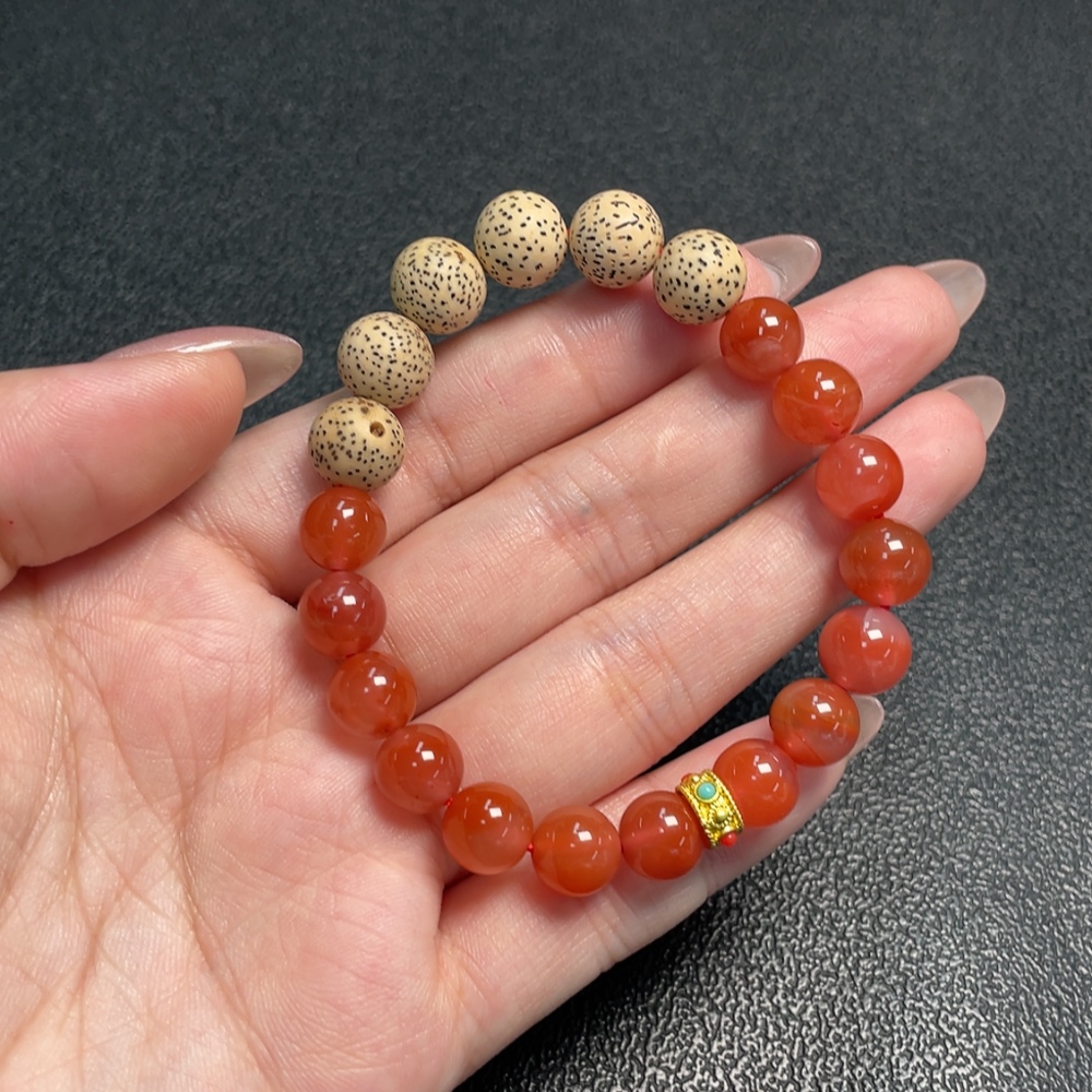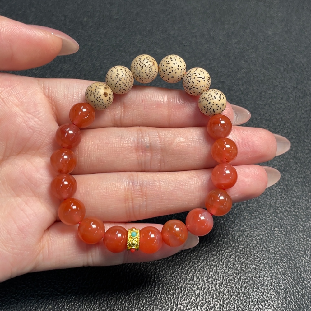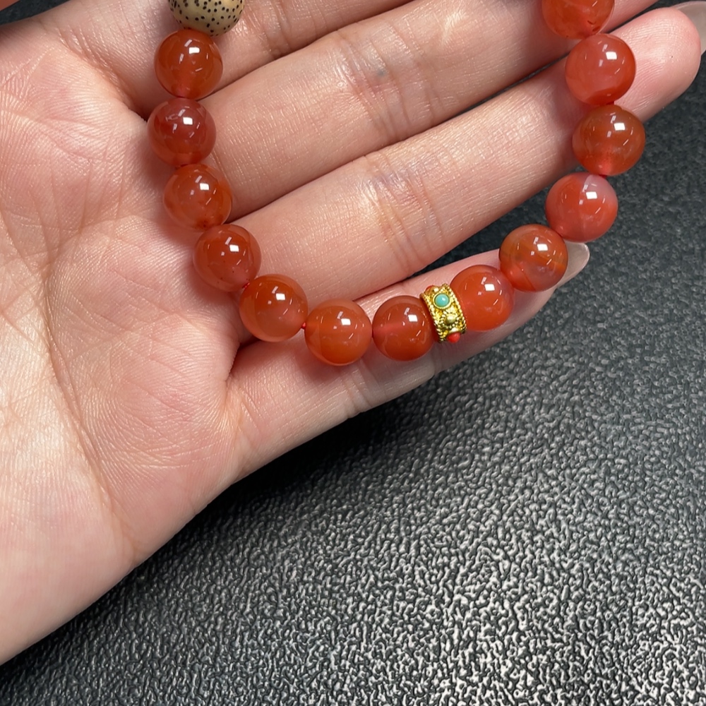 South Red Agate Bracelet with Visible Organic Matter, Total Weight Approximately 16.85g, Size About 8.9mm, Non-Gold