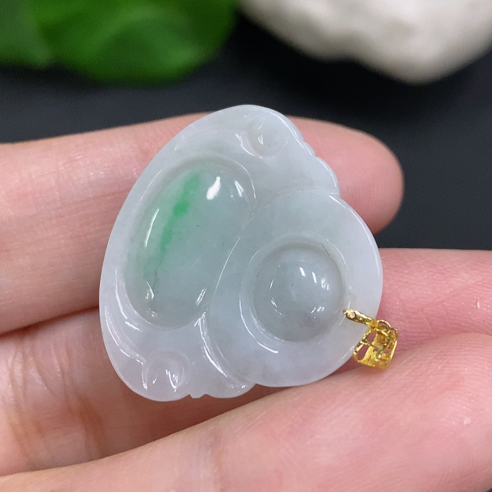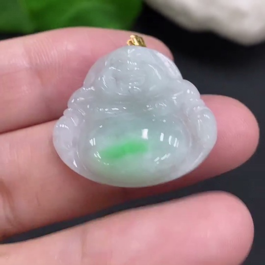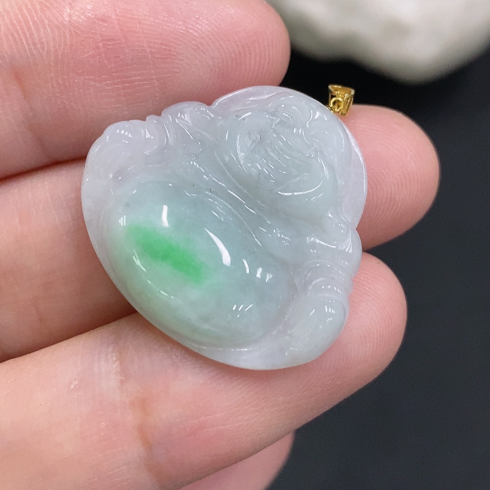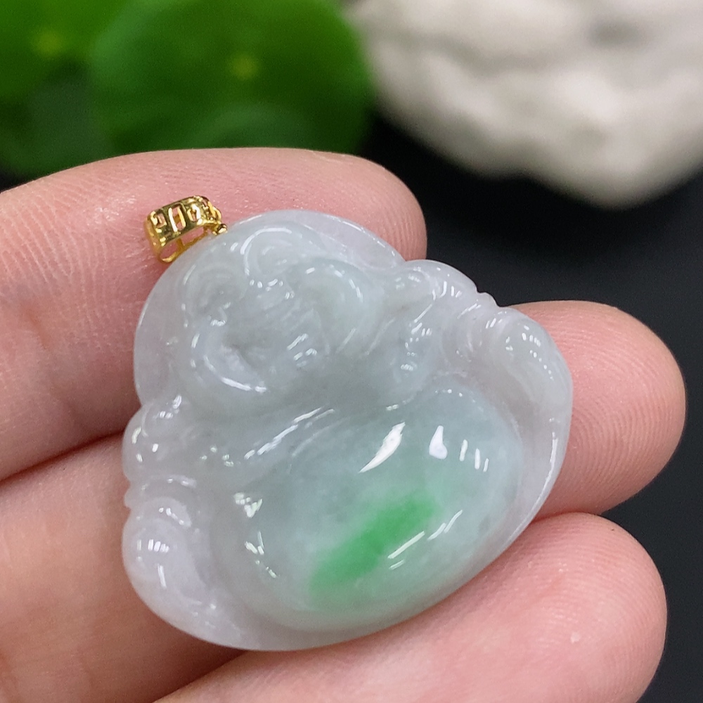 Jadeite Buddha Pendant with 18K Gold Clasp, Total Weight Approximately 4.6g