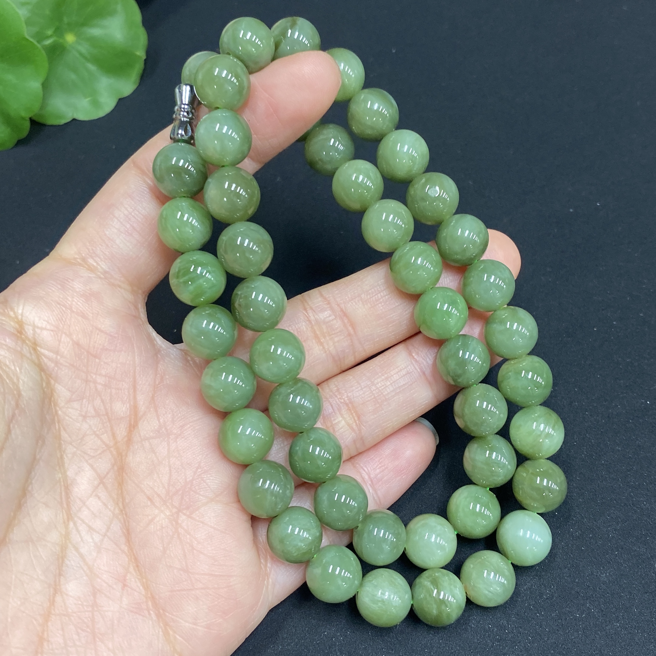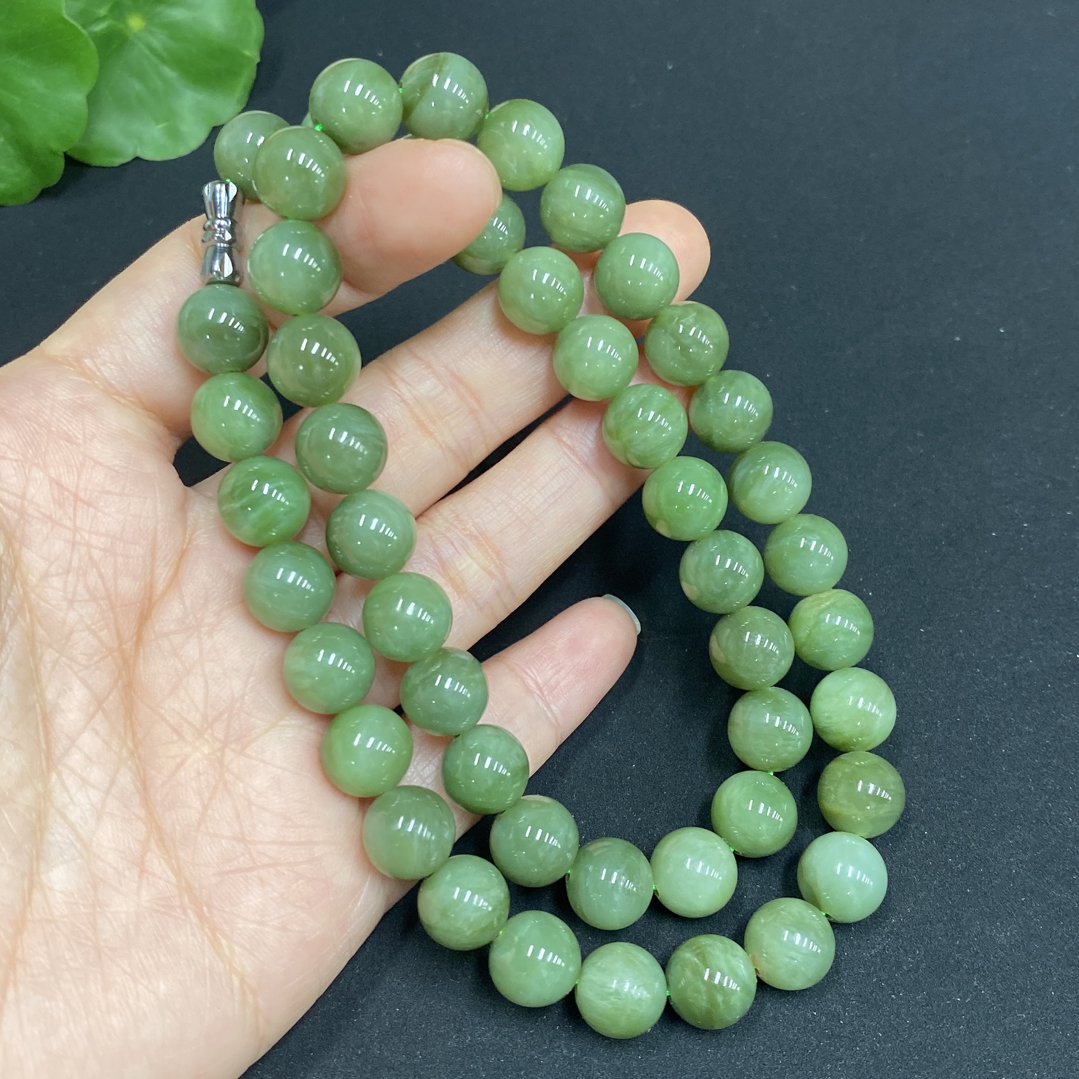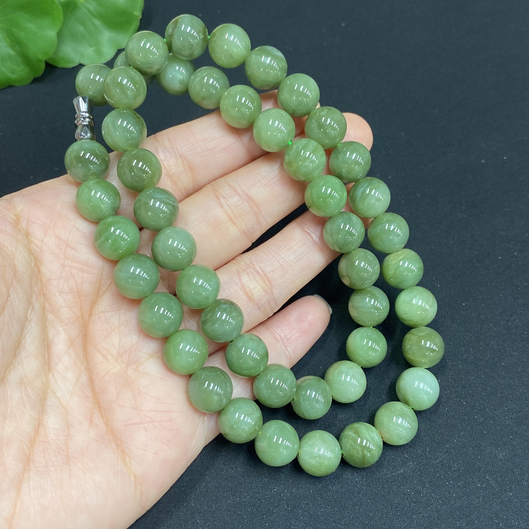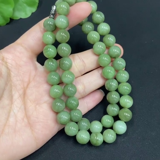 Hetian Jade Jasper Bead Necklace, Approx. 9.3mm, Total Weight Approx. 63.8g