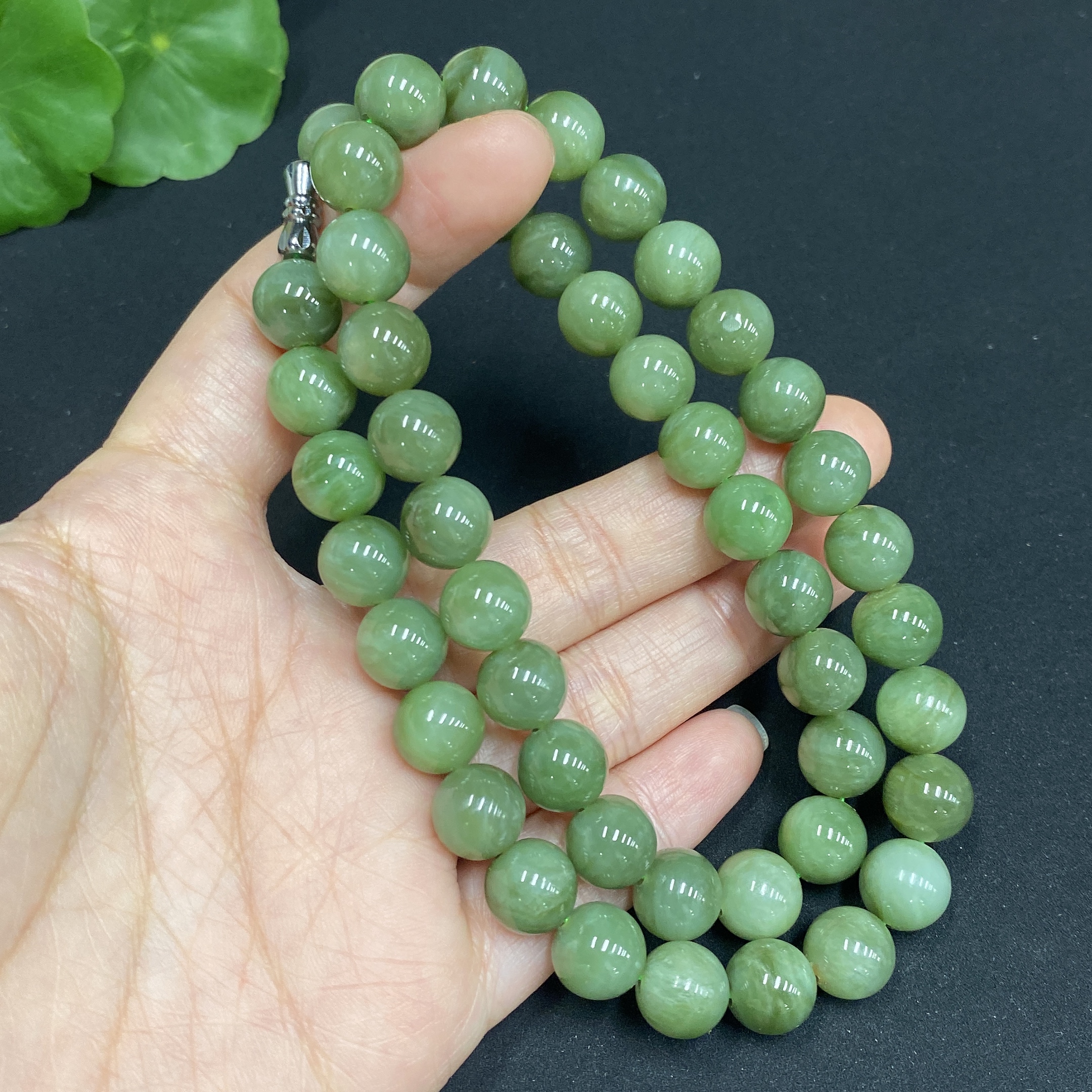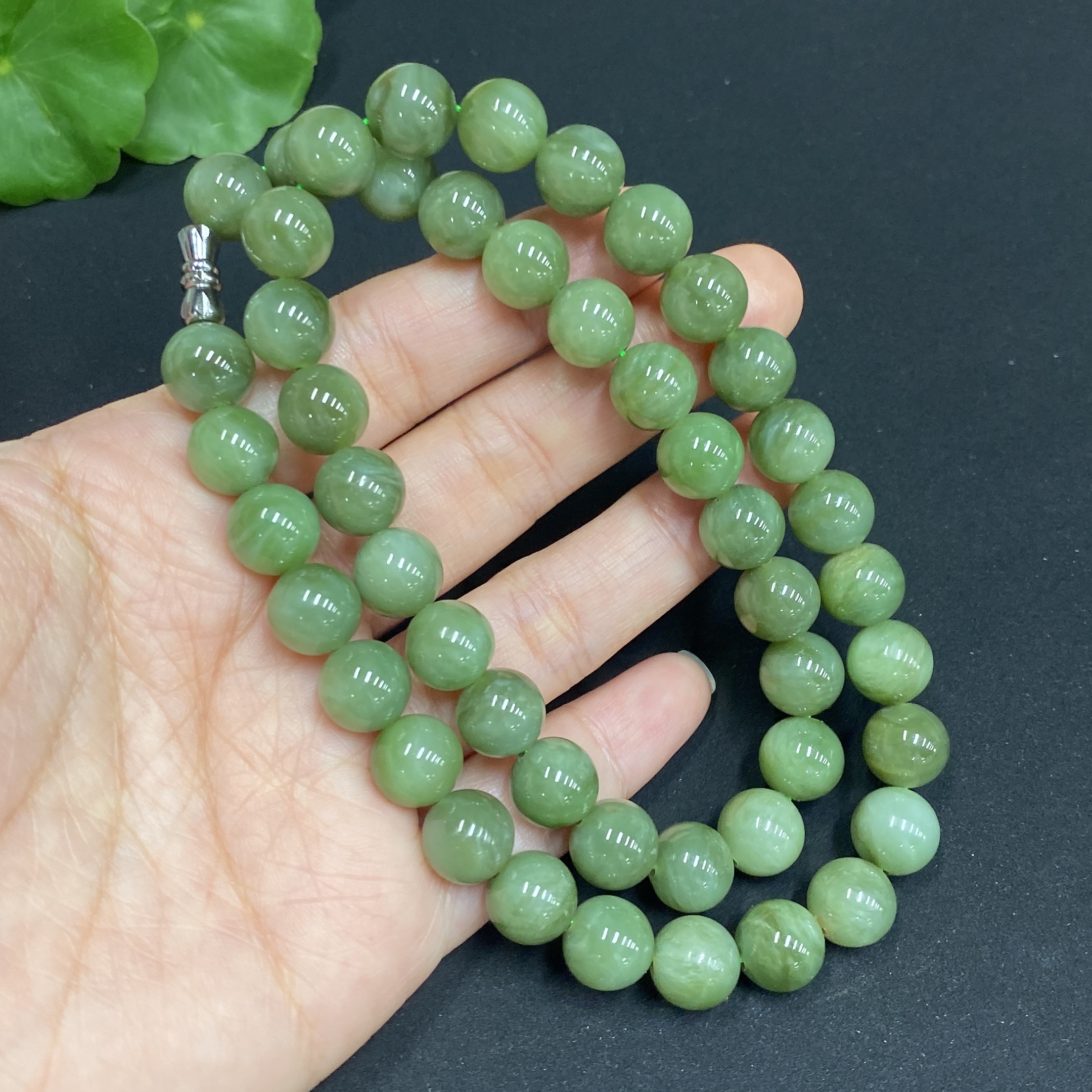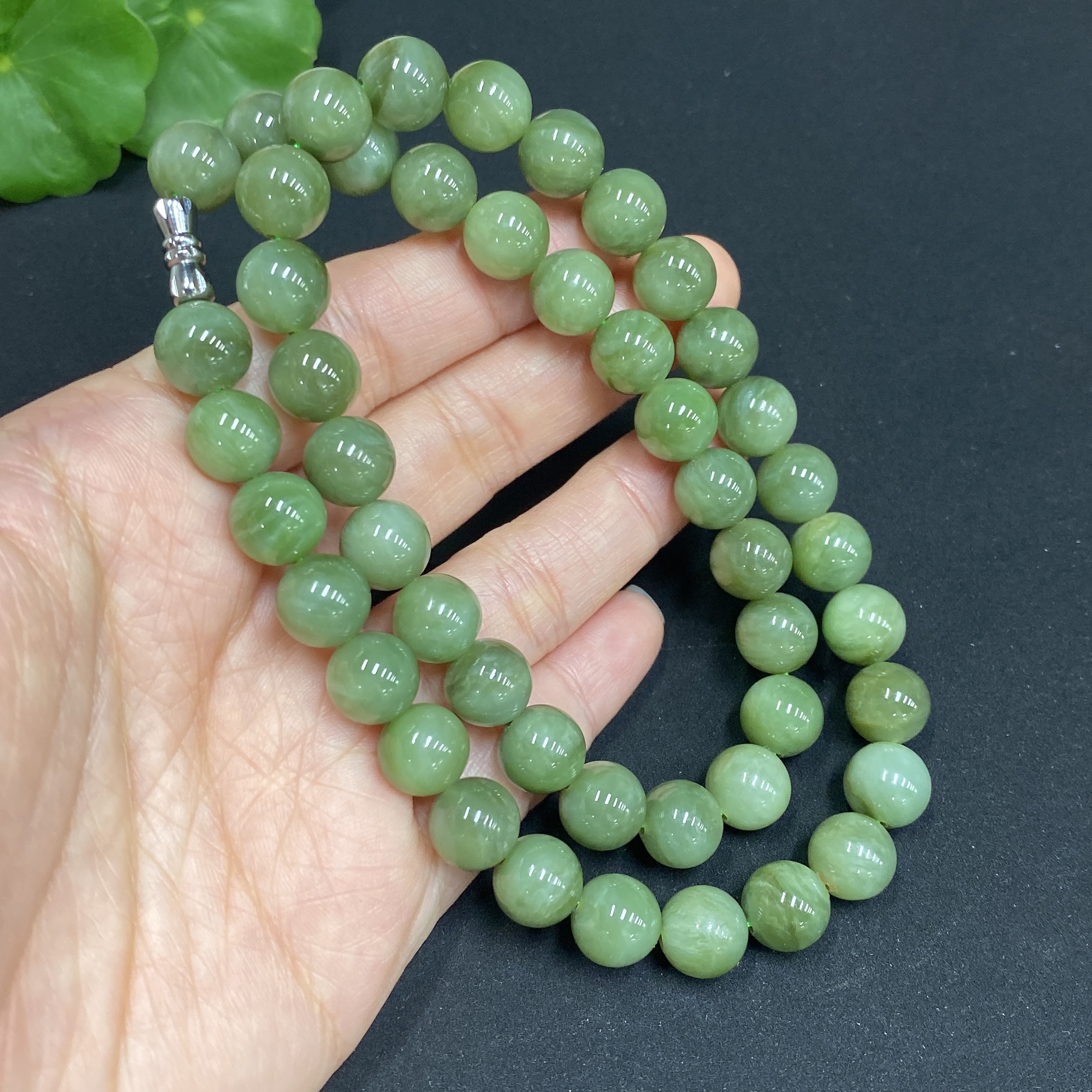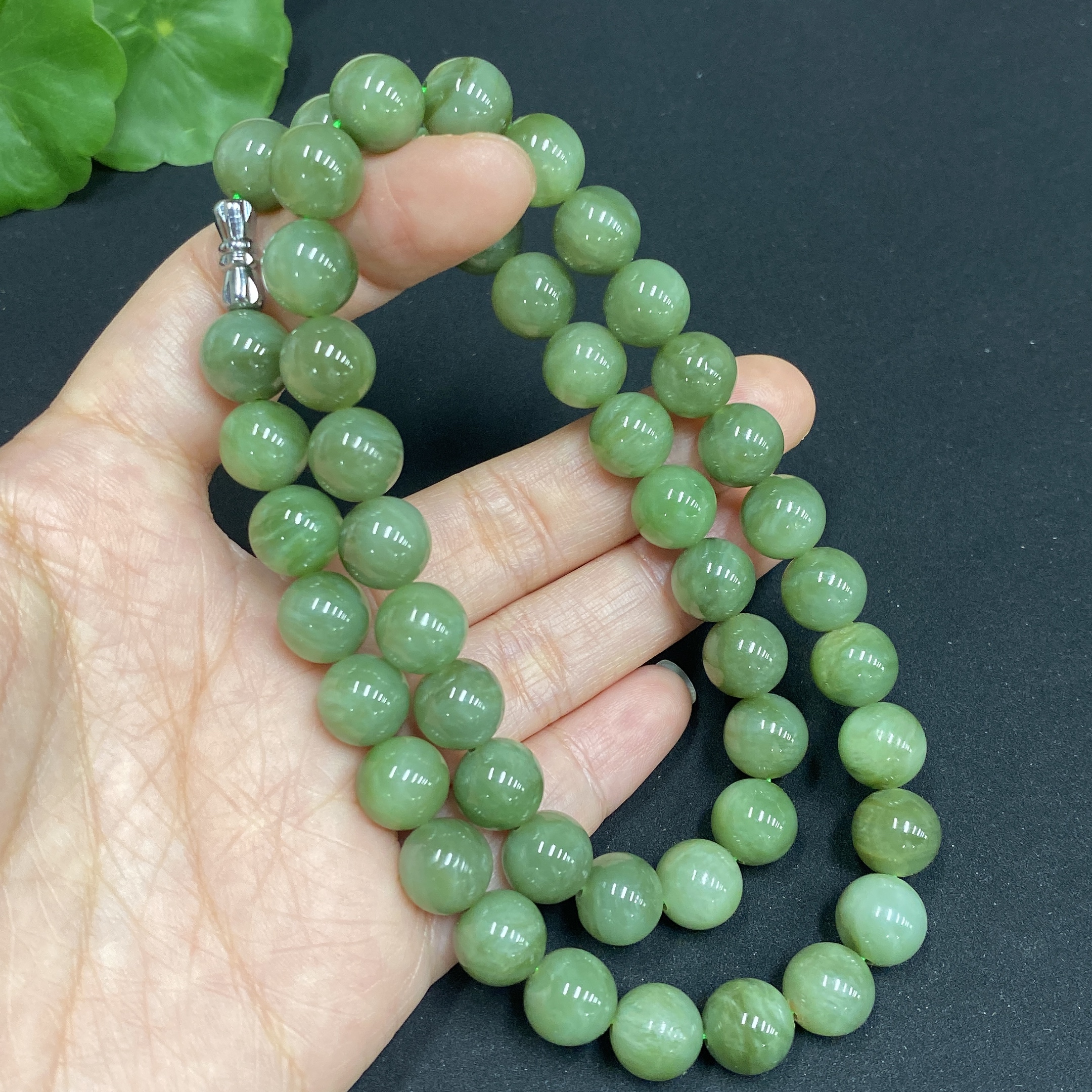 Hetian Jade Jasper Bead Necklace, Approx. 9.3mm, Total Weight Approx. 63.8g